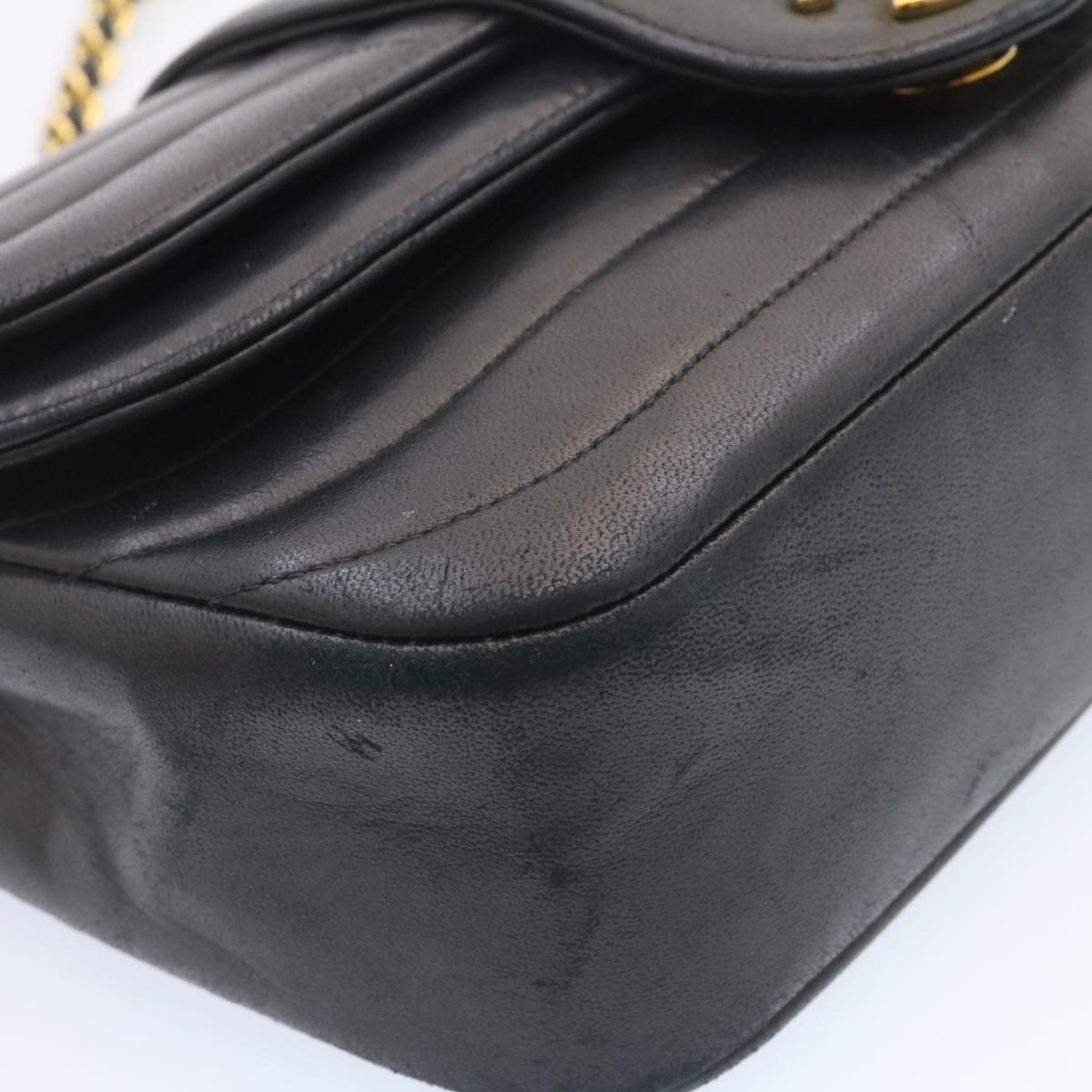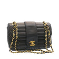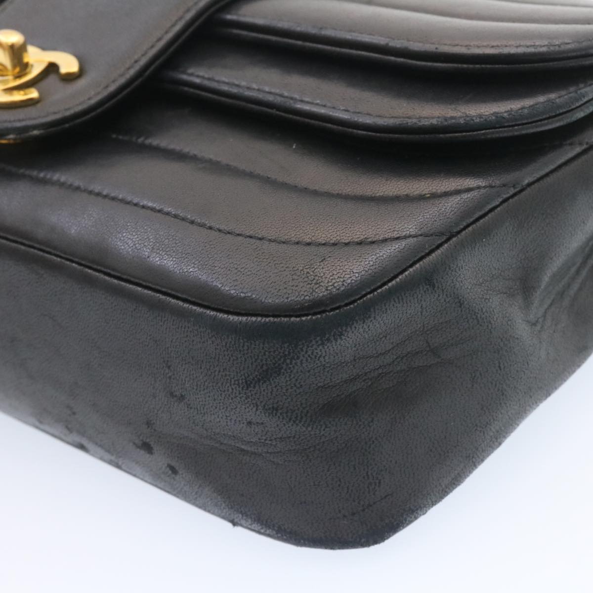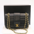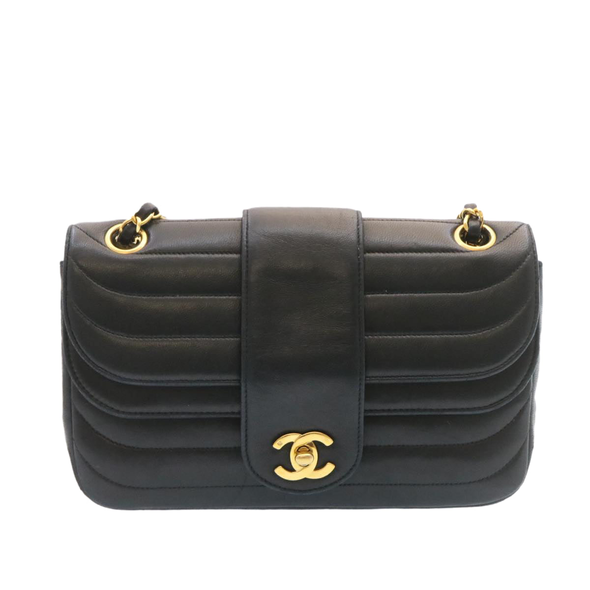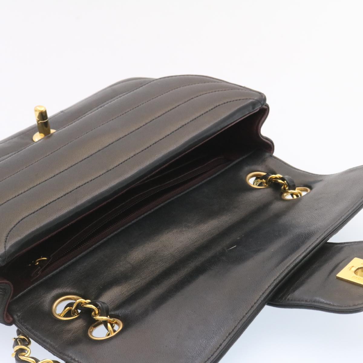 CHANEL Lamb Skin Double New Chain Shoulder Bag Black CC Auth 26207A