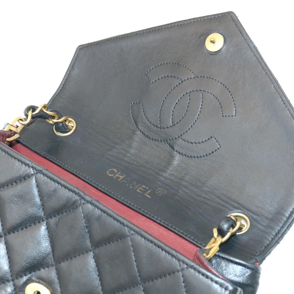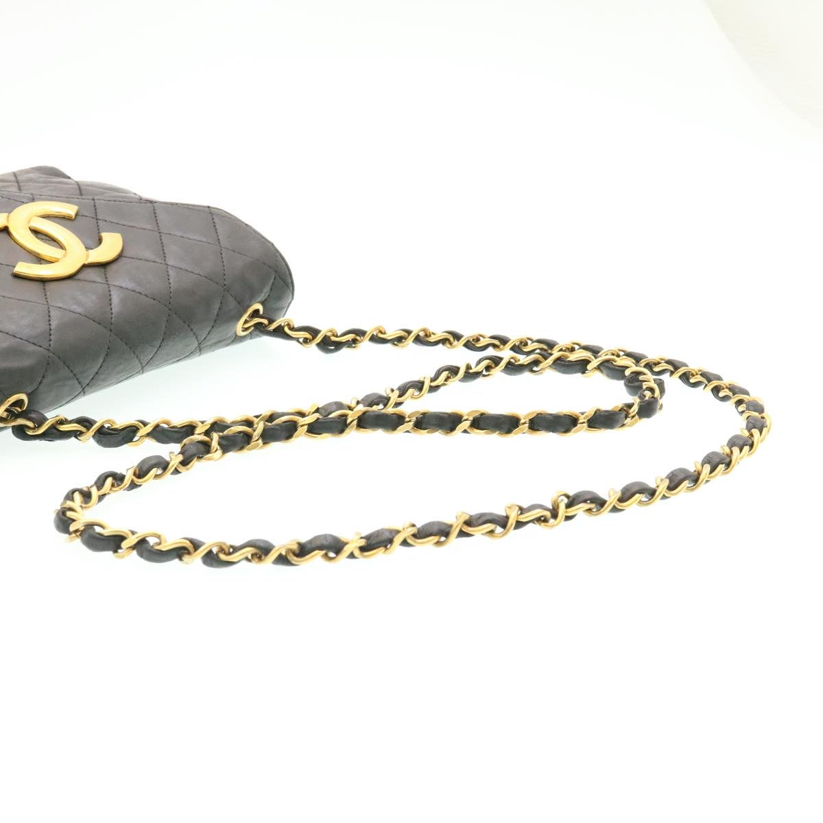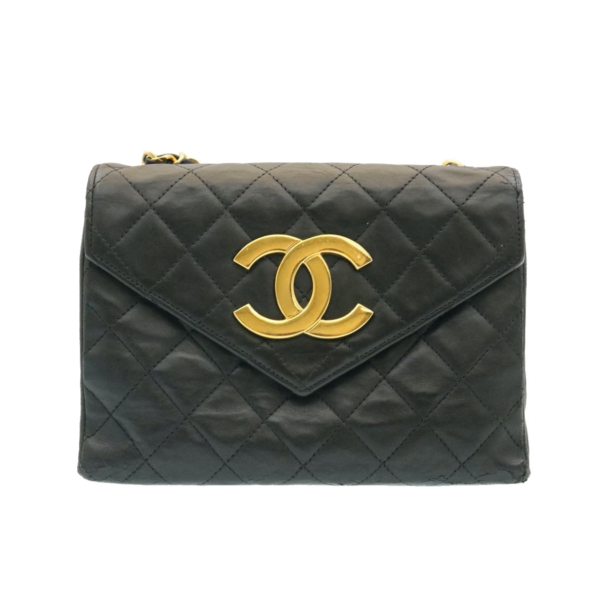 Top Quality Chanel Lamb Skin Matelasse Chain Shoulder Bag Black CC Auth 25810A