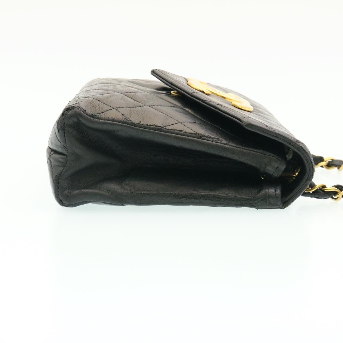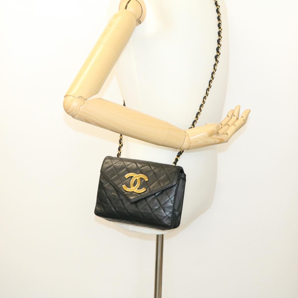 CHANEL Lamb Skin Matelasse Chain Shoulder Bag Black CC Auth 25810A