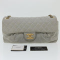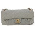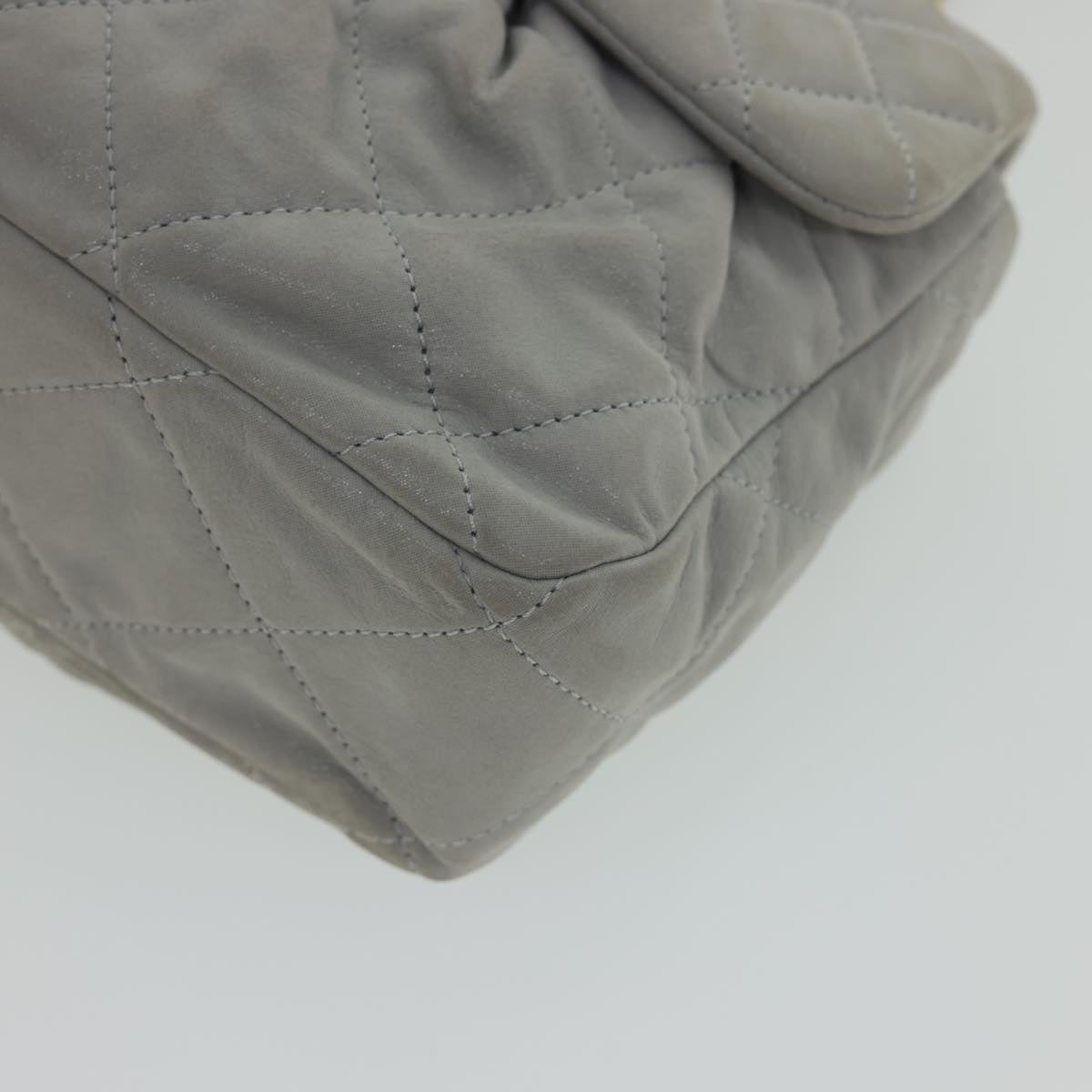 CHANEL Lamb Skin Matelasse Double Chain Shoulder Bag Gray CC Auth am1097gA