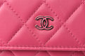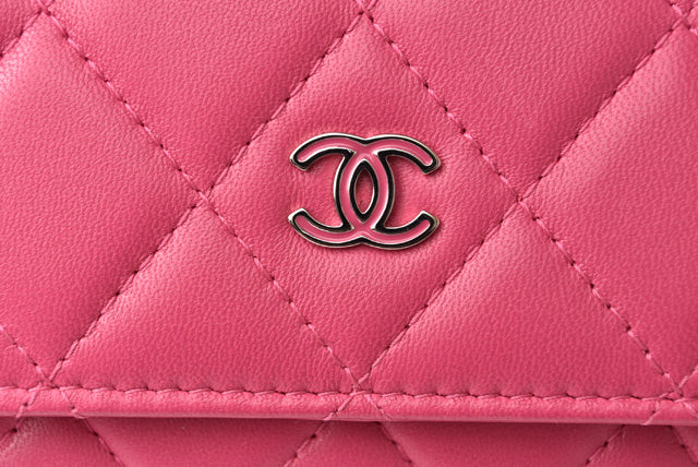 Chanel Lambskin Chain Wallet Shoulder Bag Pink Silver Hardware