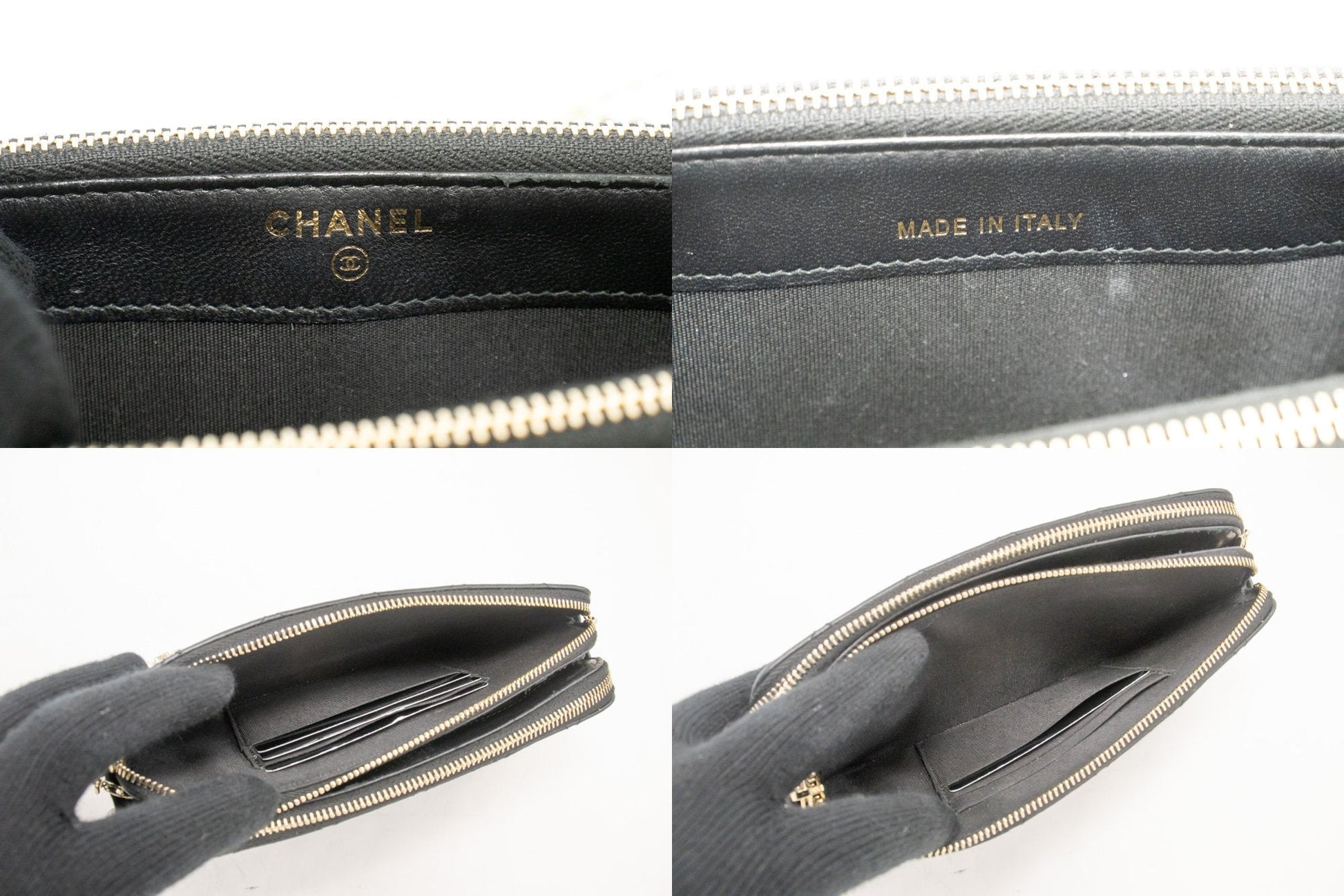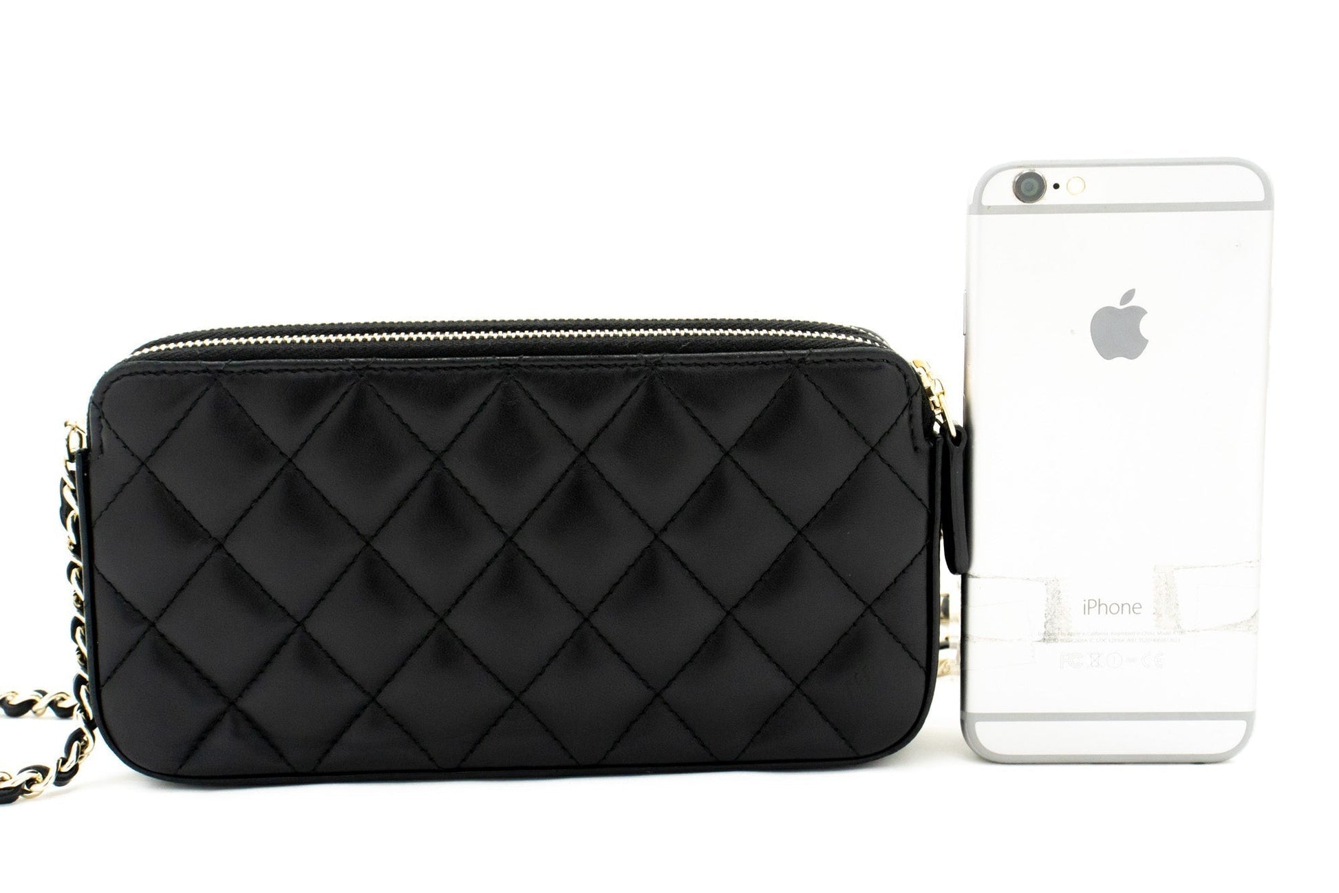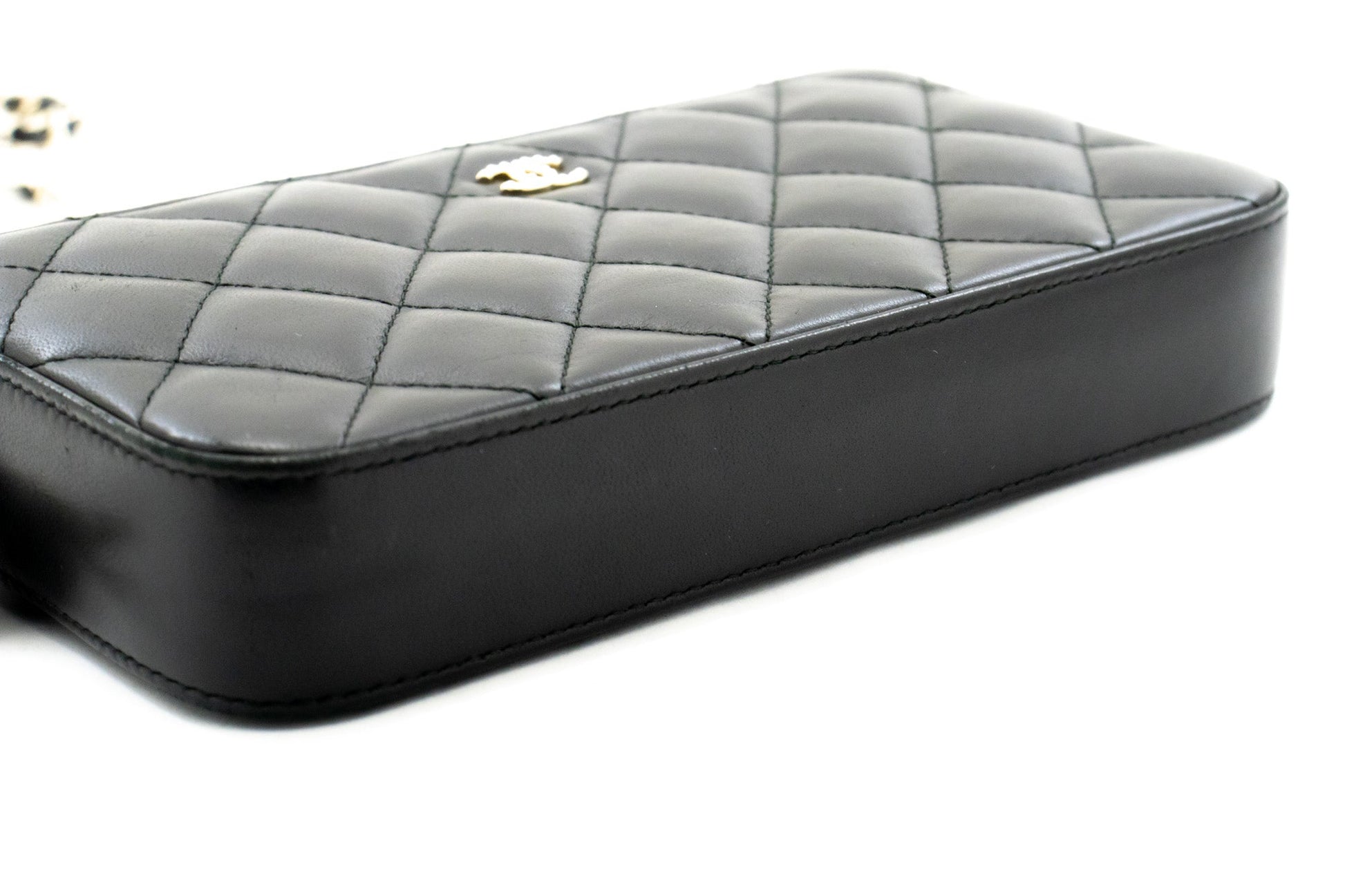 An CHANEL made of black Lambskin Pearl Wallet On Chain WOC Double Zip Chain Bag.