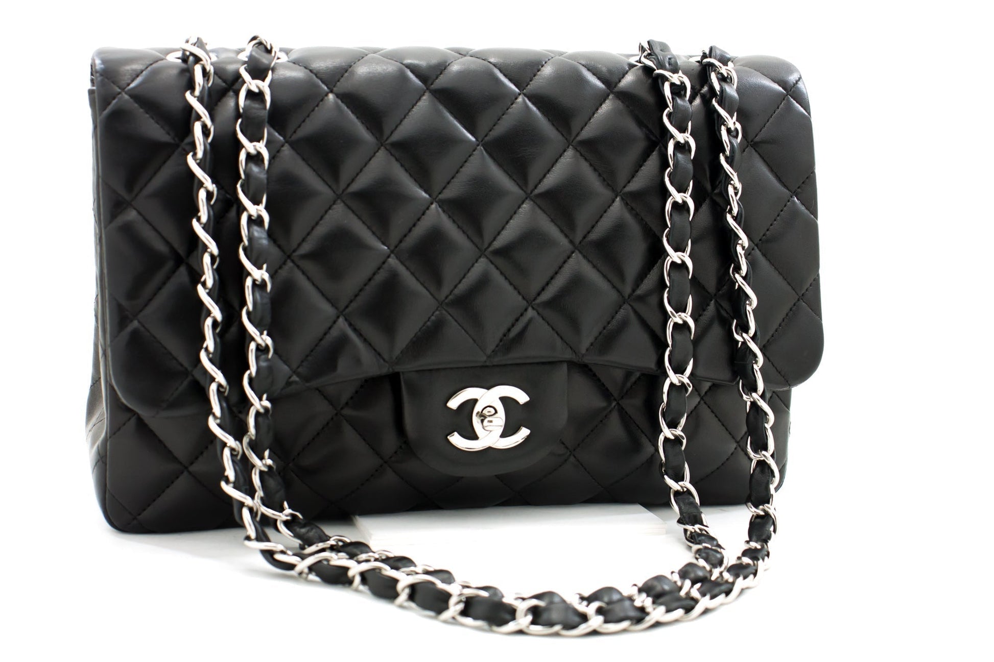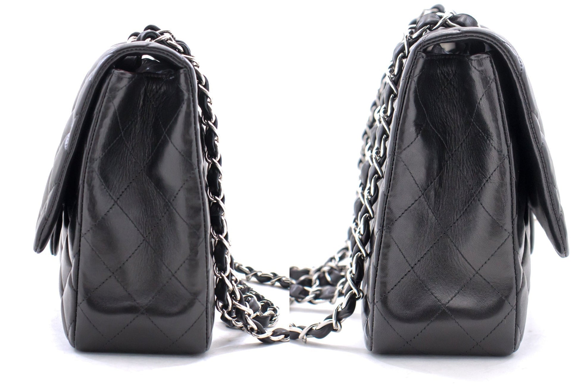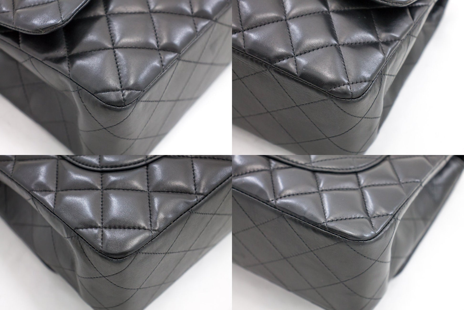 An CHANEL Large Classic Handbag 11"Chain Shoulder Bag New Black Lamb.