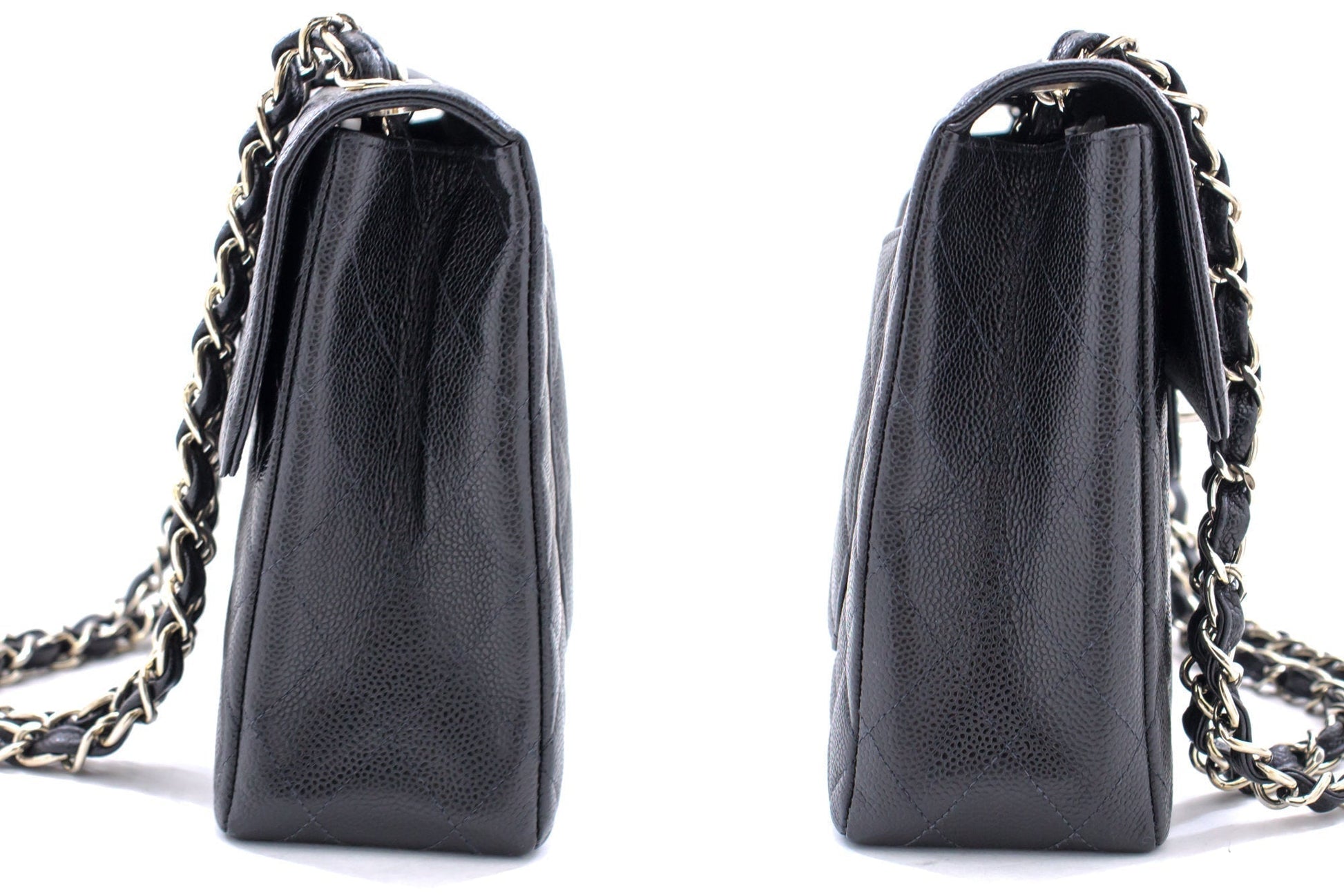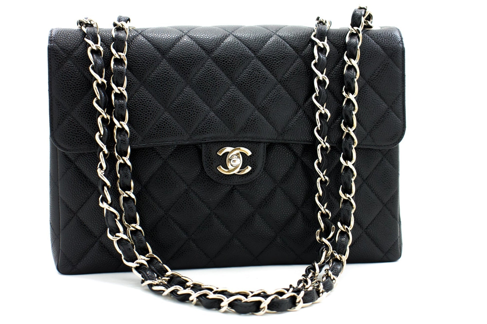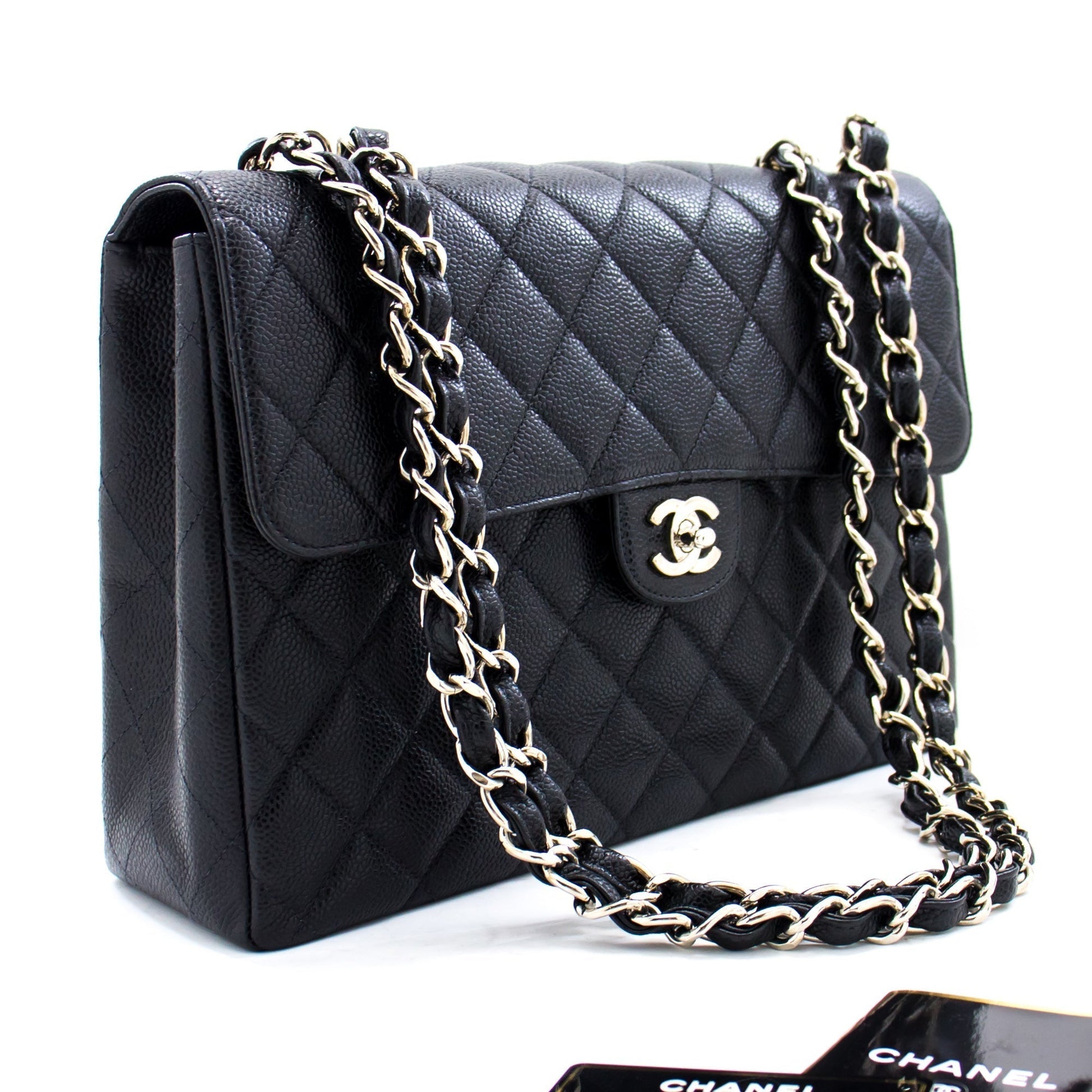 An CHANEL Large Classic Handbag Chain Shoulder Bag New Black Caviar.