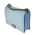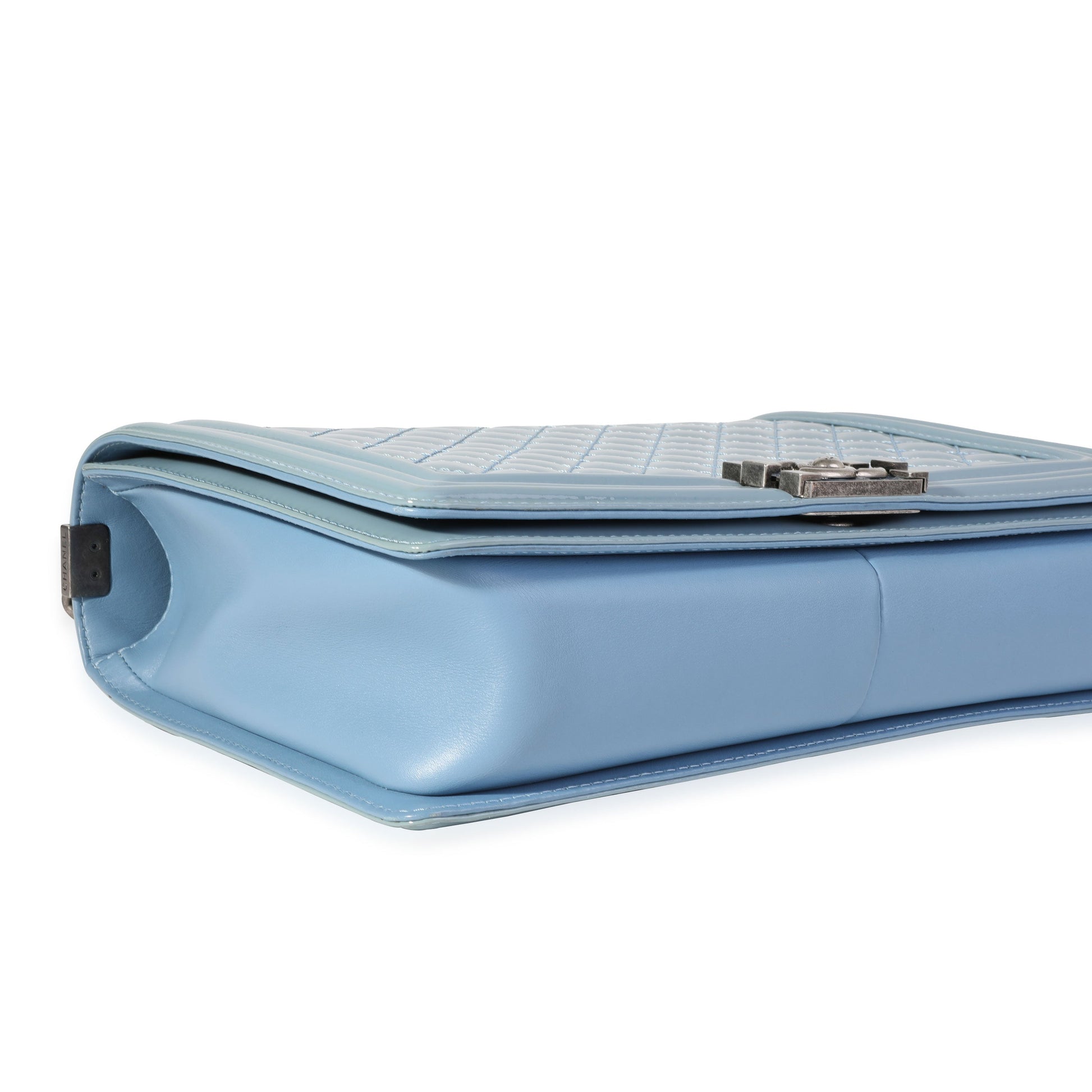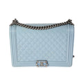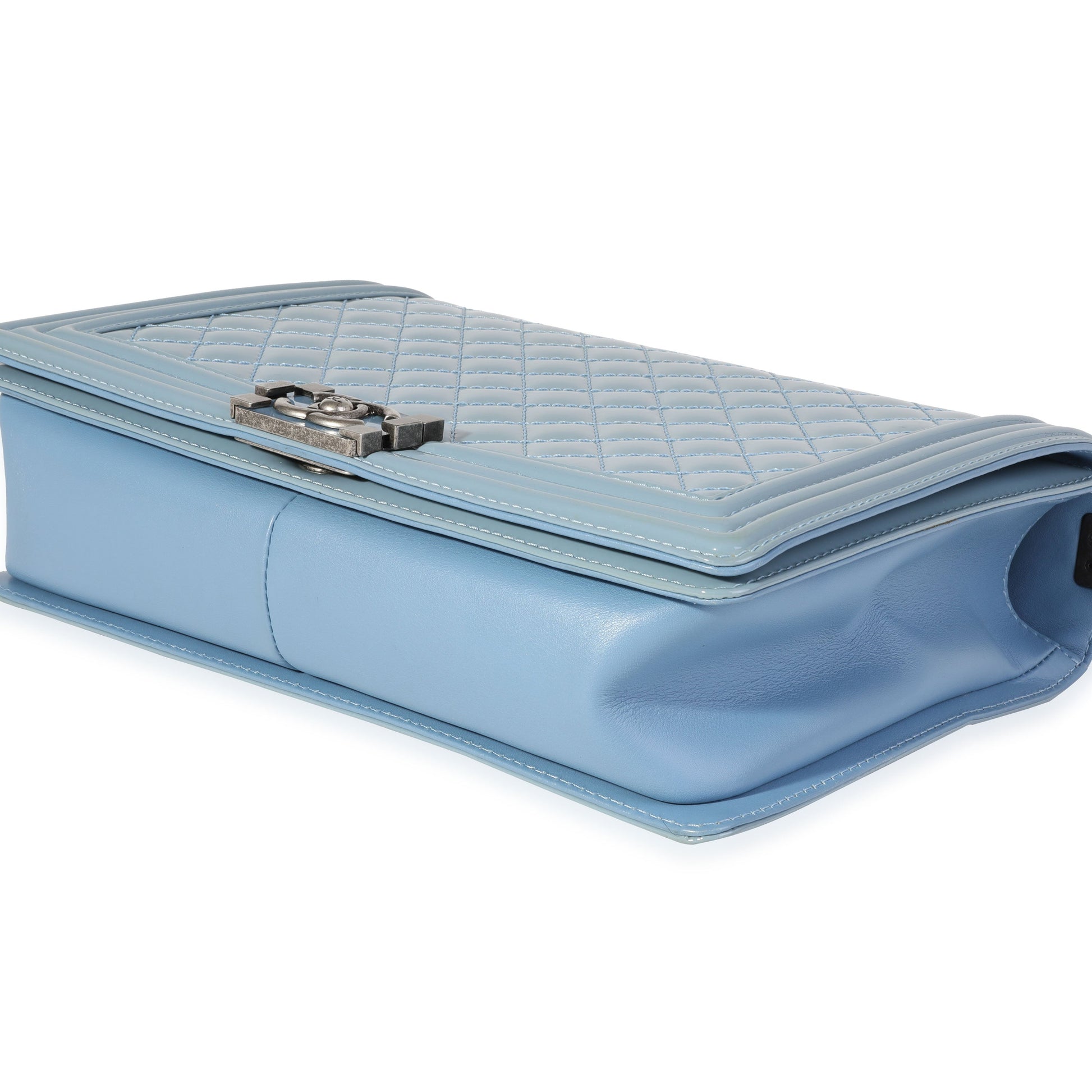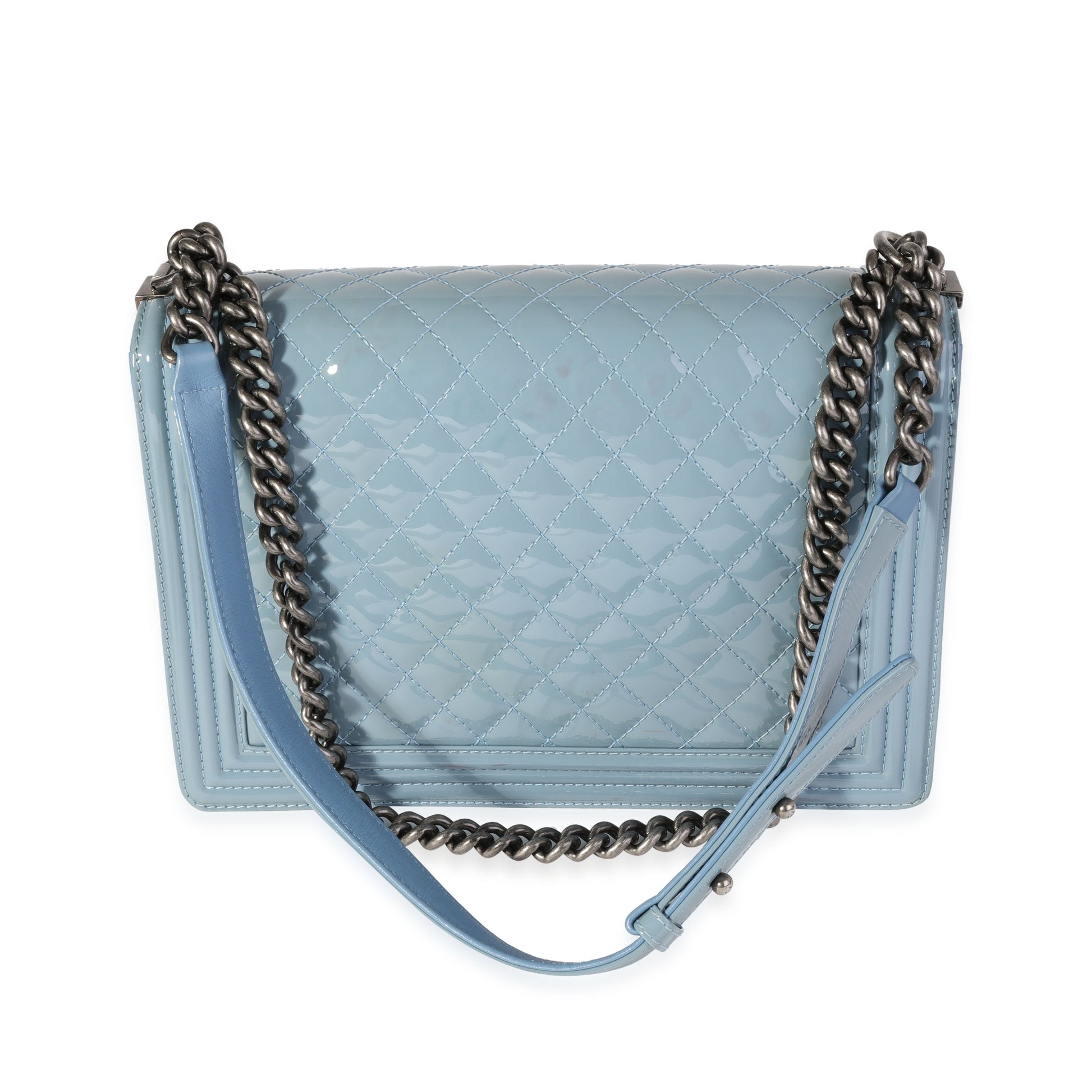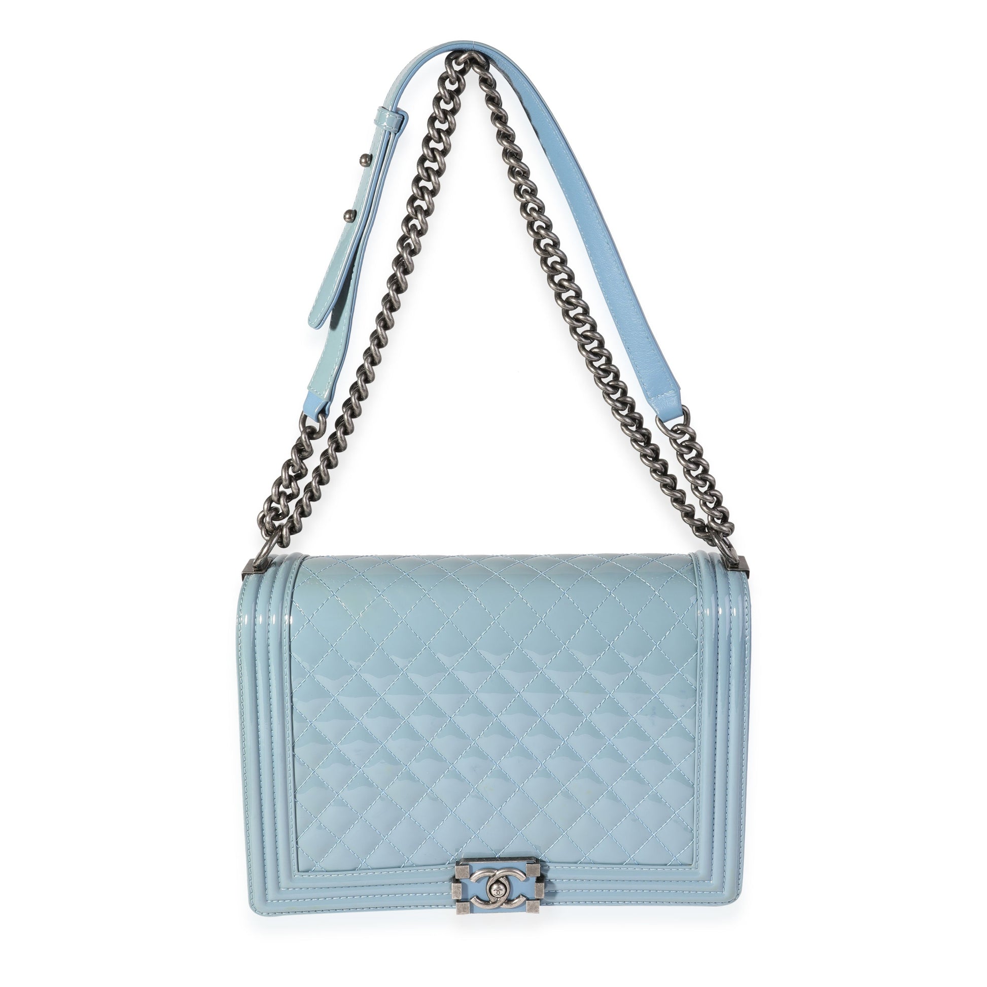 Listing Title: Chanel Light Blue Quilted Patent Leather Large Boy Bag