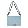 Top Quality Chanel Light Blue Quilted Patent Leather Large Boy Bag