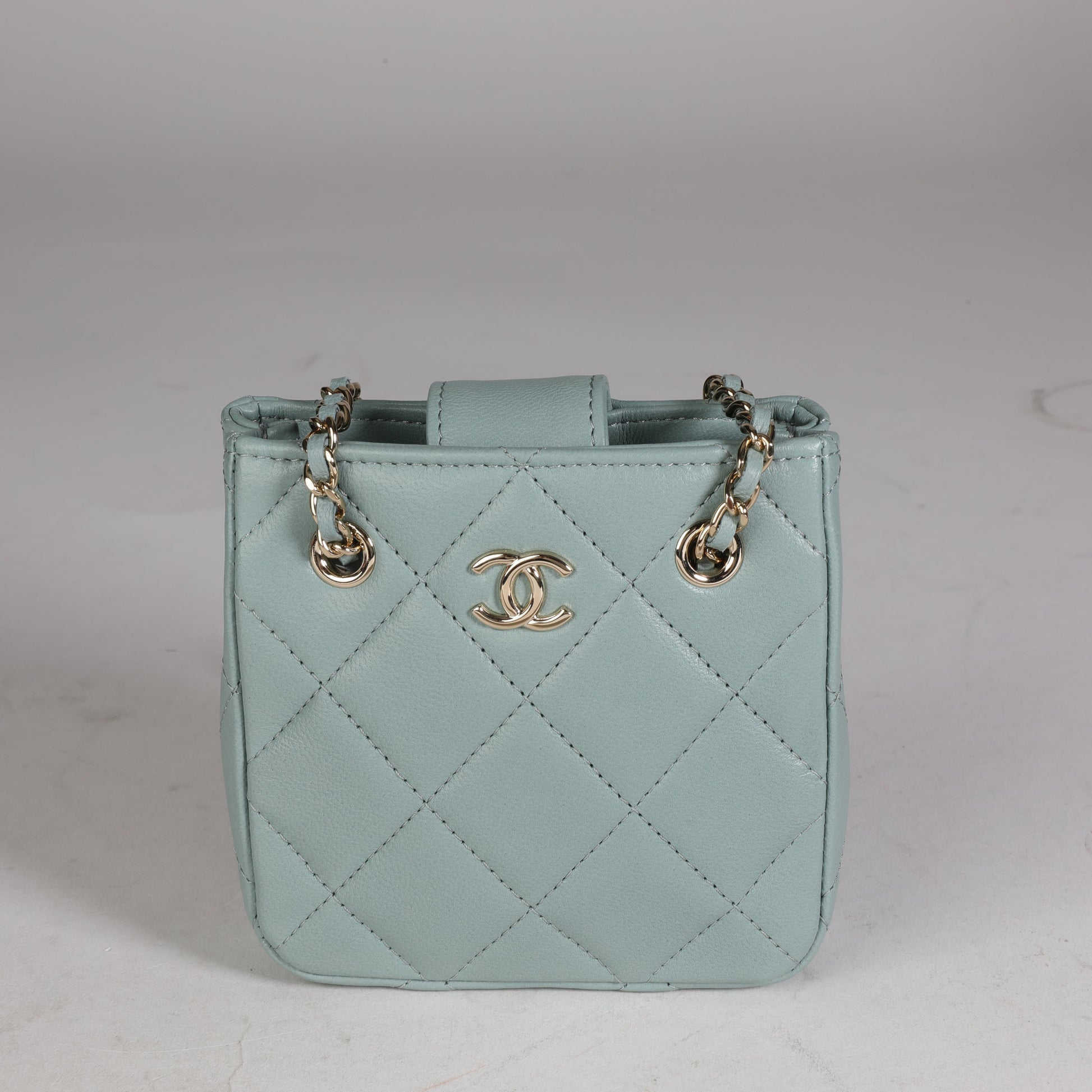 Listing Title: Chanel Light Teal Quilted Lambskin Tiny Shopping Bag