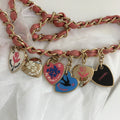 This stylish pochette is finely crafted of lambskin leather in Pink, with golden hardware and hearts charms on the the chain
