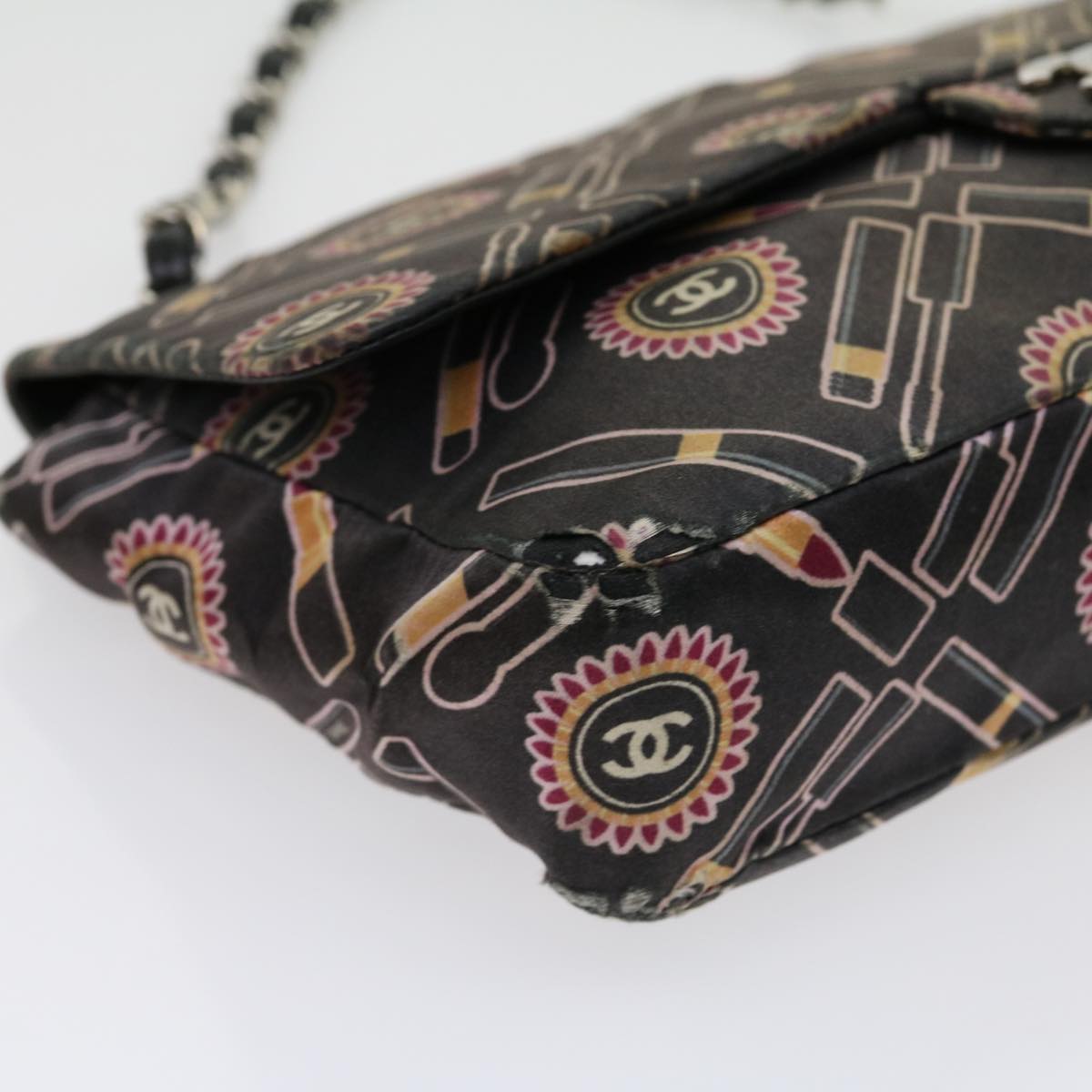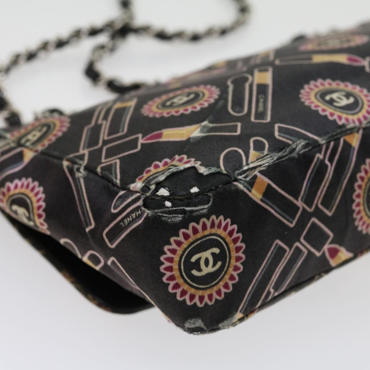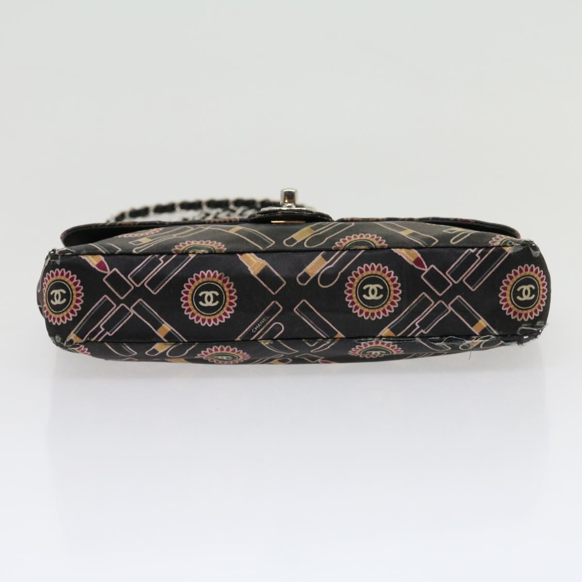 CHANEL Lip Chain Turn Lock Shoulder Bag Satin Black CC Auth 30892