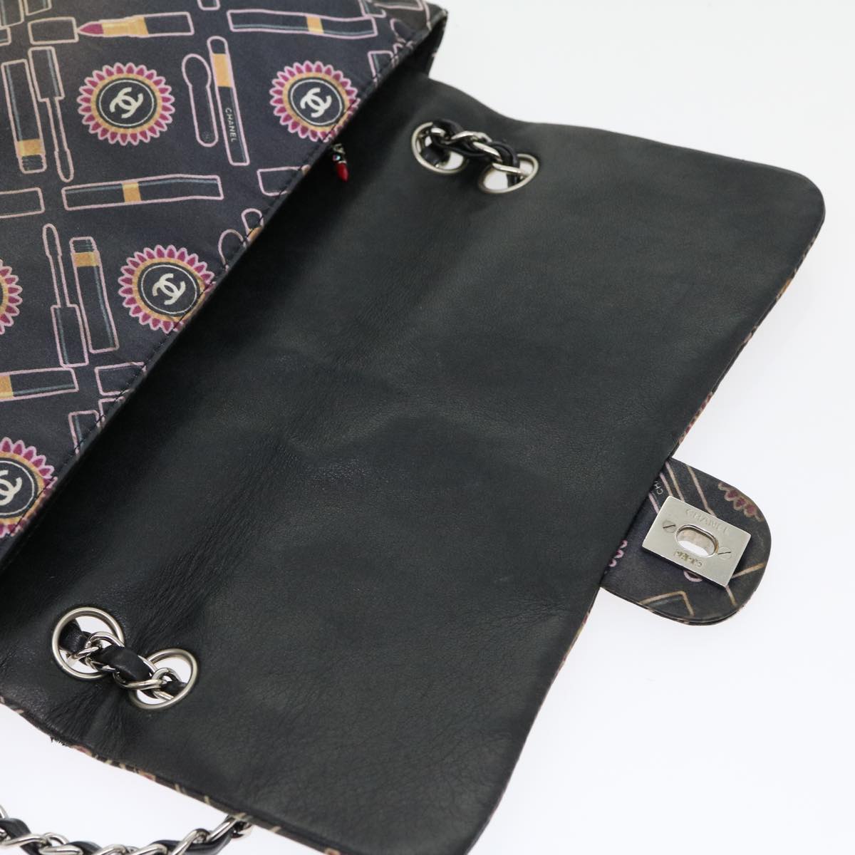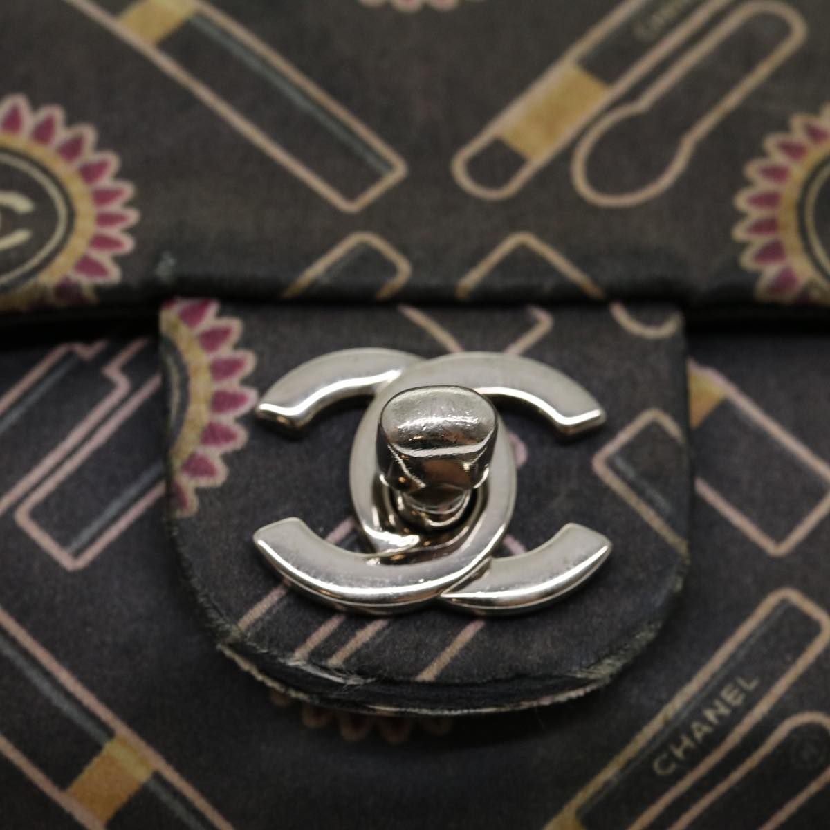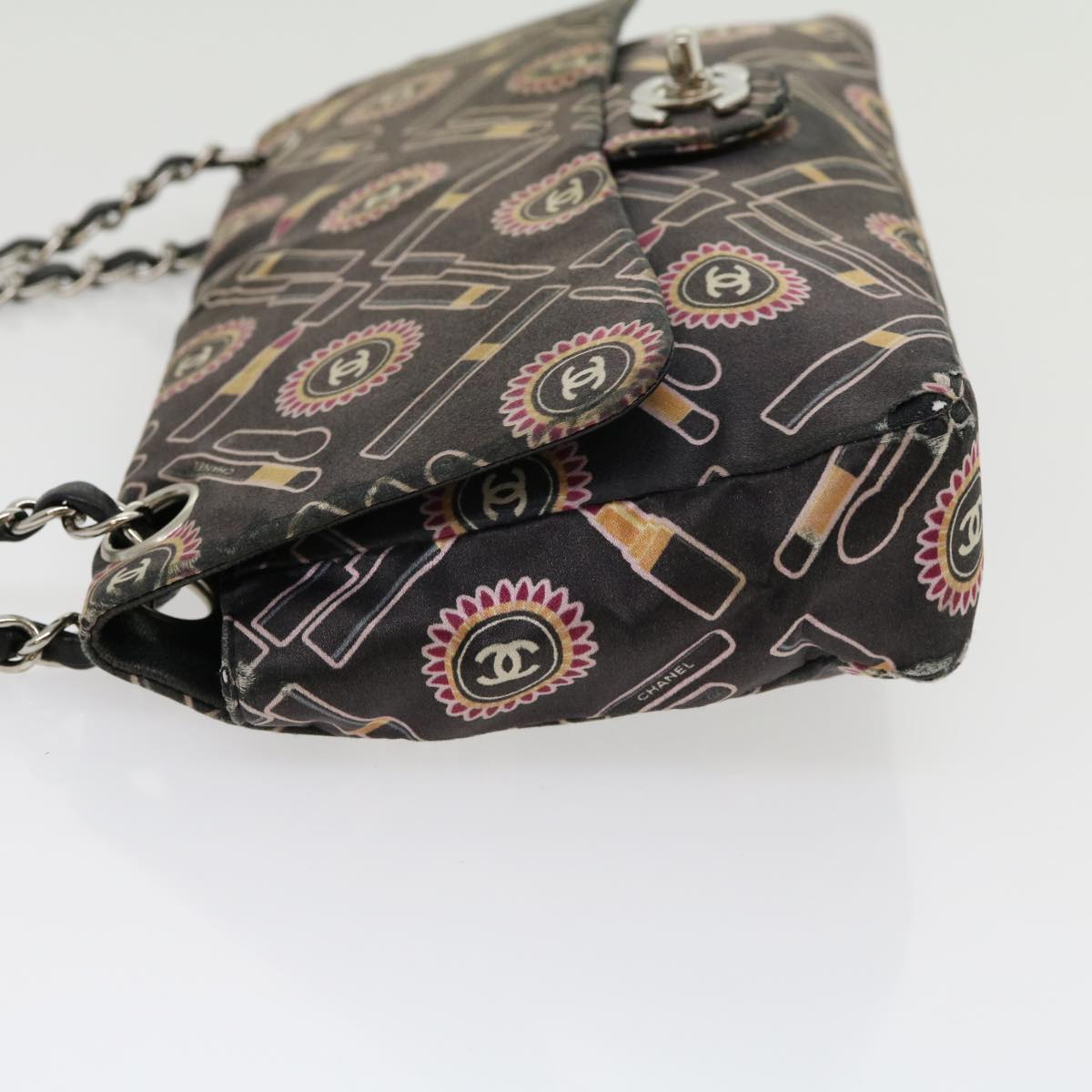CHANEL Lip Chain Turn Lock Shoulder Bag Satin Black CC Auth 30892