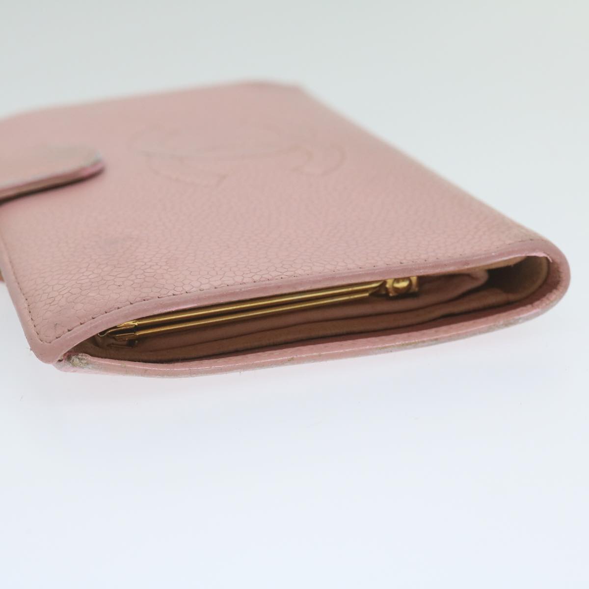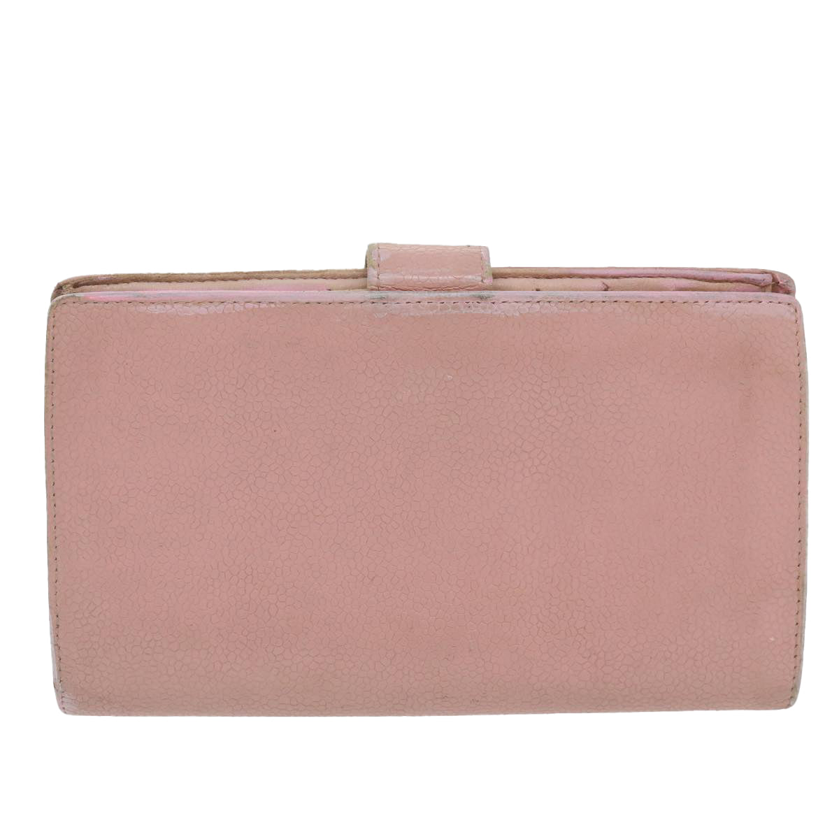 CHANEL Long Wallet Caviar Skin Pink CC Auth bs11186