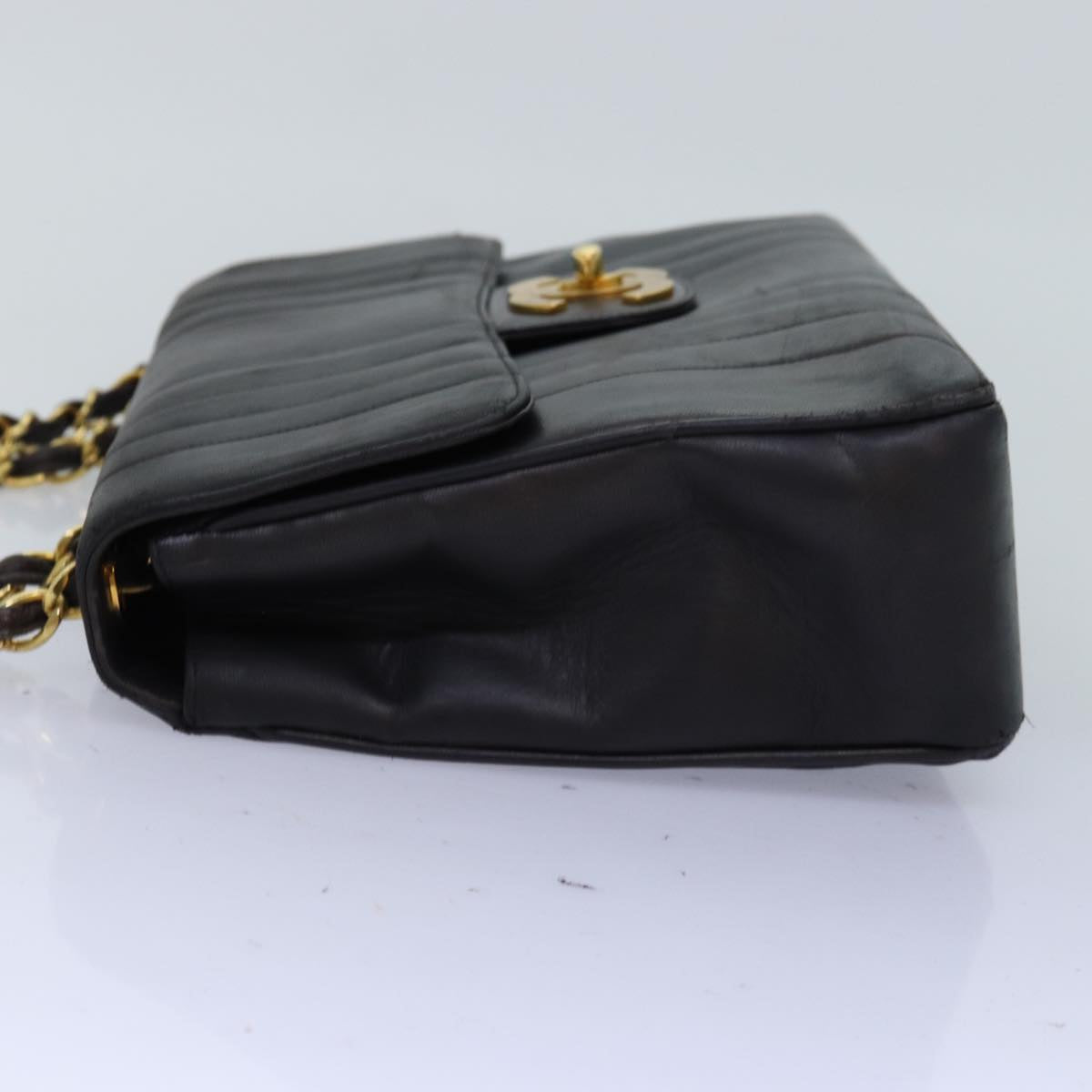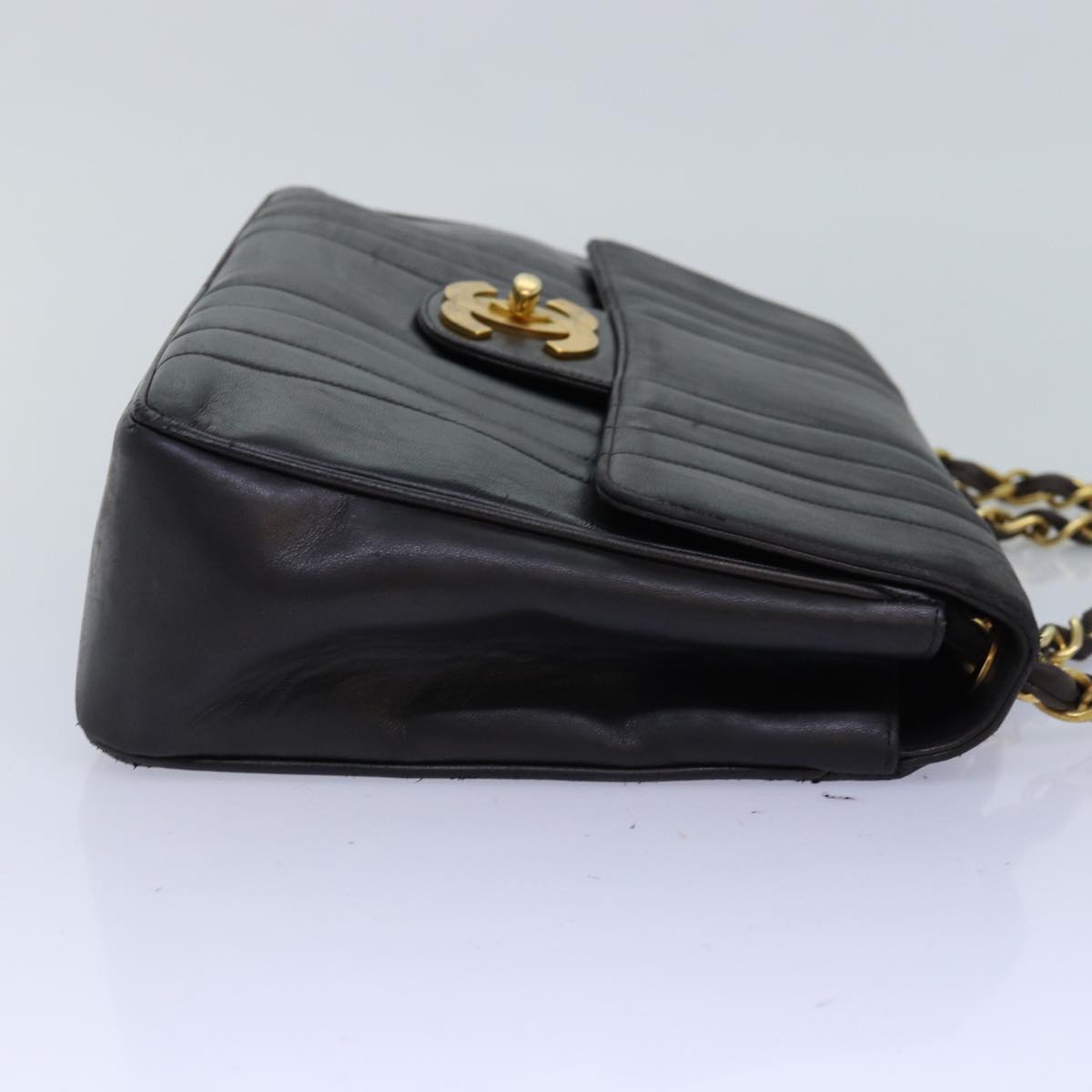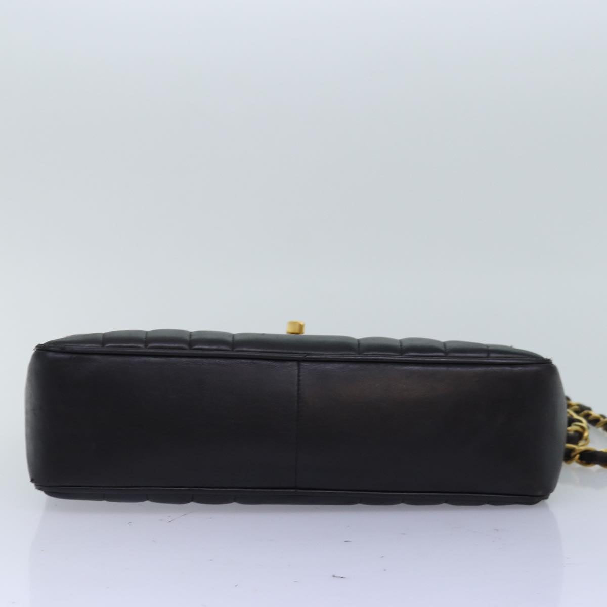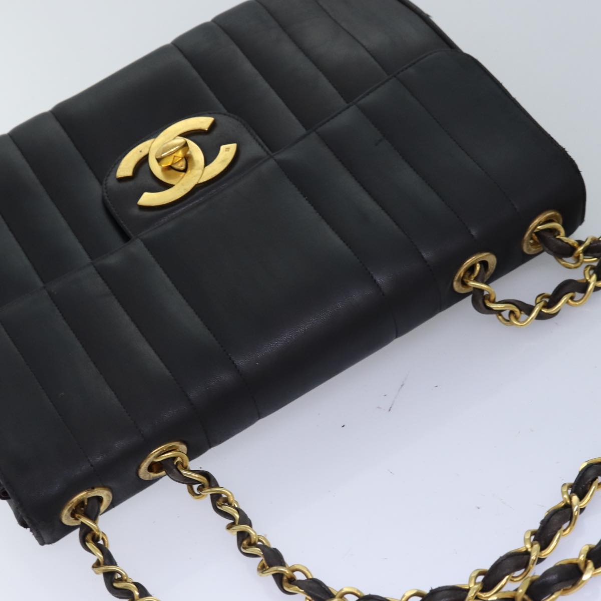 CHANEL Mademoiselle Big COCO Mark Chain Bag Lamb Skin Black CC Auth yk12655