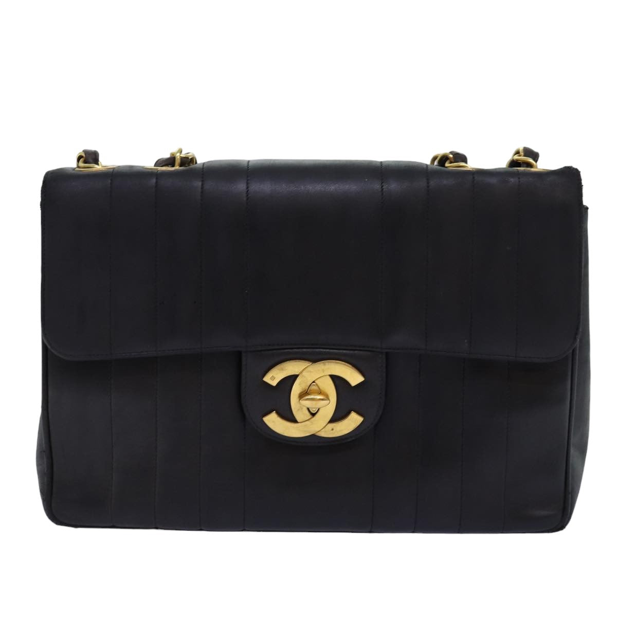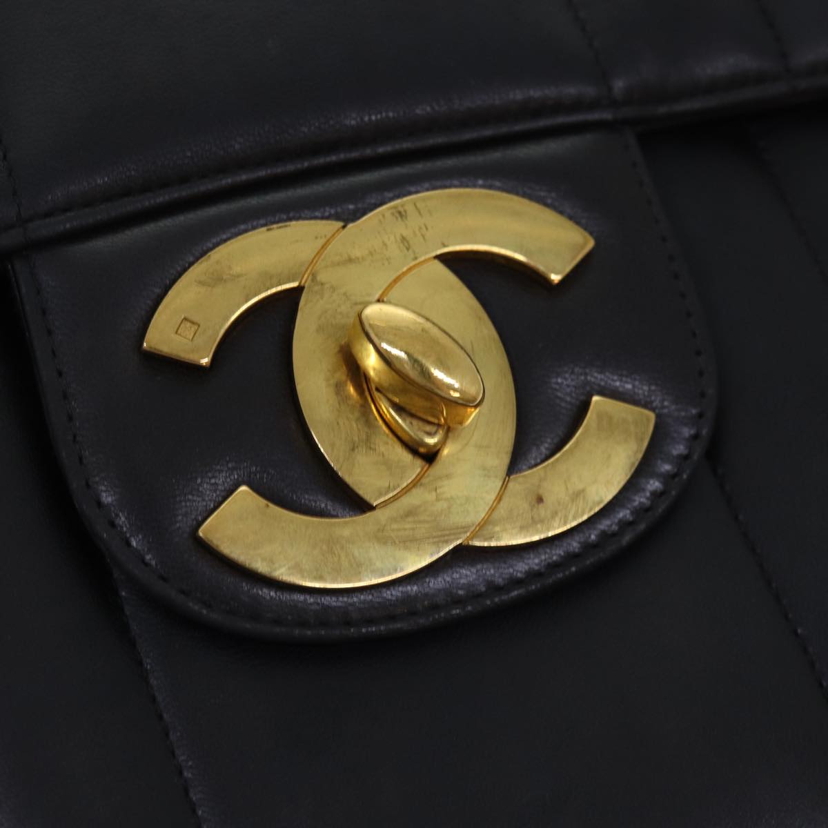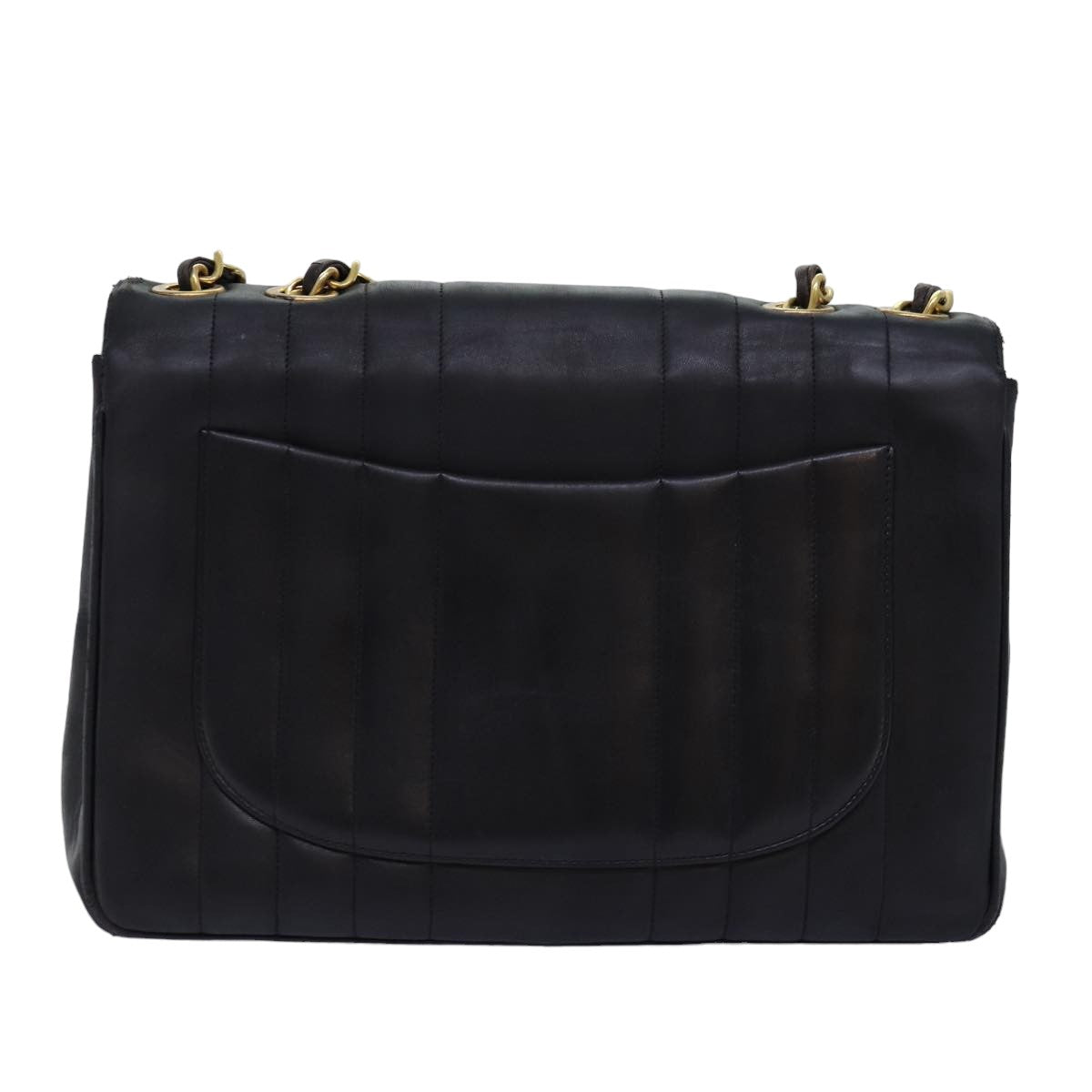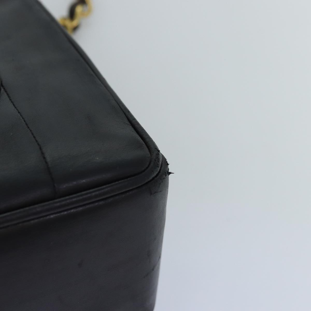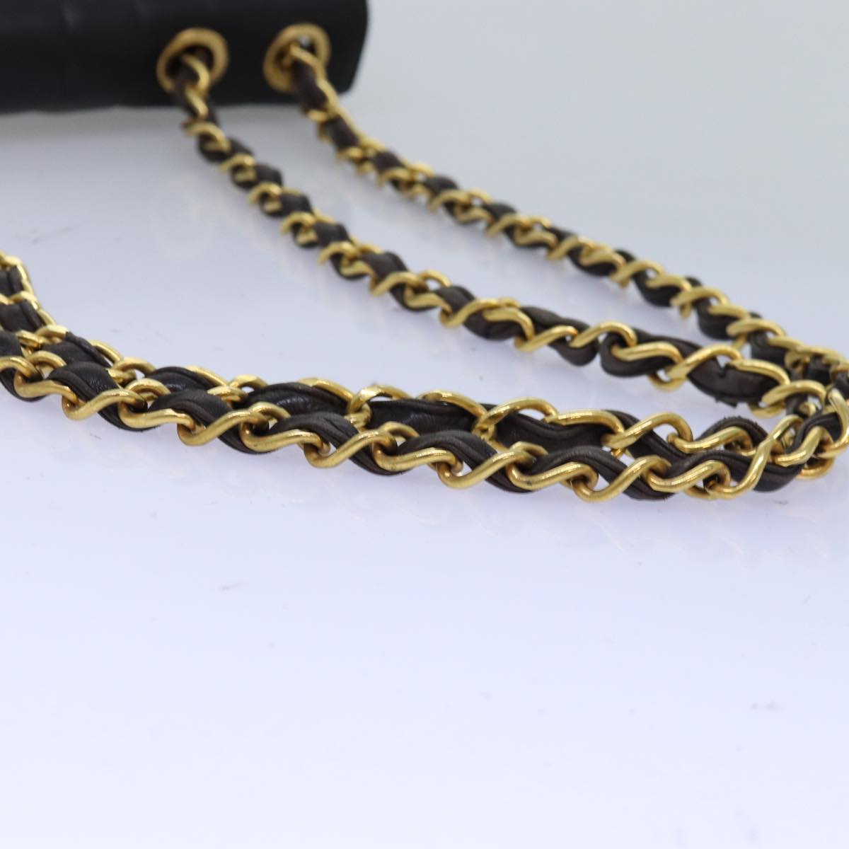 CHANEL Mademoiselle Big COCO Mark Chain Bag Lamb Skin Black CC Auth yk12655