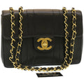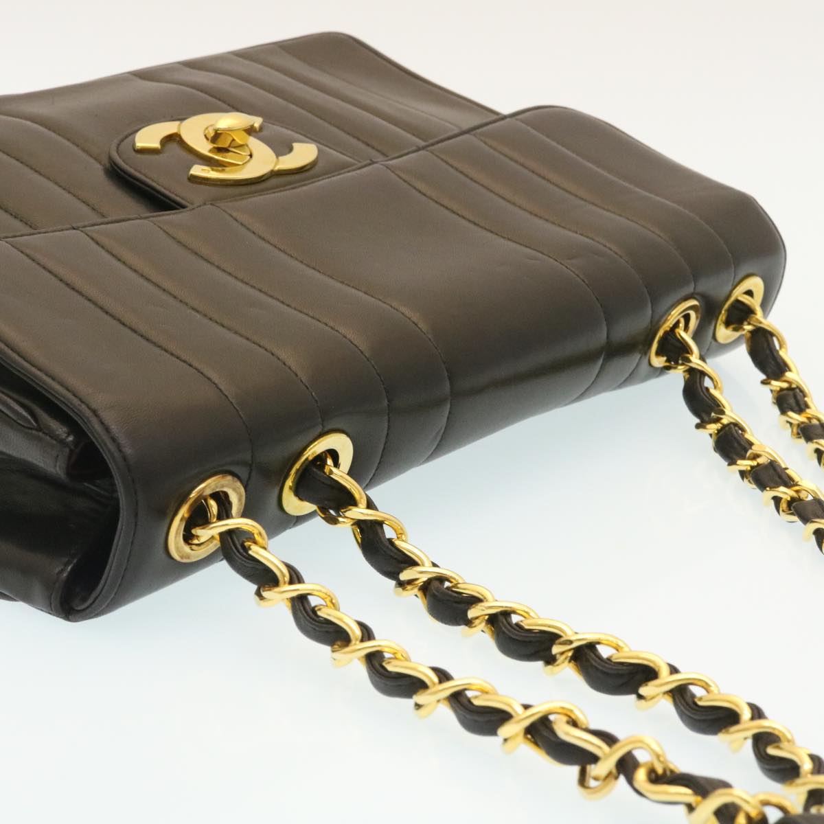 CHANEL Mademoiselle Big COCO Mark Chain ShoulderBag Lamb Skin Black Auth yk4080A