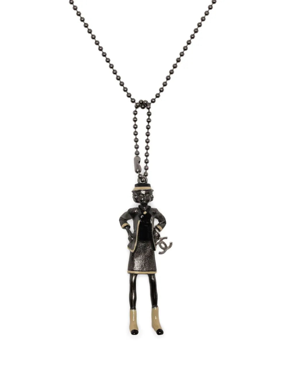 Black Silver plated Bead chain Signature Mademoiselle profile motif Signature interlocking CC logo Logo pendant Clasp fastening This previously owned and item is in very New condition with minimal New of use.