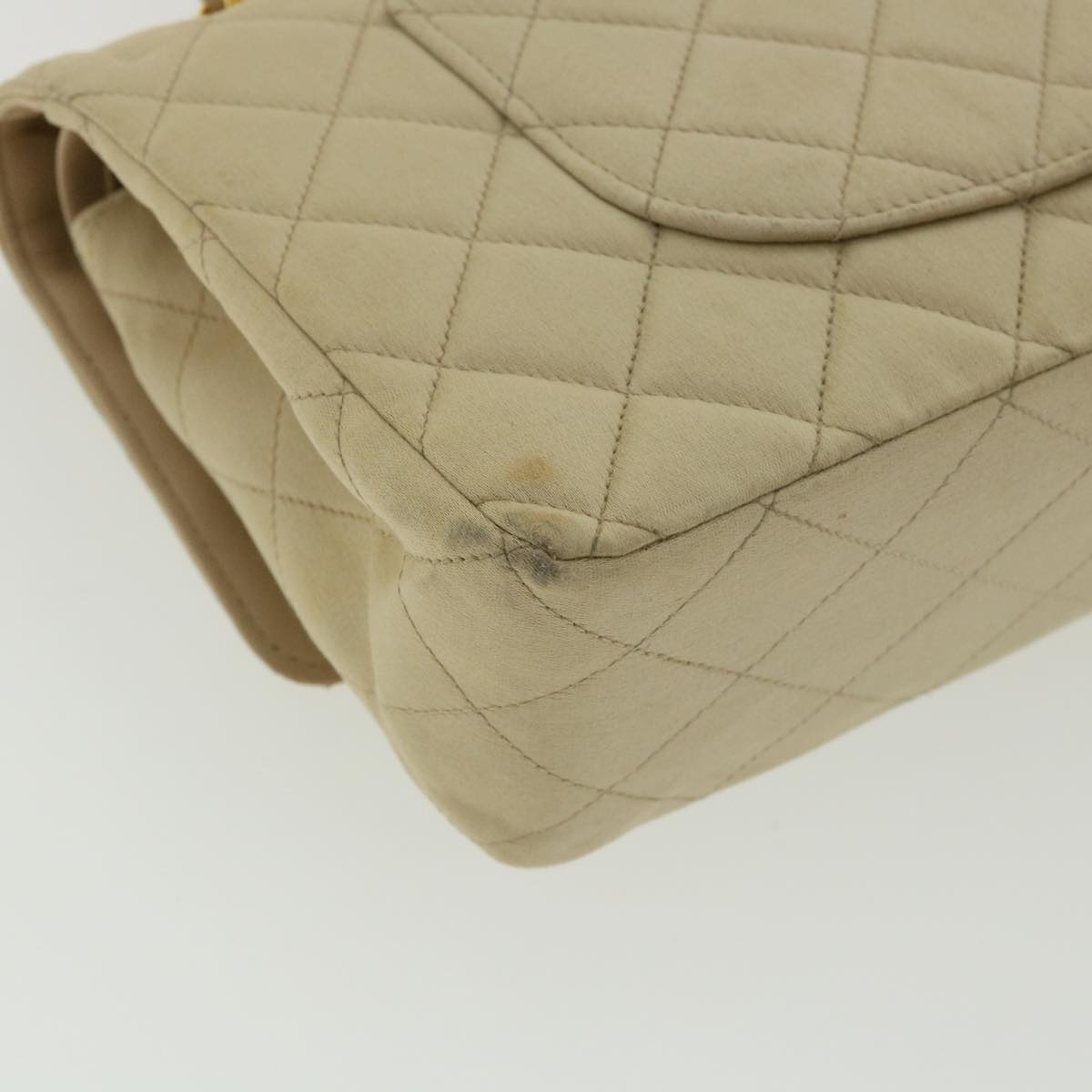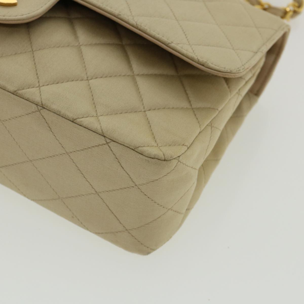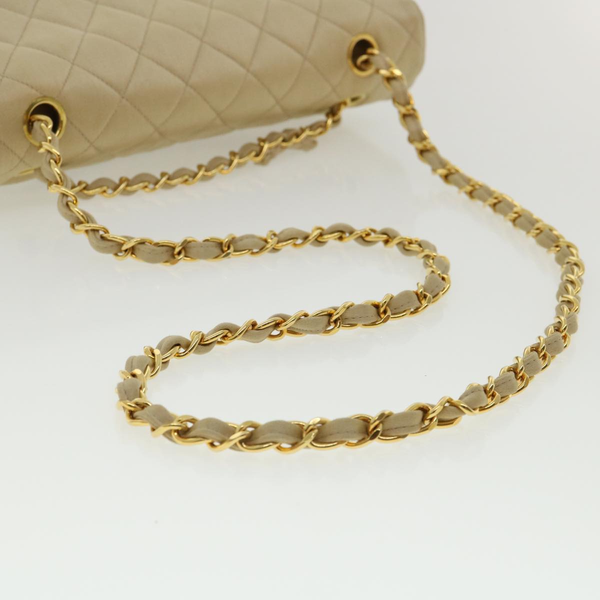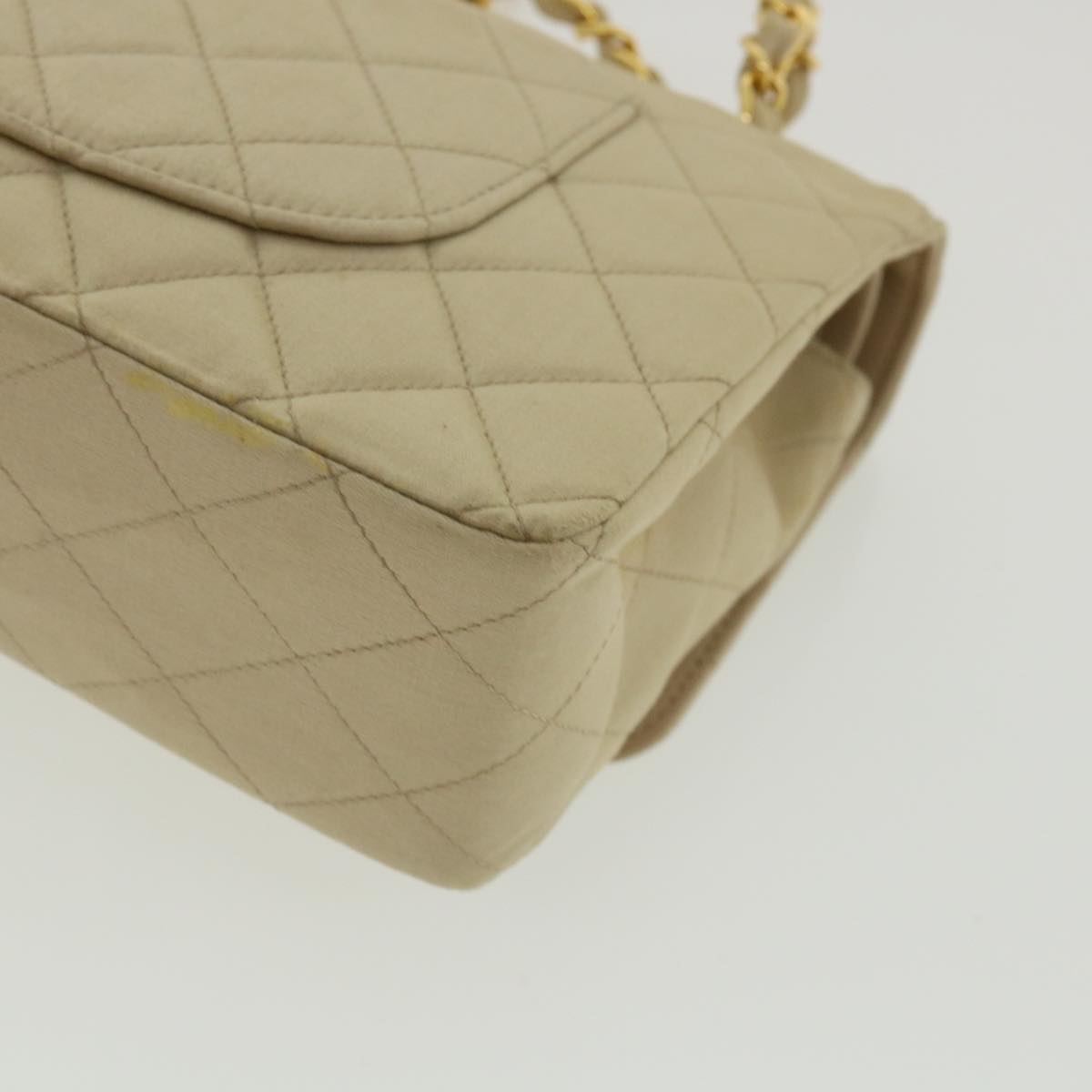 CHANEL Matelasse 25 Turn Lock Chain Shoulder Bag Satin Beige CC Auth 32604