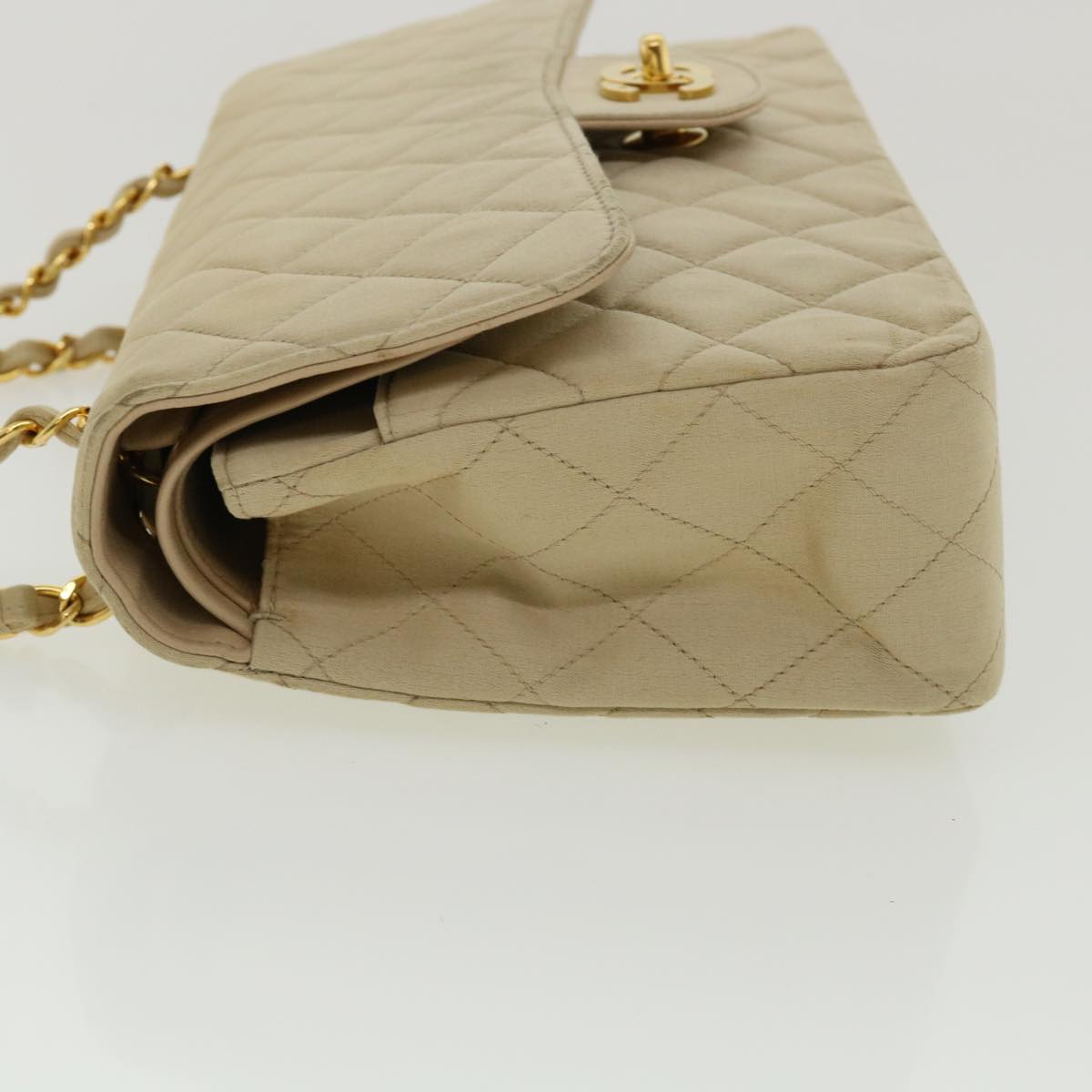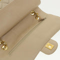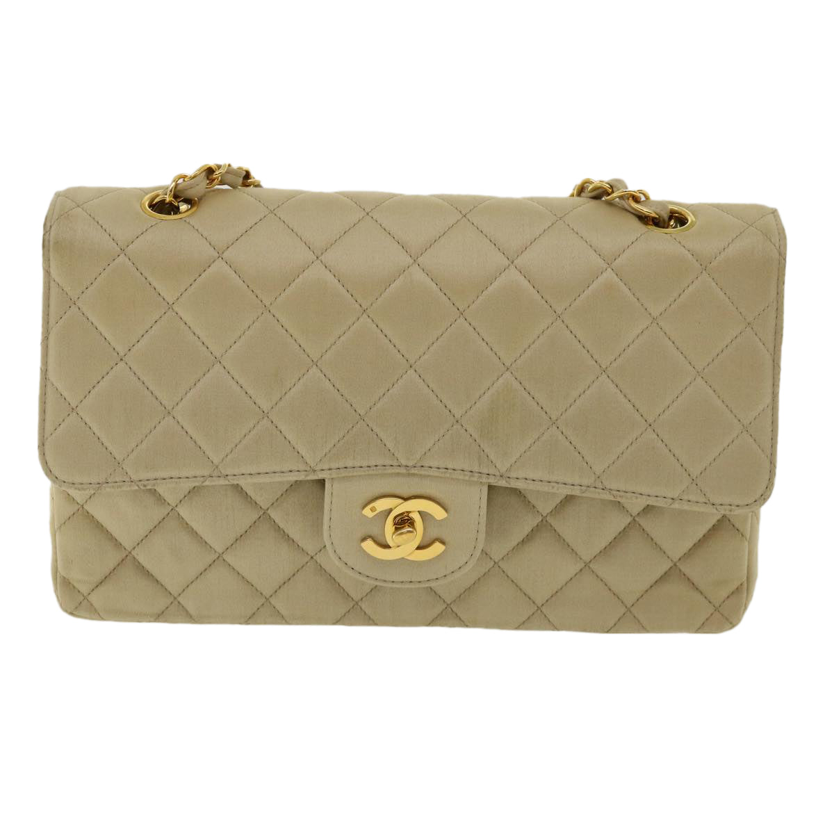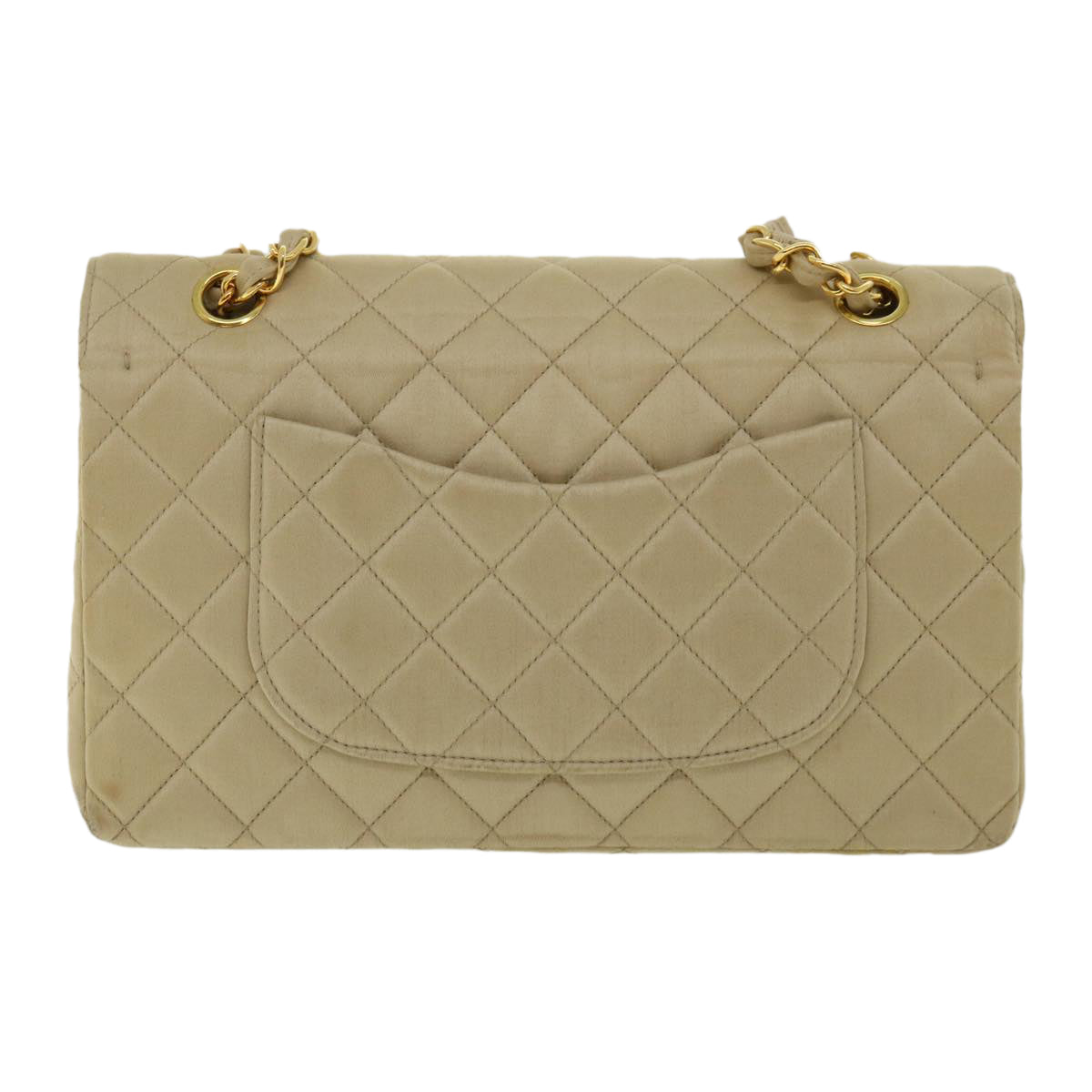 CHANEL Matelasse 25 Turn Lock Chain Shoulder Bag Satin Beige CC Auth 32604