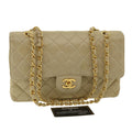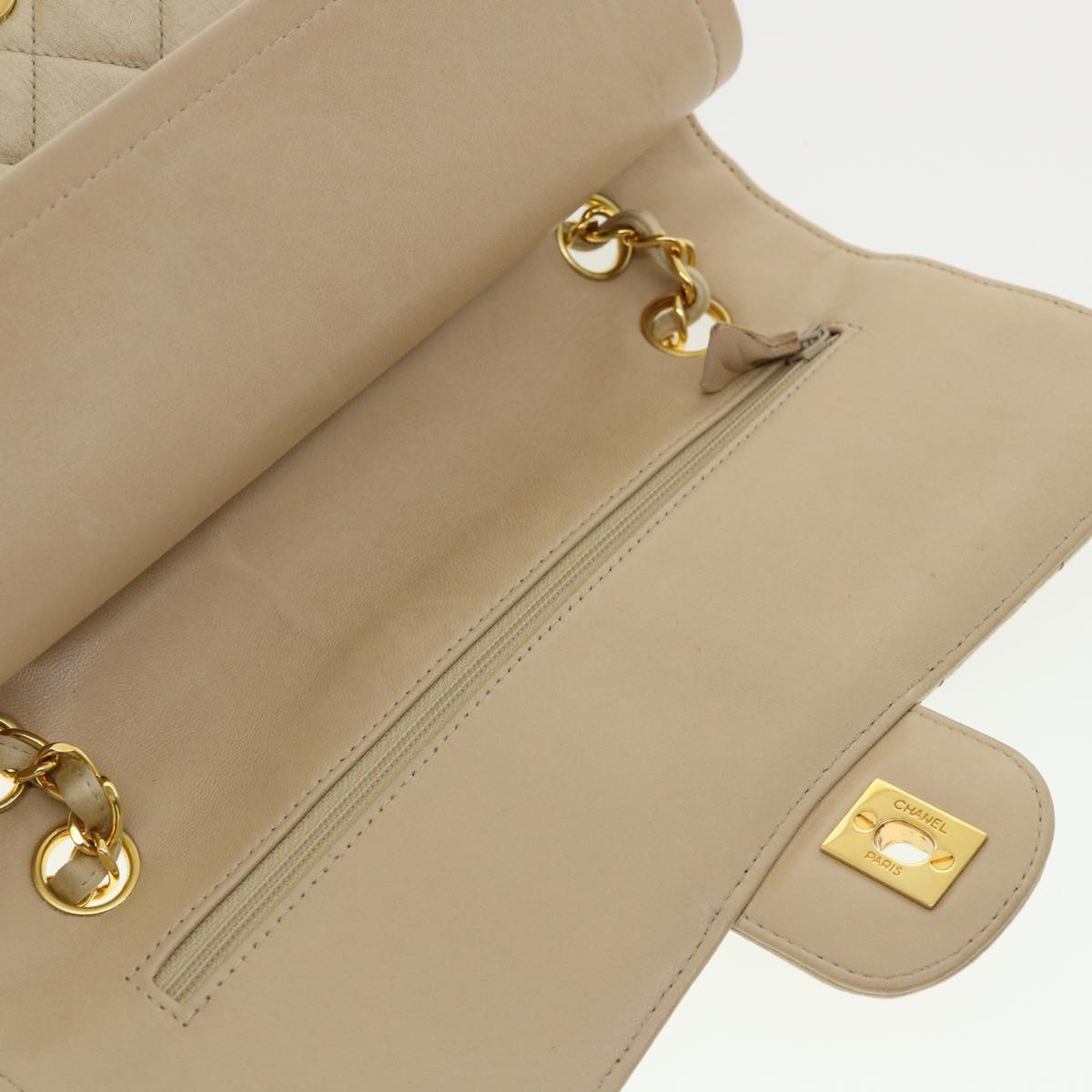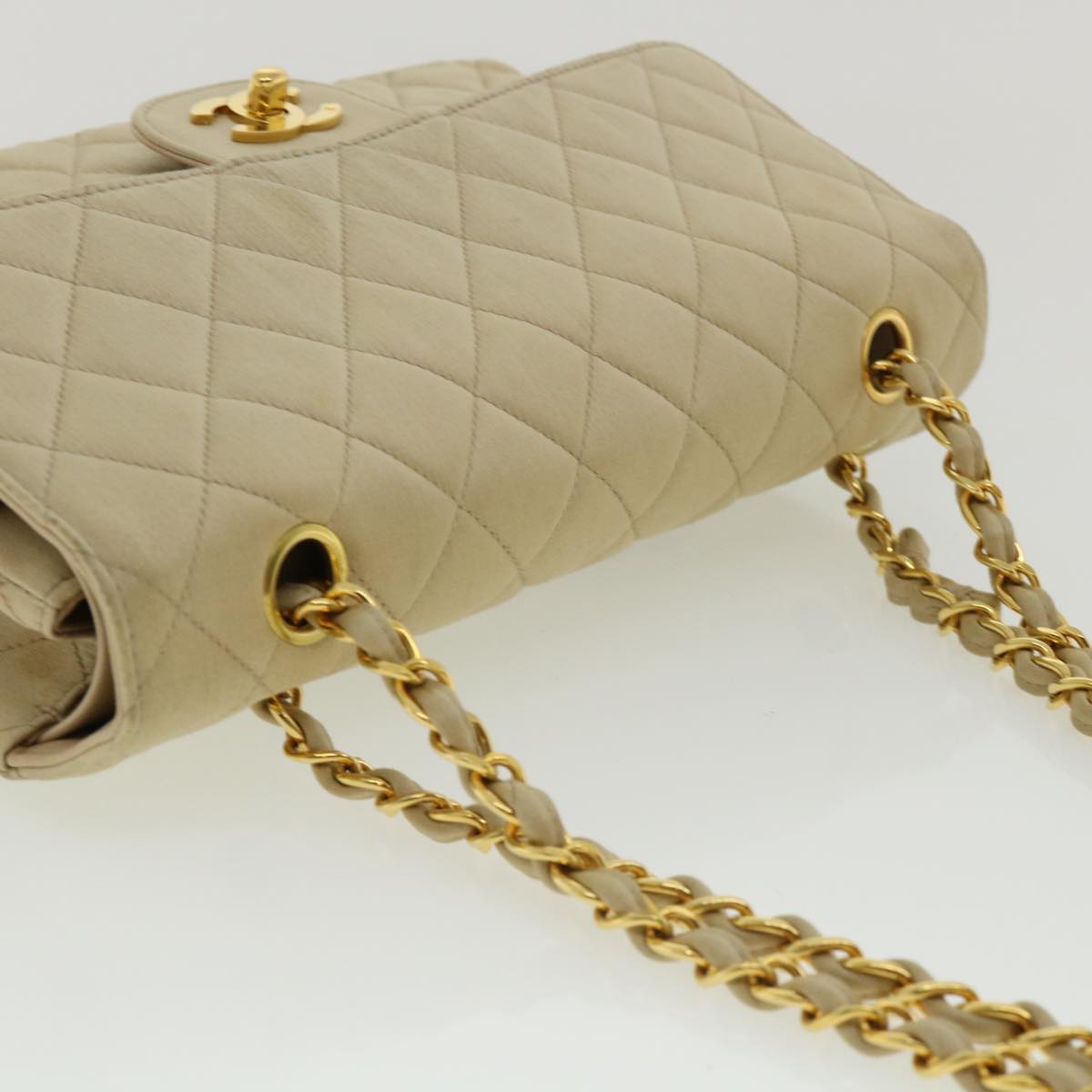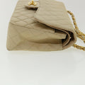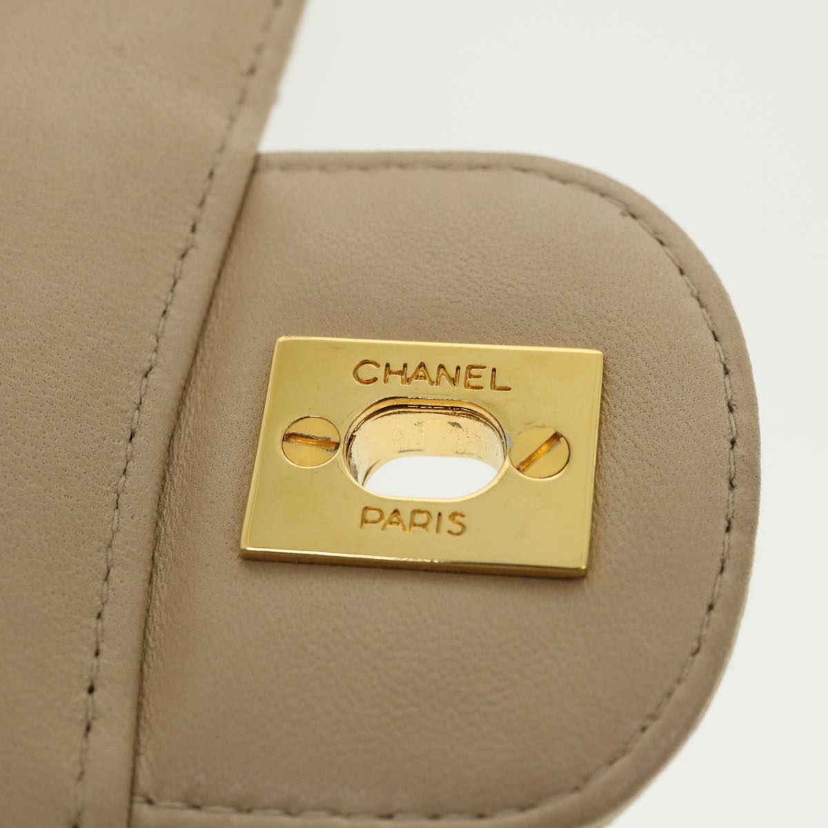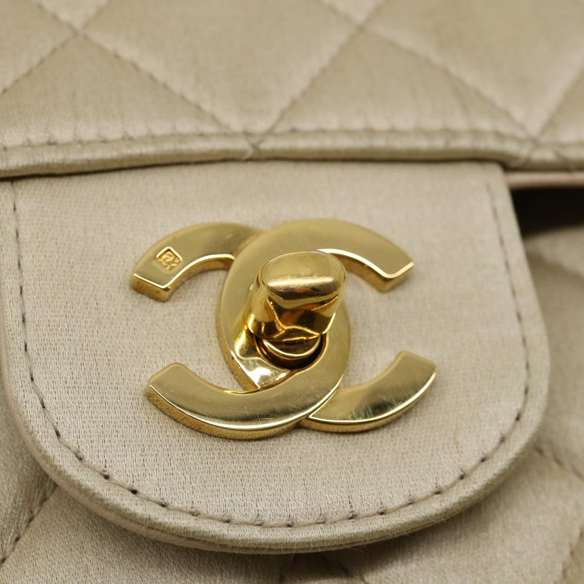 CHANEL Matelasse 25 Turn Lock Chain Shoulder Bag Satin Beige CC Auth 32604