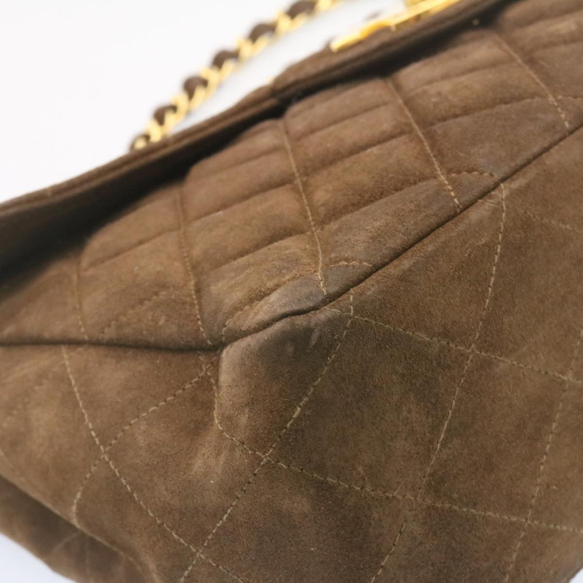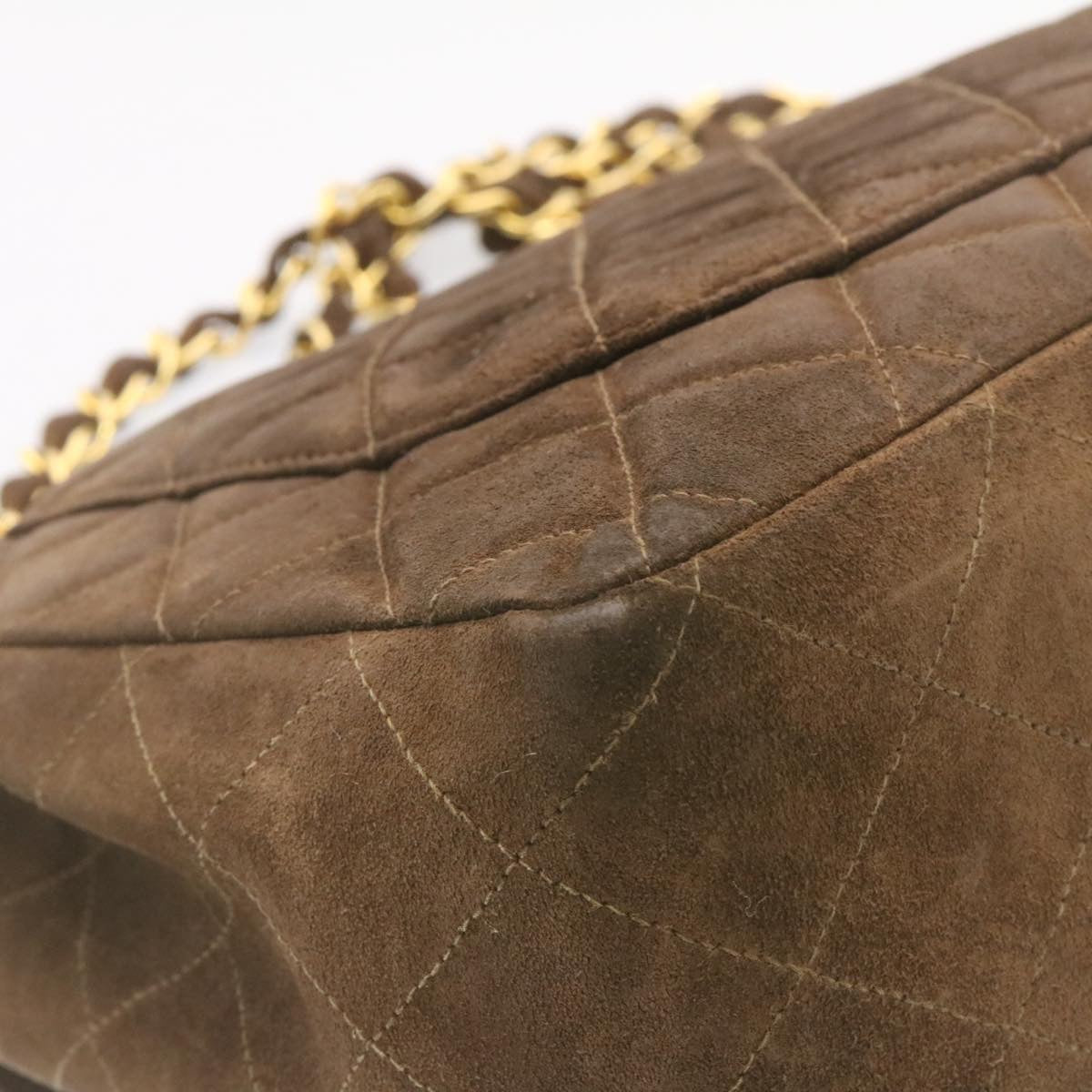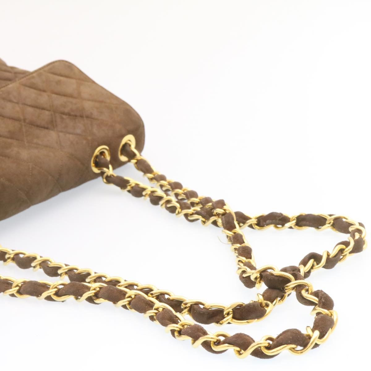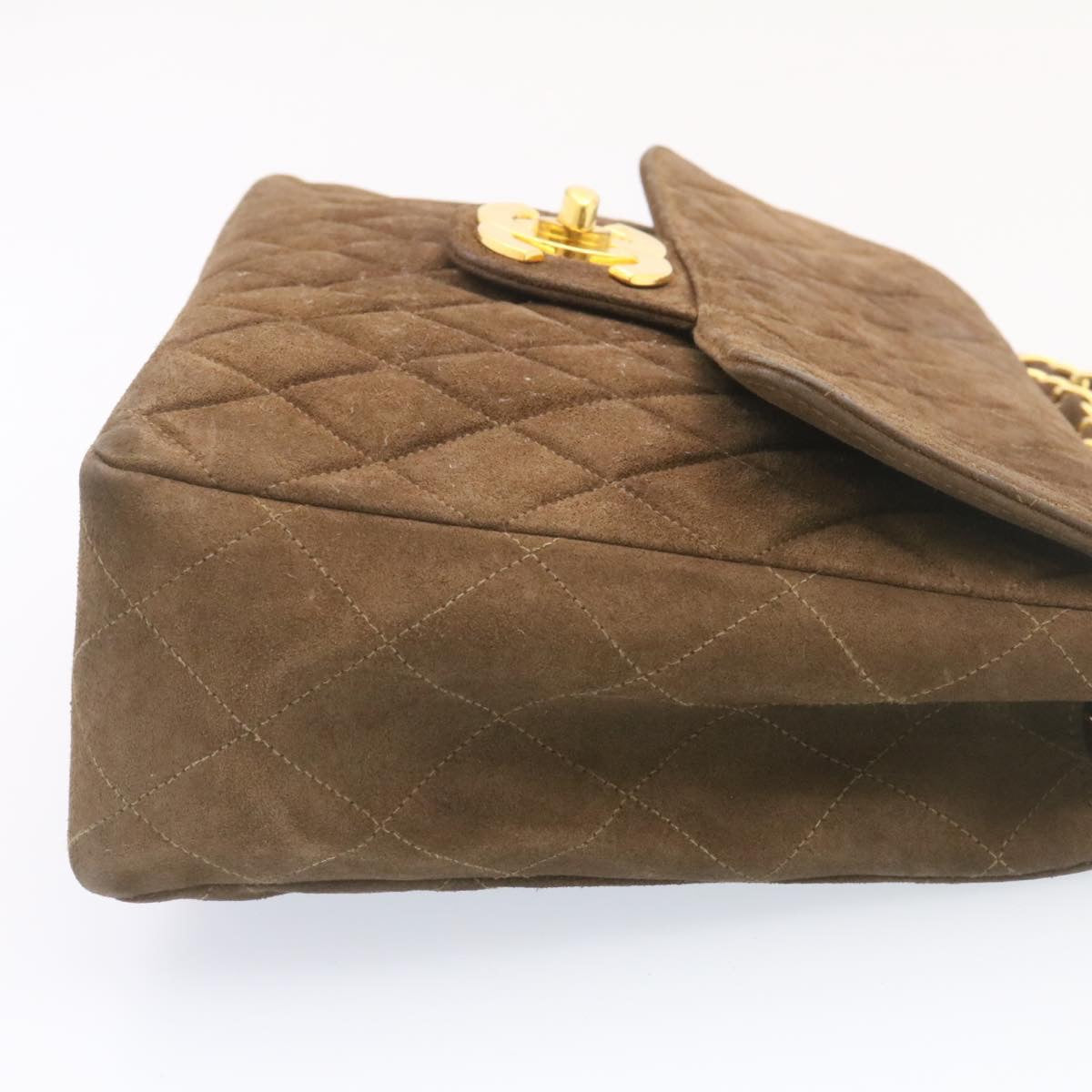CHANEL Matelasse 30 Double Chain New Shoulder Bag Suede Brown CC Auth ar4582