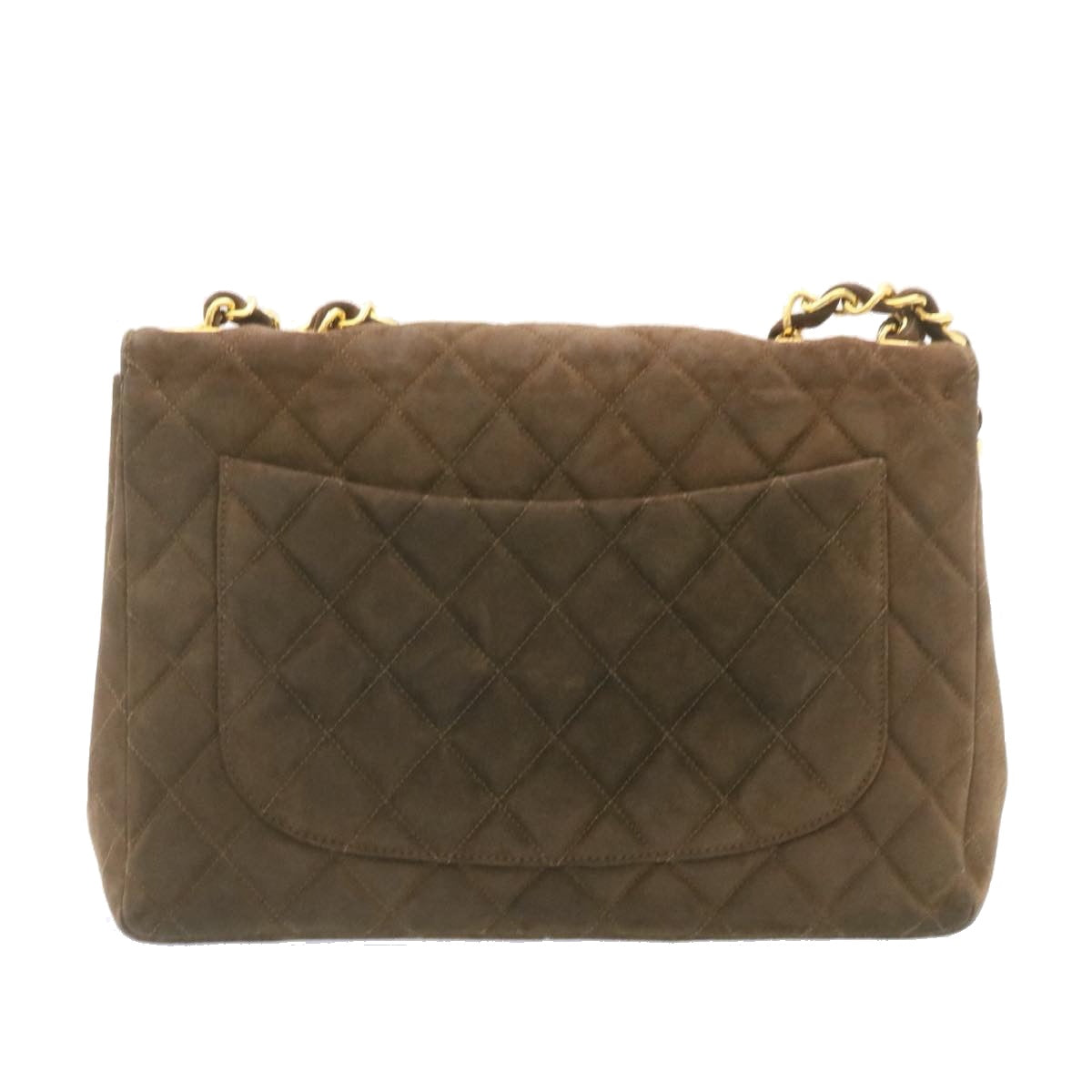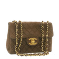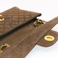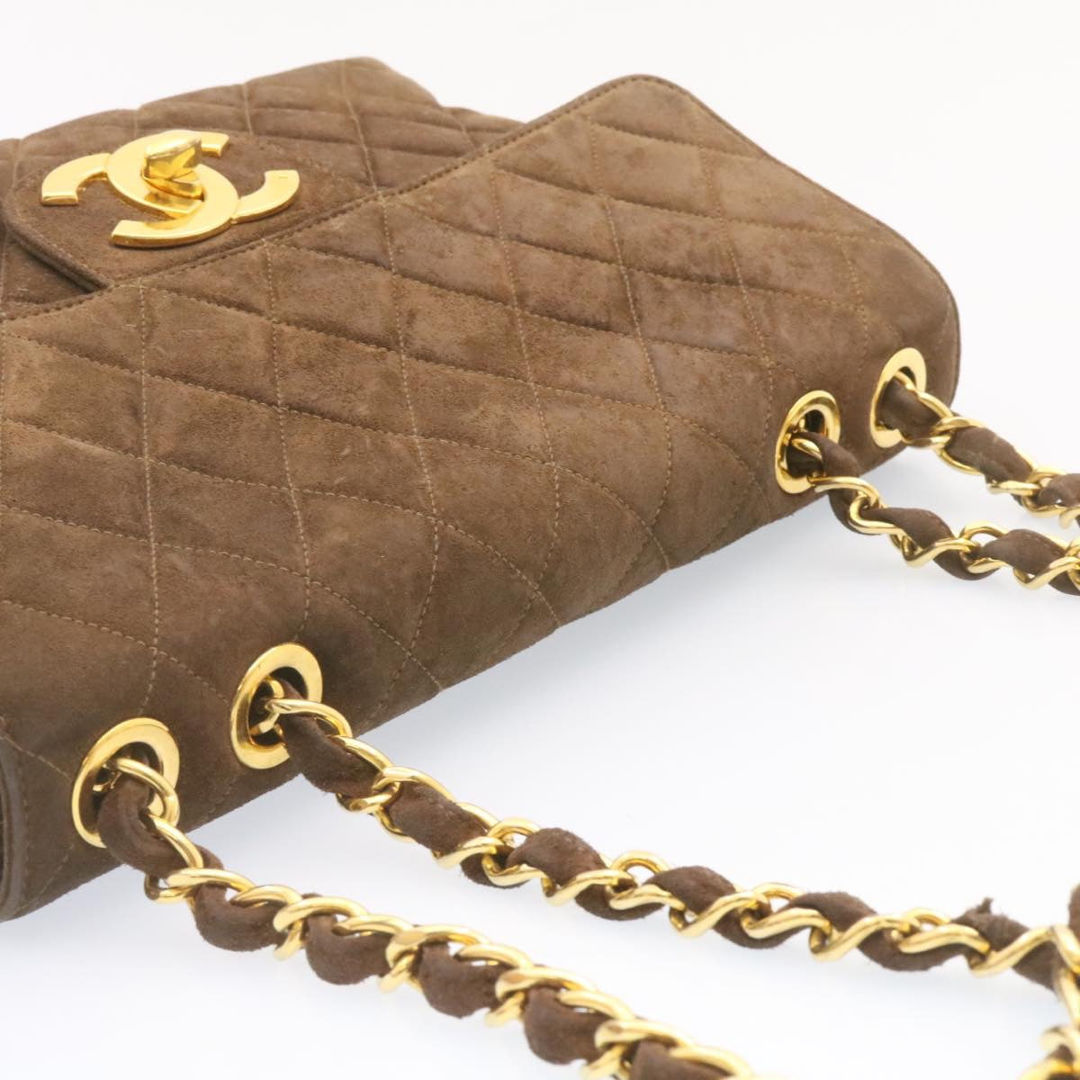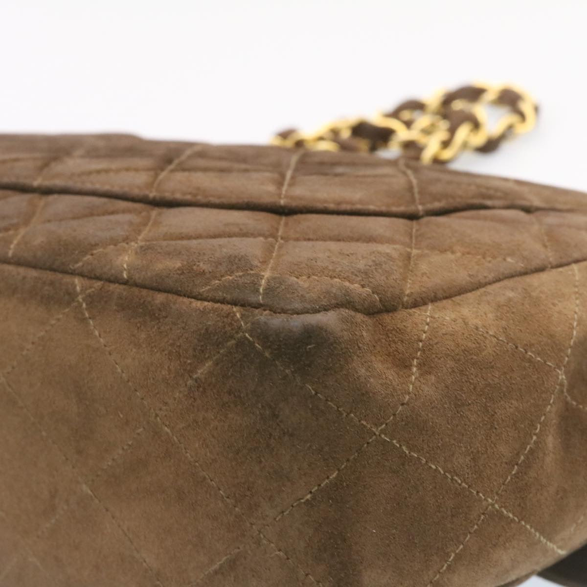 CHANEL Matelasse 30 Double Chain New Shoulder Bag Suede Brown CC Auth ar4582