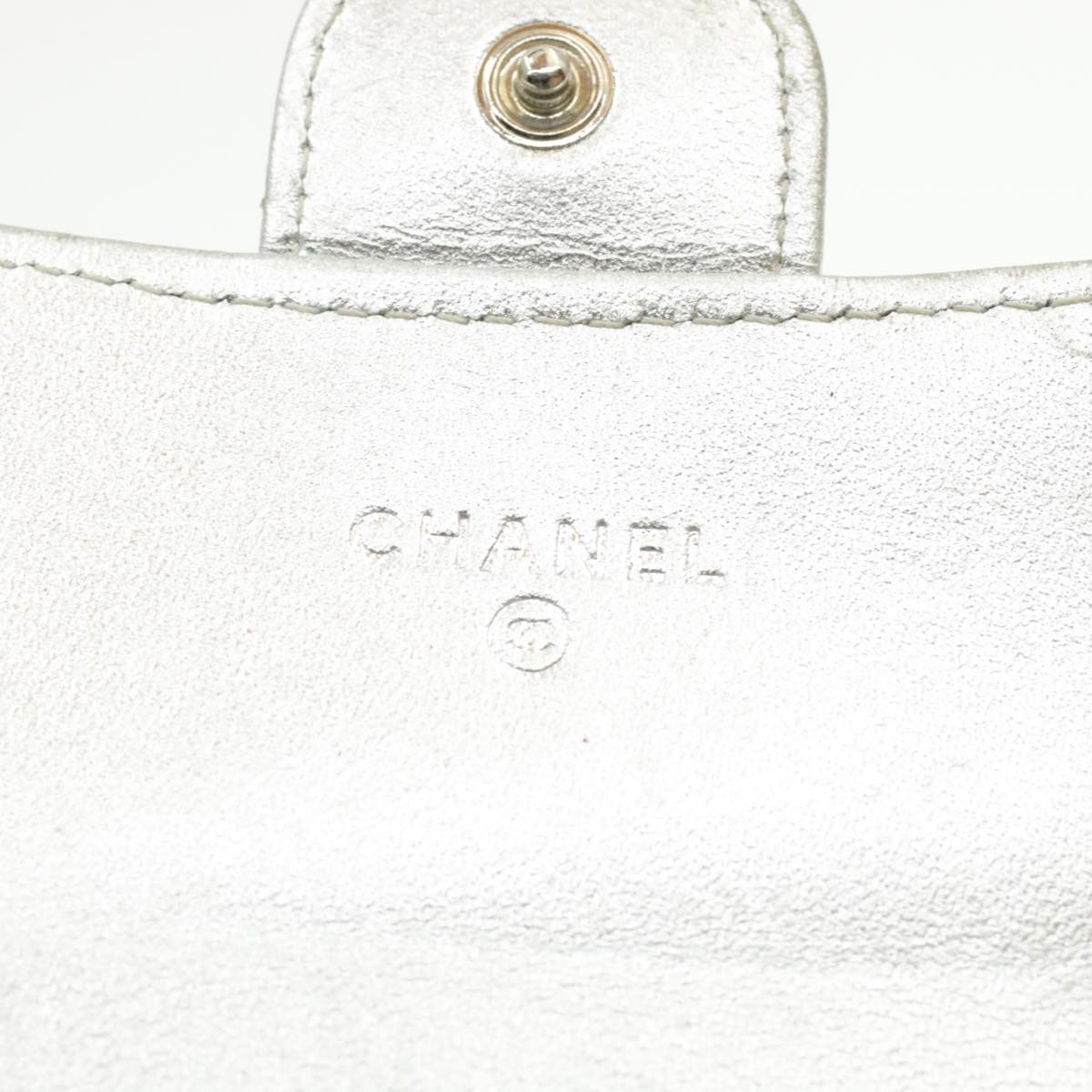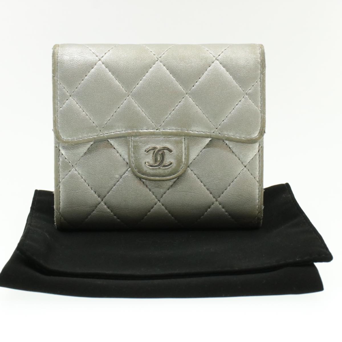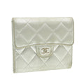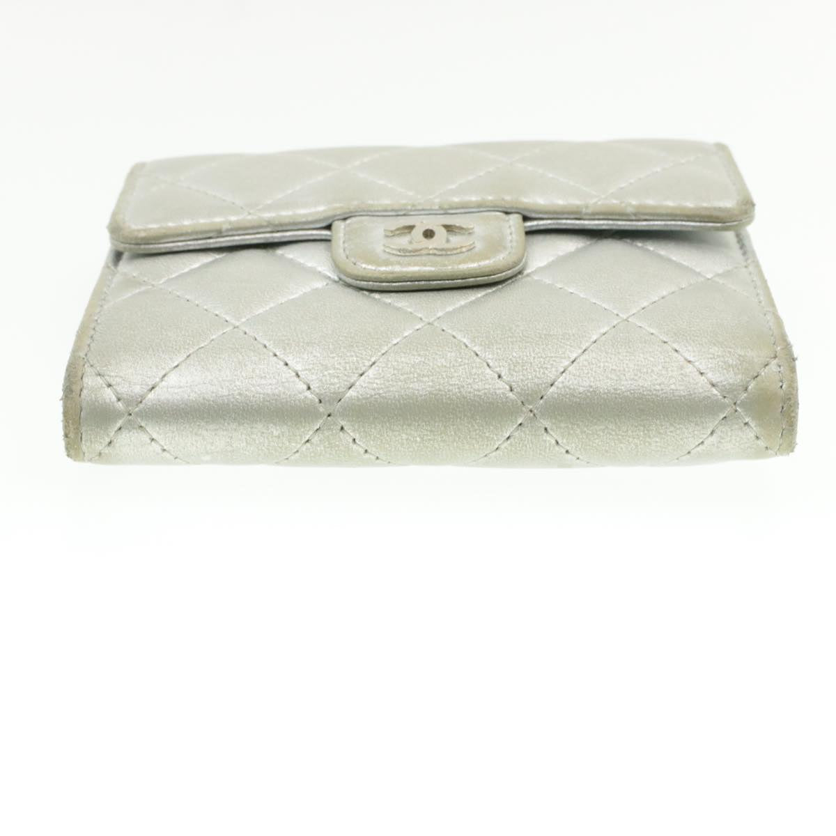 CHANEL Matelasse Bifold Wallet Silver CC Auth cr620