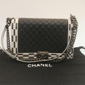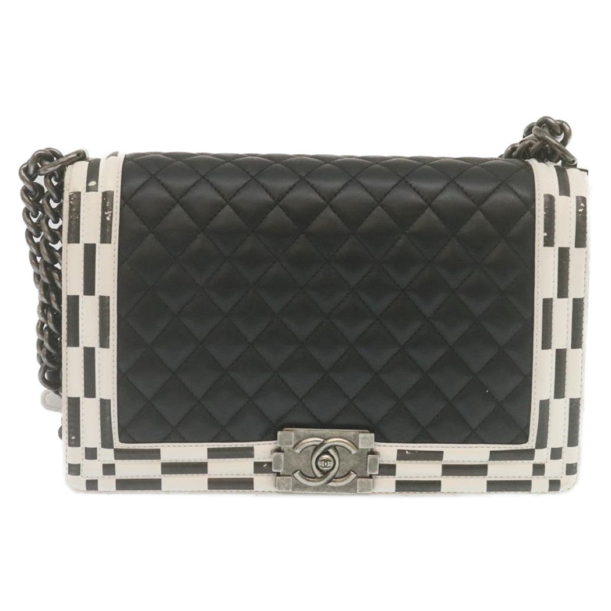 Top Quality Chanel Matelasse Boy Chain Shoulder Bag Lamb Skin Black CC Auth 29190A