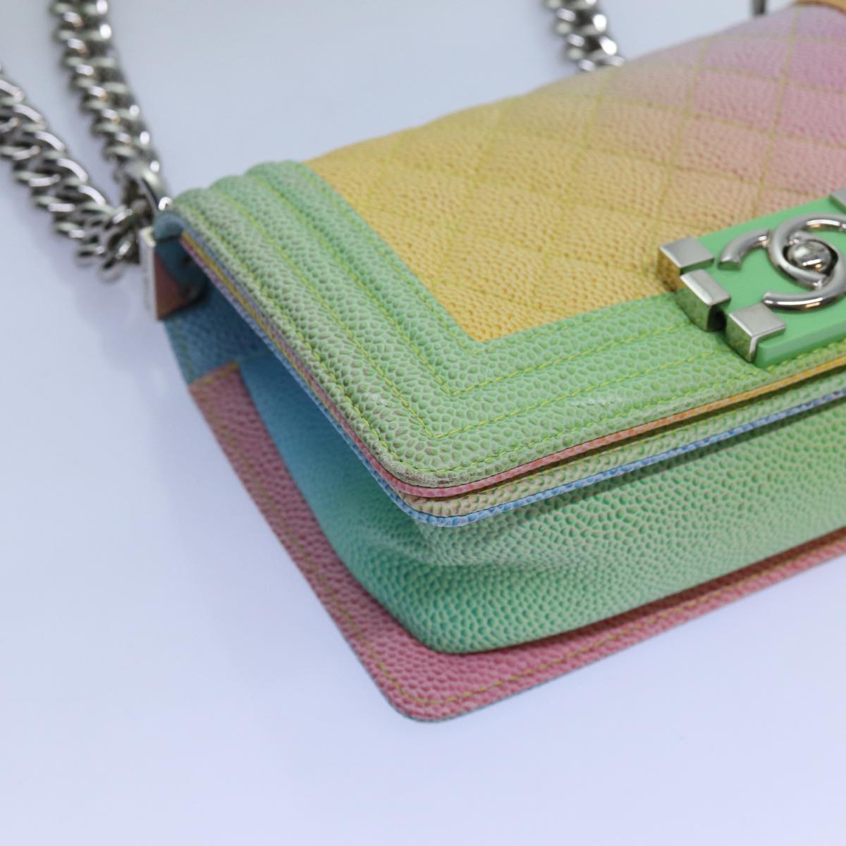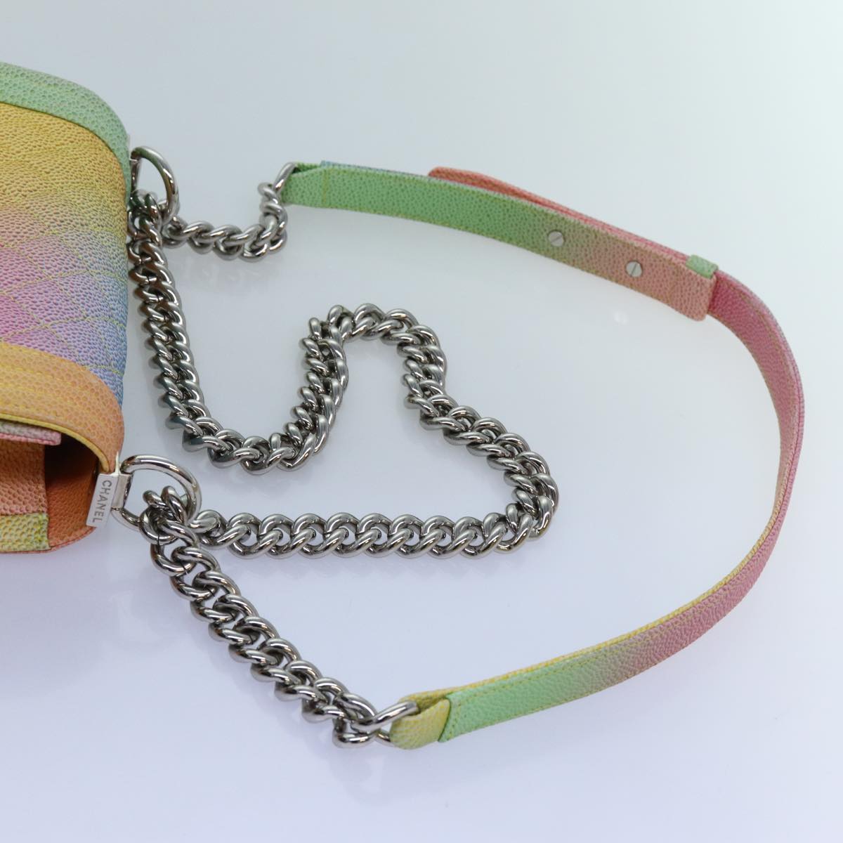 CHANEL Matelasse Boy Chain Shoulder Bag Leather Rainbow CC Auth 71579S