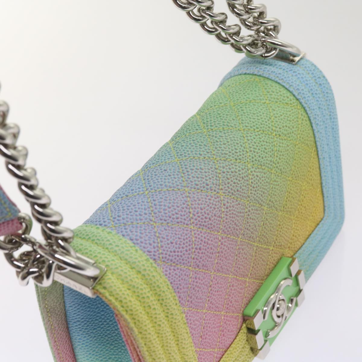 CHANEL Matelasse Boy Shoulder Bag Caviar Skin Multicolor CC Auth 66965S