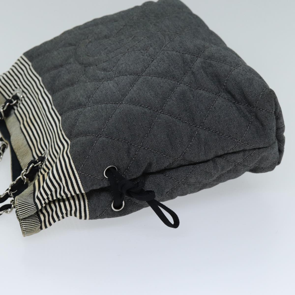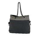CHANEL Matelasse Chain COCO Mark Tote Bag Canvas Gray CC Auth ac2943
