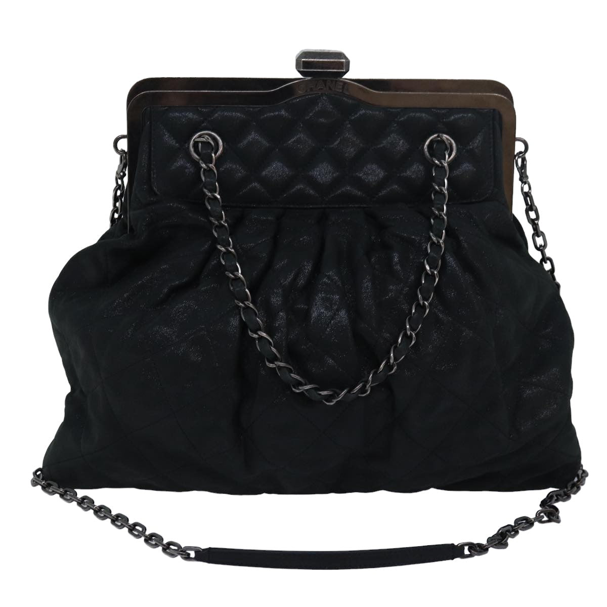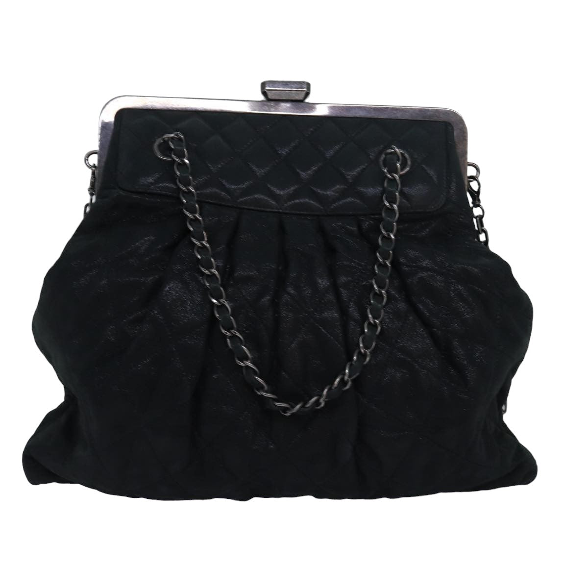 Top Quality Chanel Matelasse Chain Gamaguchi Hand Bag Leather 2way Black CC Auth yk13501