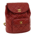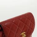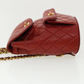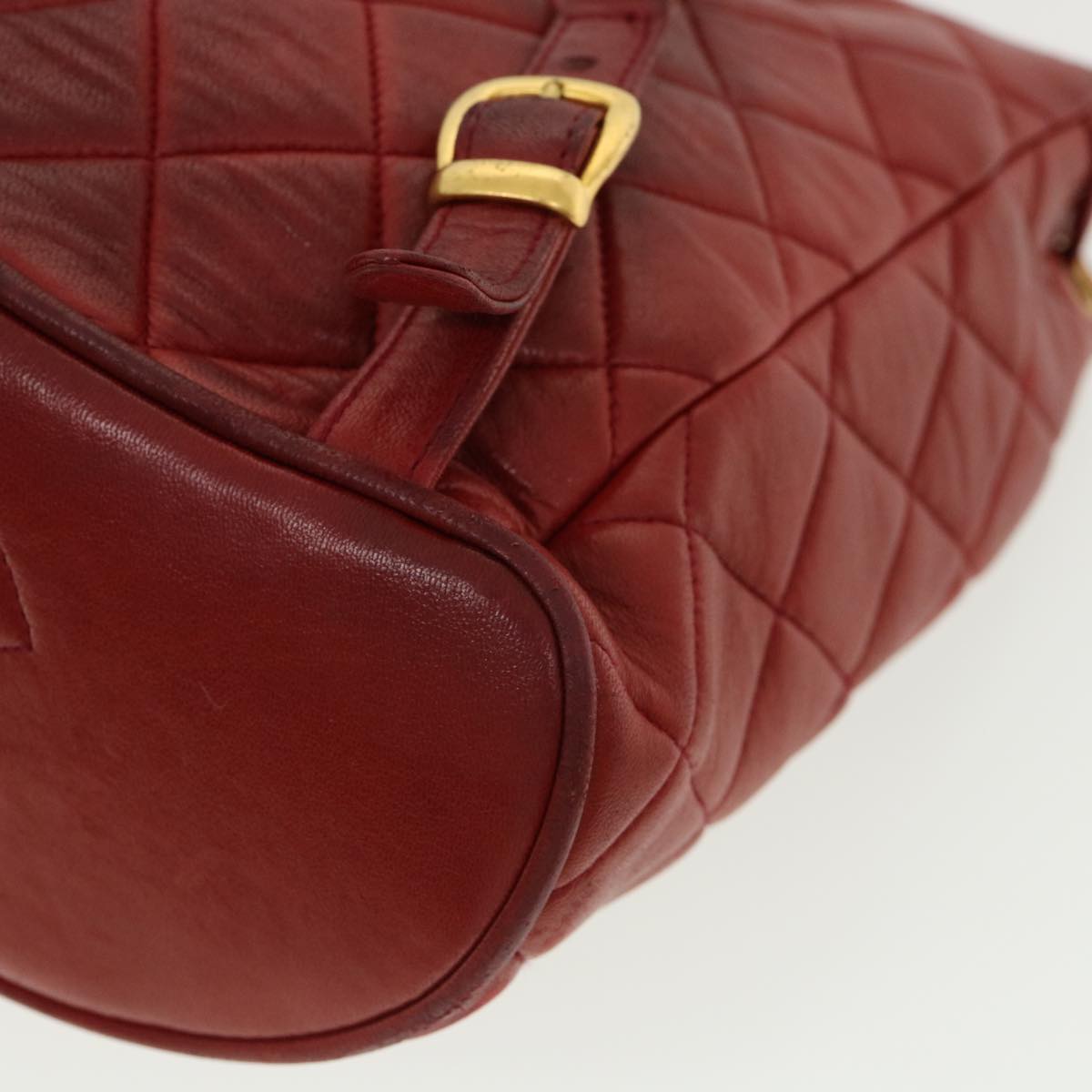 CHANEL Matelasse Chain Hand Bag Lamb Skin Red CC Auth 31892A