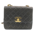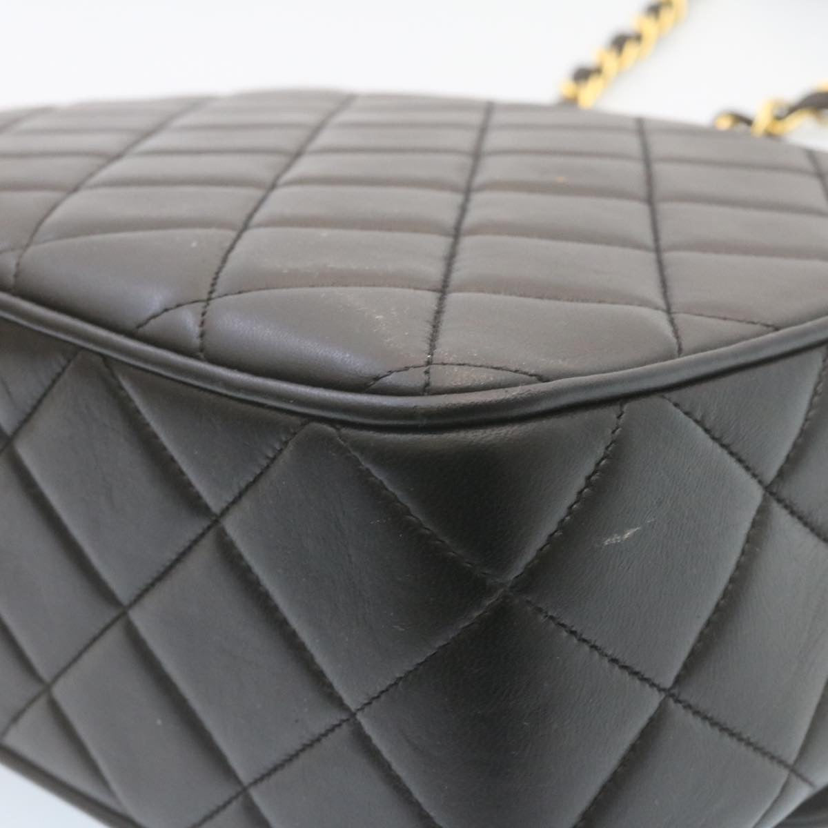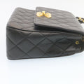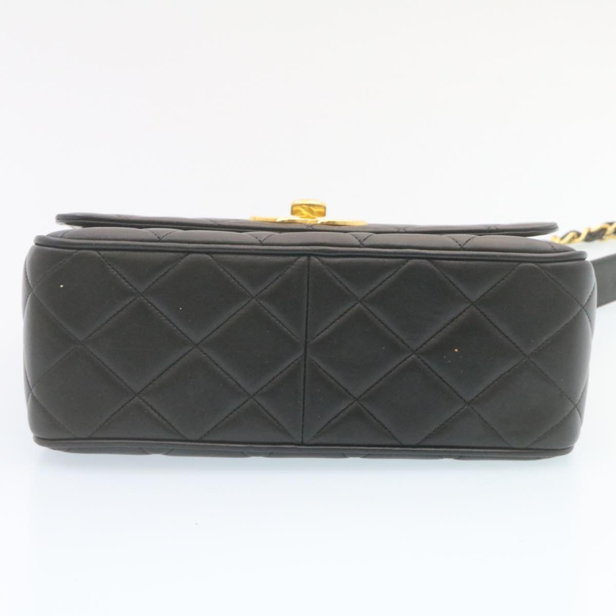 CHANEL Matelasse Chain New Shoulder Bag Lamb Skin Black Gold CC Auth 28632A