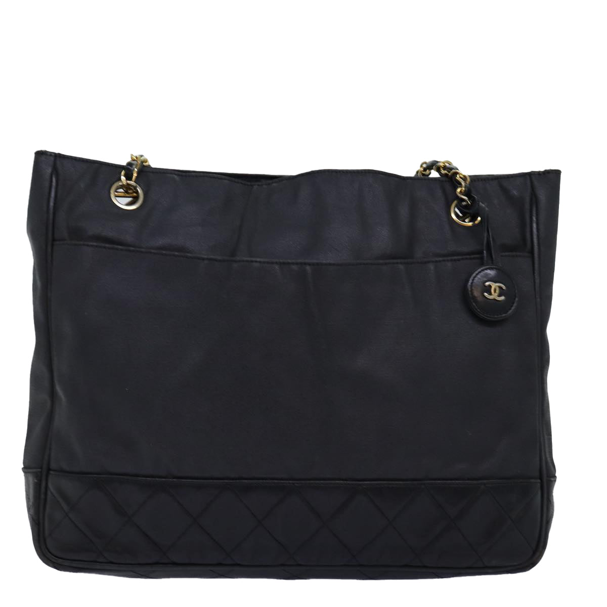 Top Quality Chanel Matelasse Chain Shoulder Bag Canvas Leather Black CC Auth bs14243