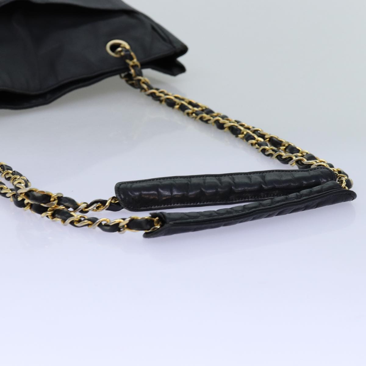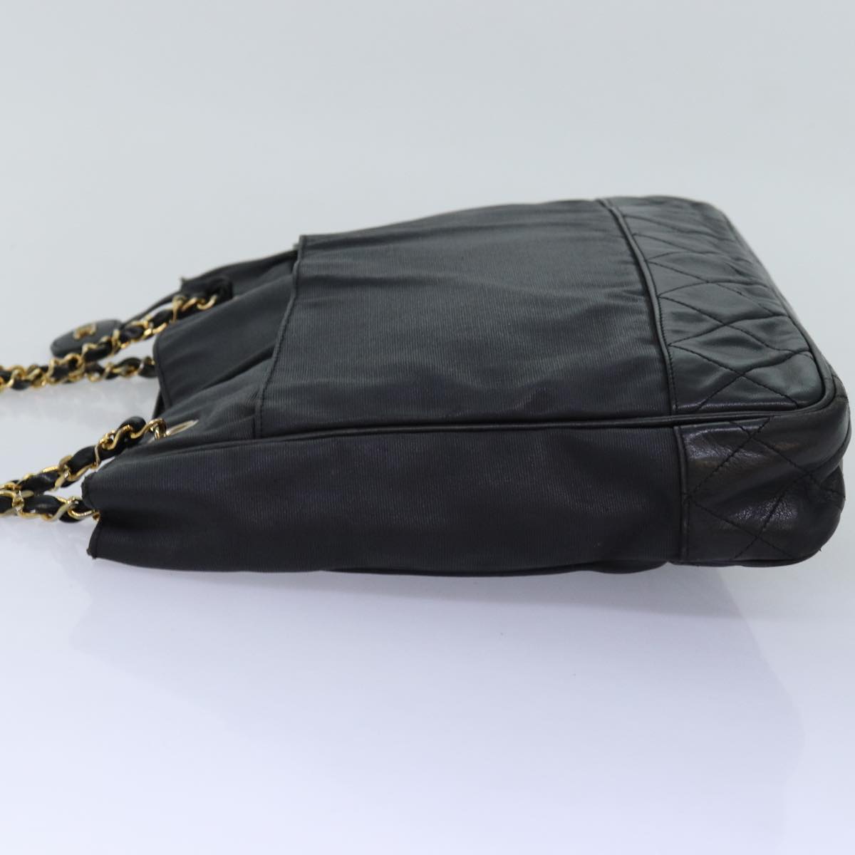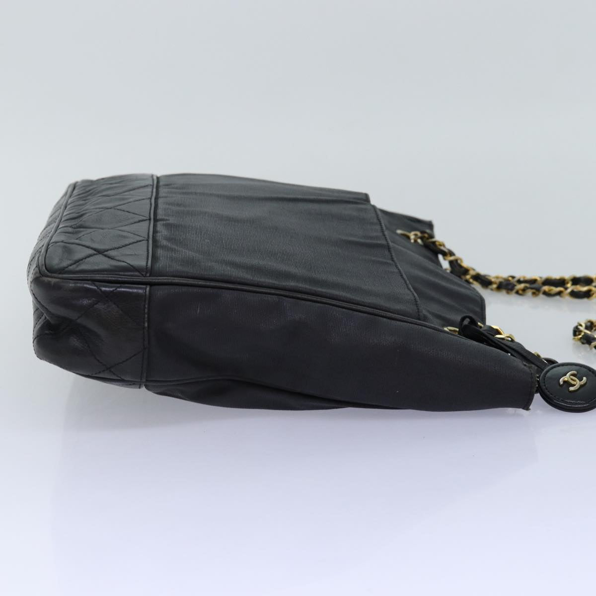 CHANEL Matelasse Chain Shoulder Bag Canvas Leather Black CC Auth bs14243