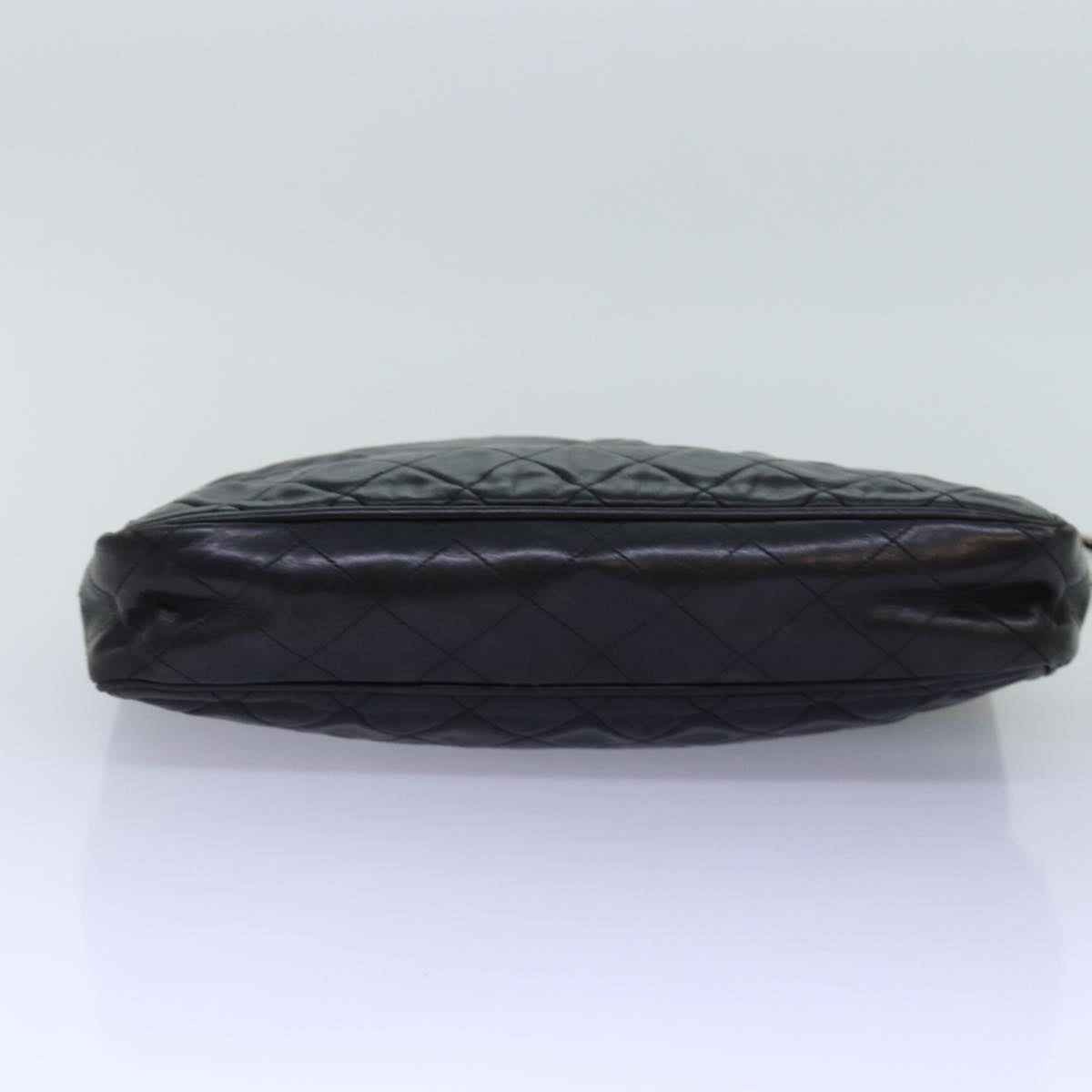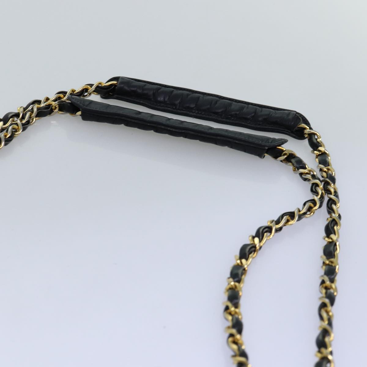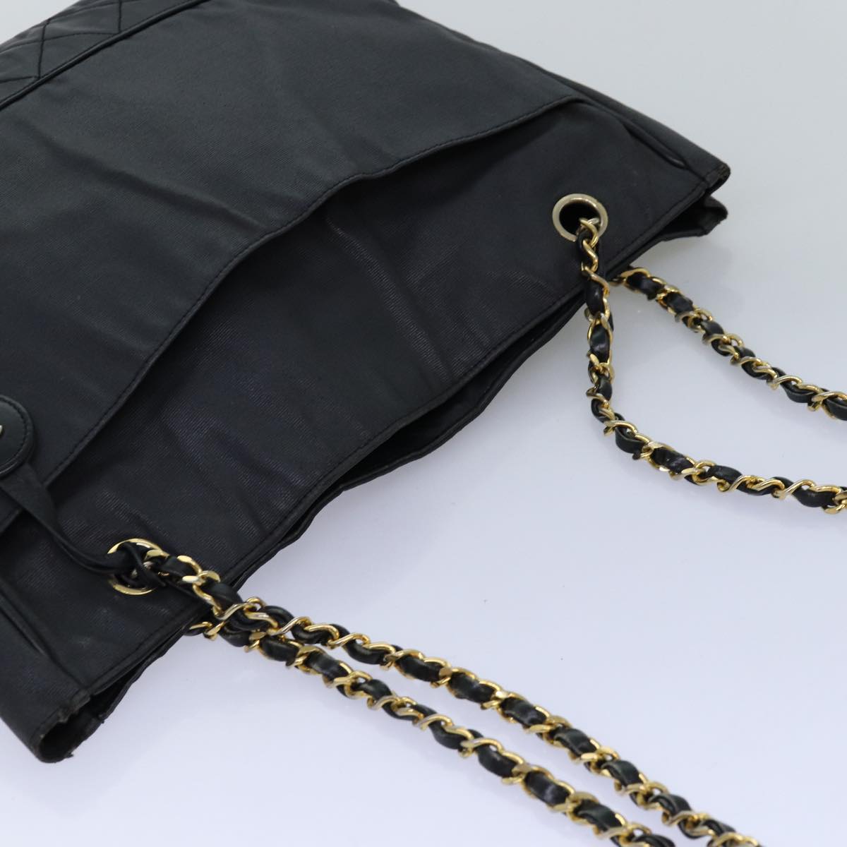 CHANEL Matelasse Chain Shoulder Bag Canvas Leather Black CC Auth bs14243