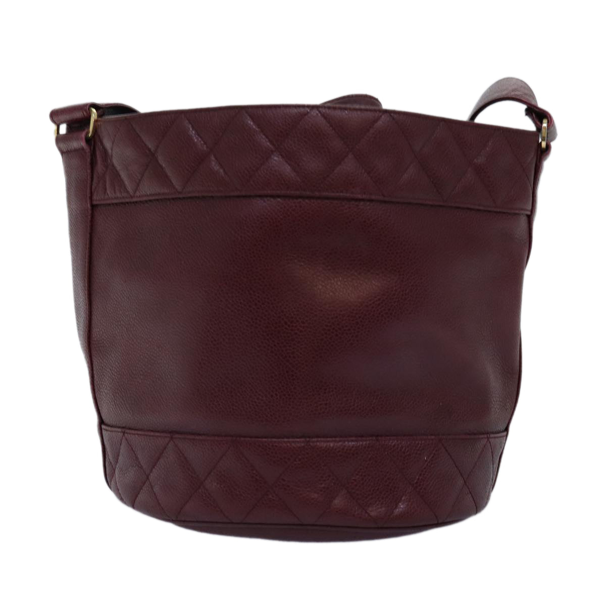 CHANEL Matelasse Chain Shoulder Bag Caviar Skin Red CC Auth bs13246