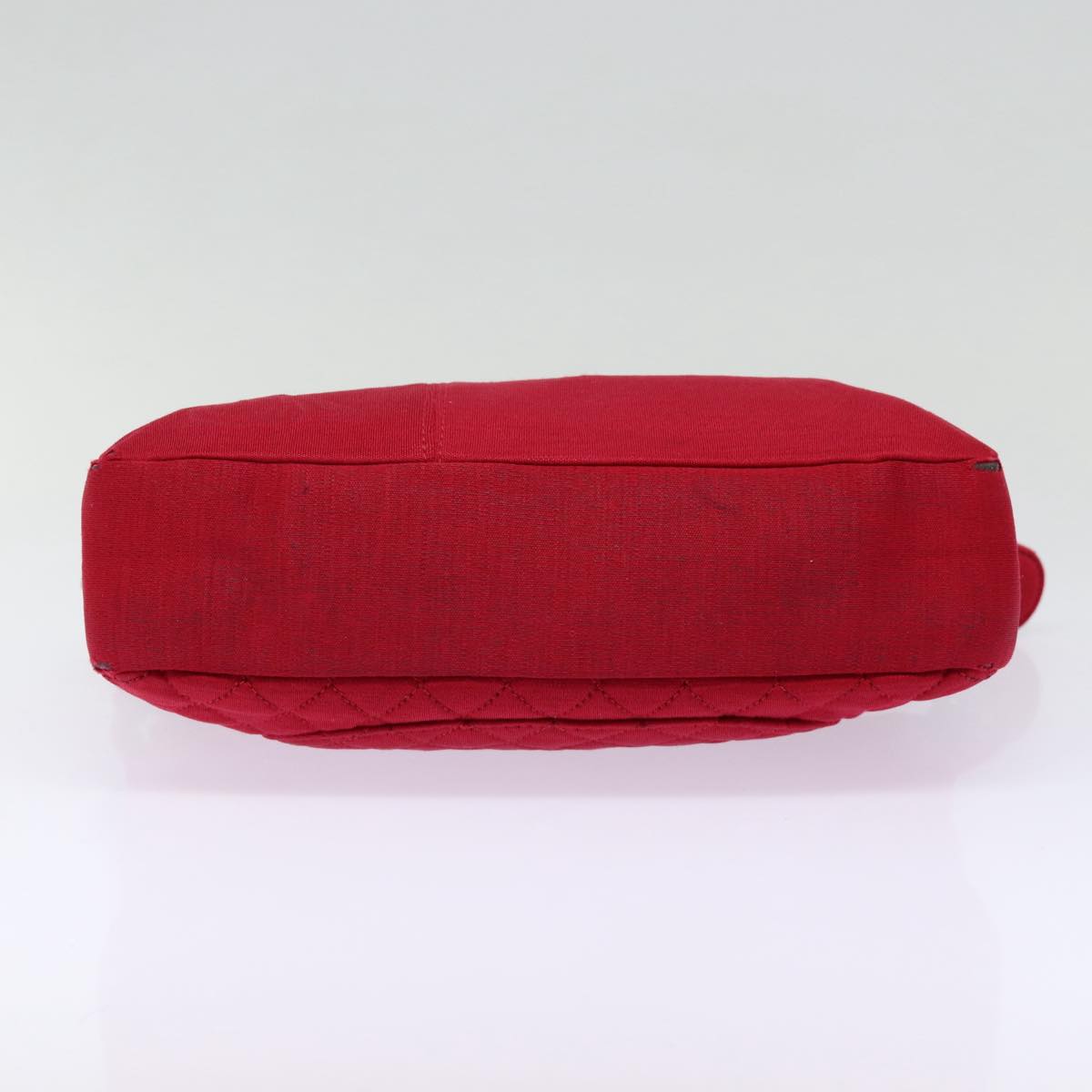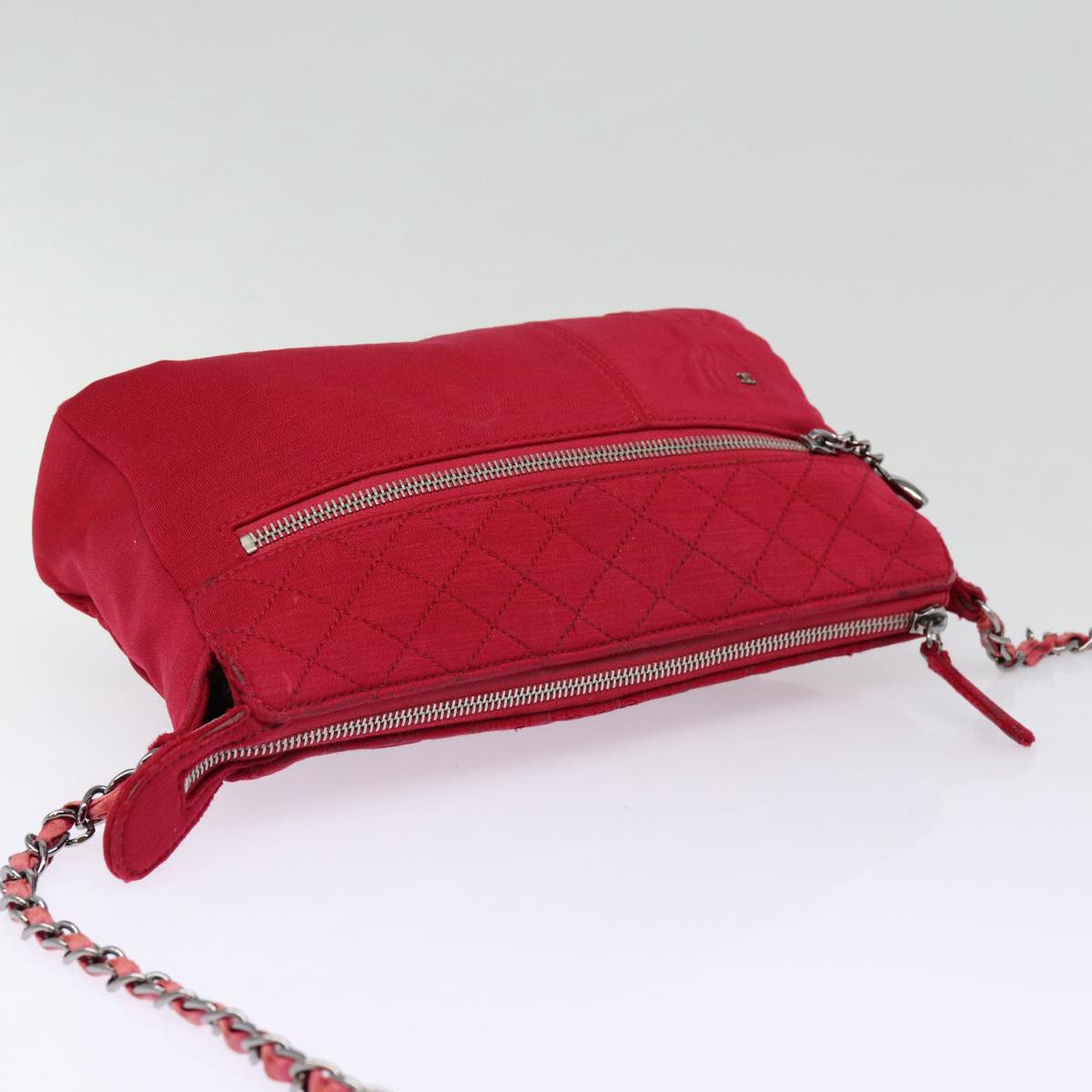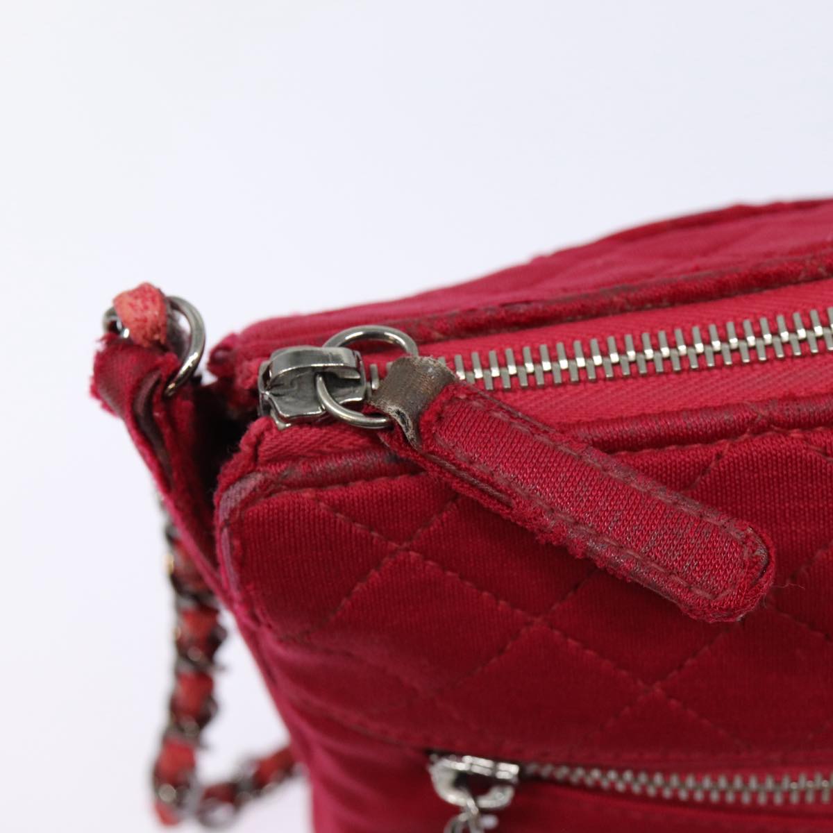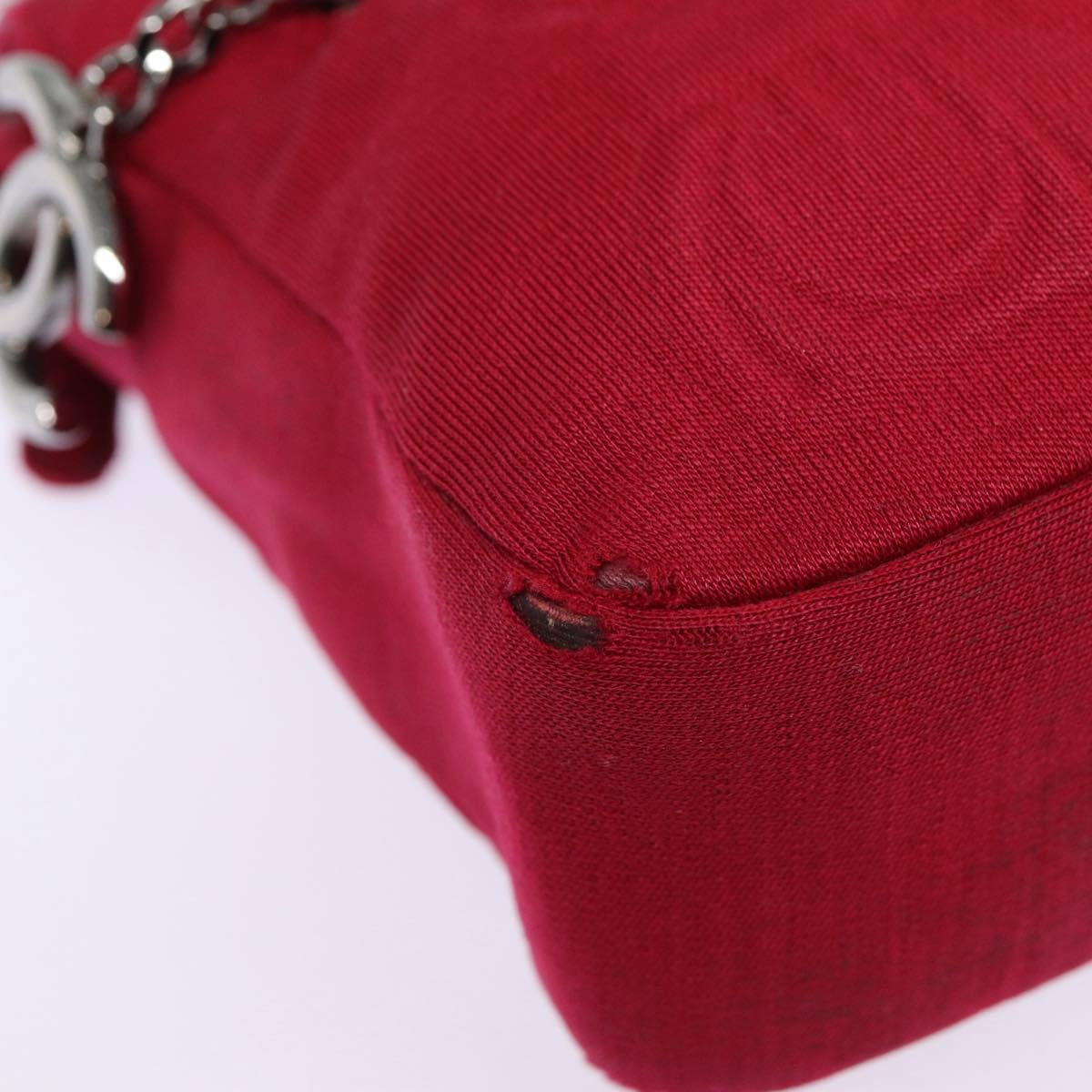 CHANEL Matelasse Chain Shoulder Bag Cotton Red Silver CC Auth bs17224