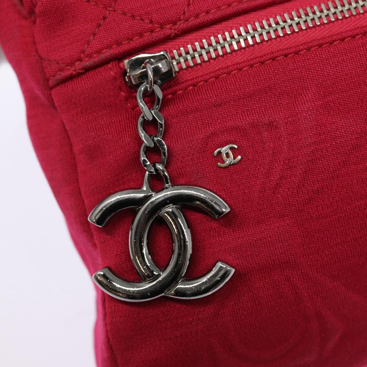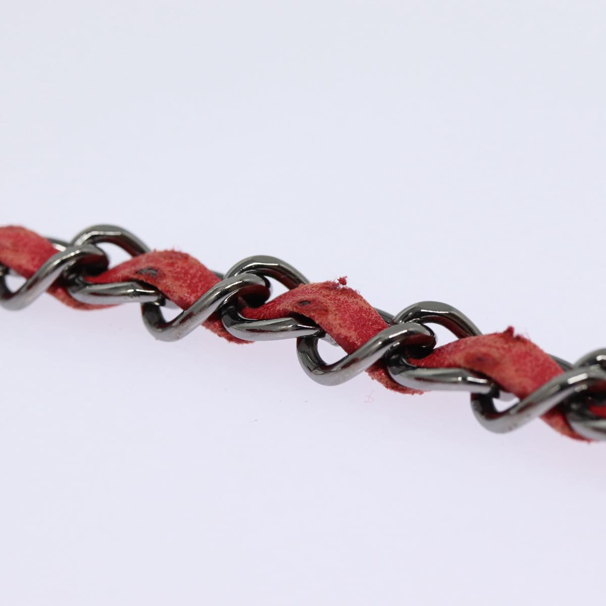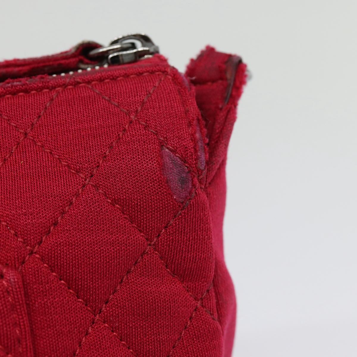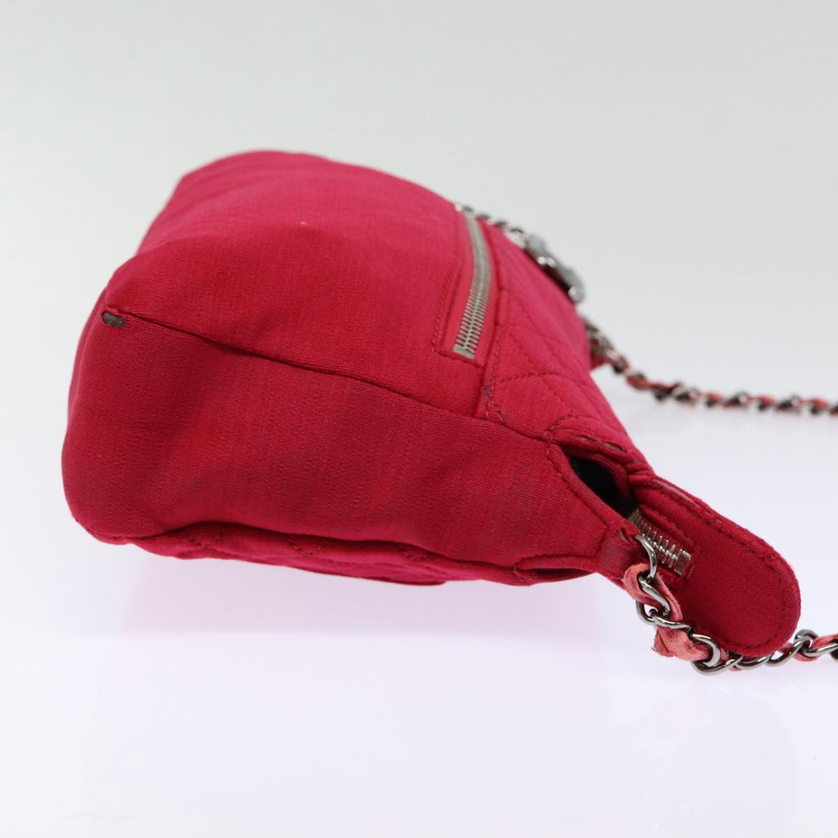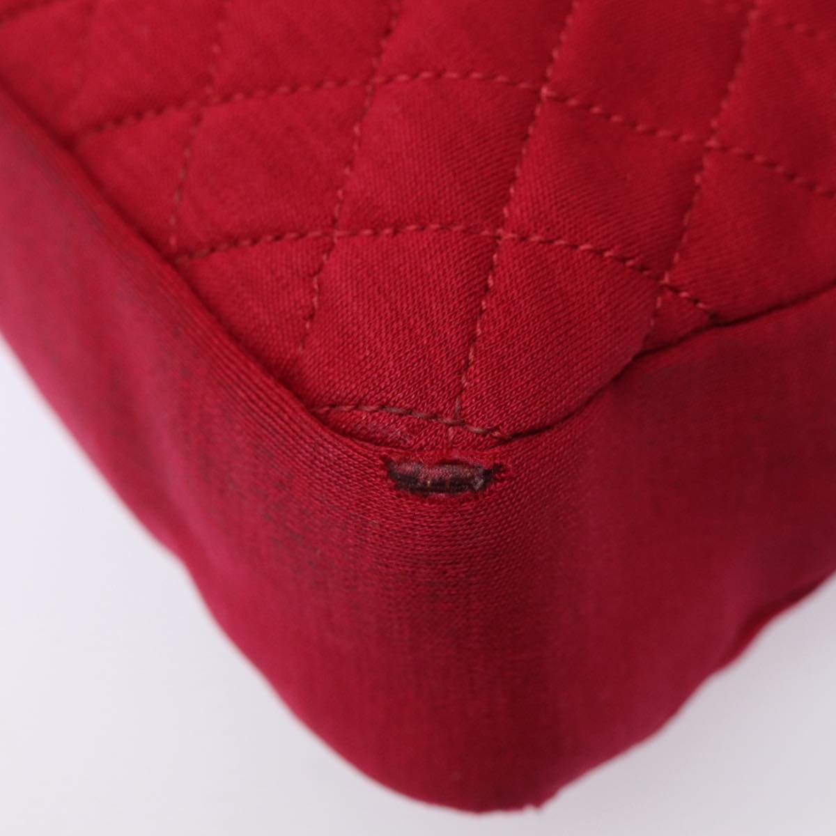 CHANEL Matelasse Chain Shoulder Bag Cotton Red Silver CC Auth bs17224