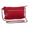 Top Quality Chanel Matelasse Chain Shoulder Bag Cotton Red Silver CC Auth bs17224