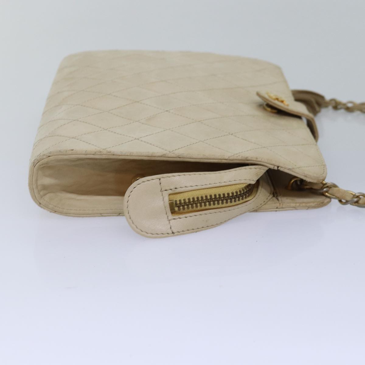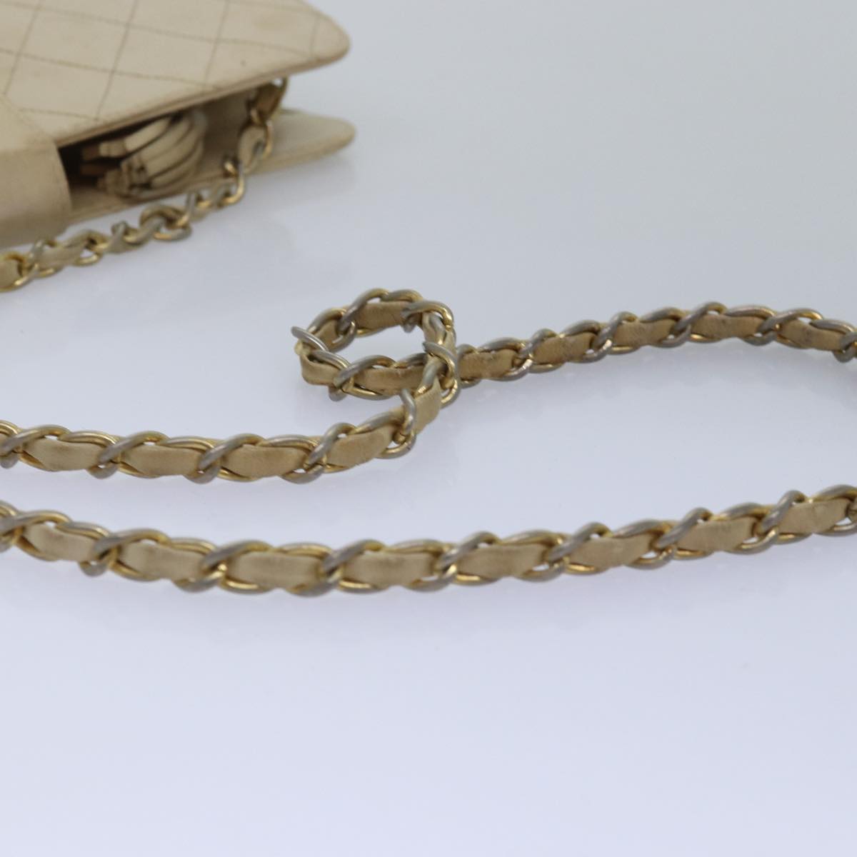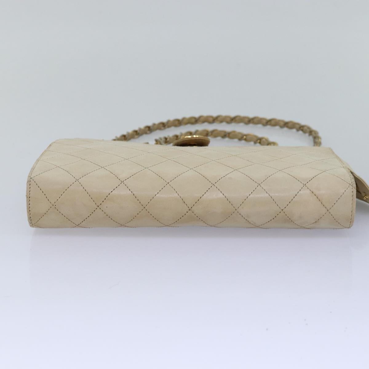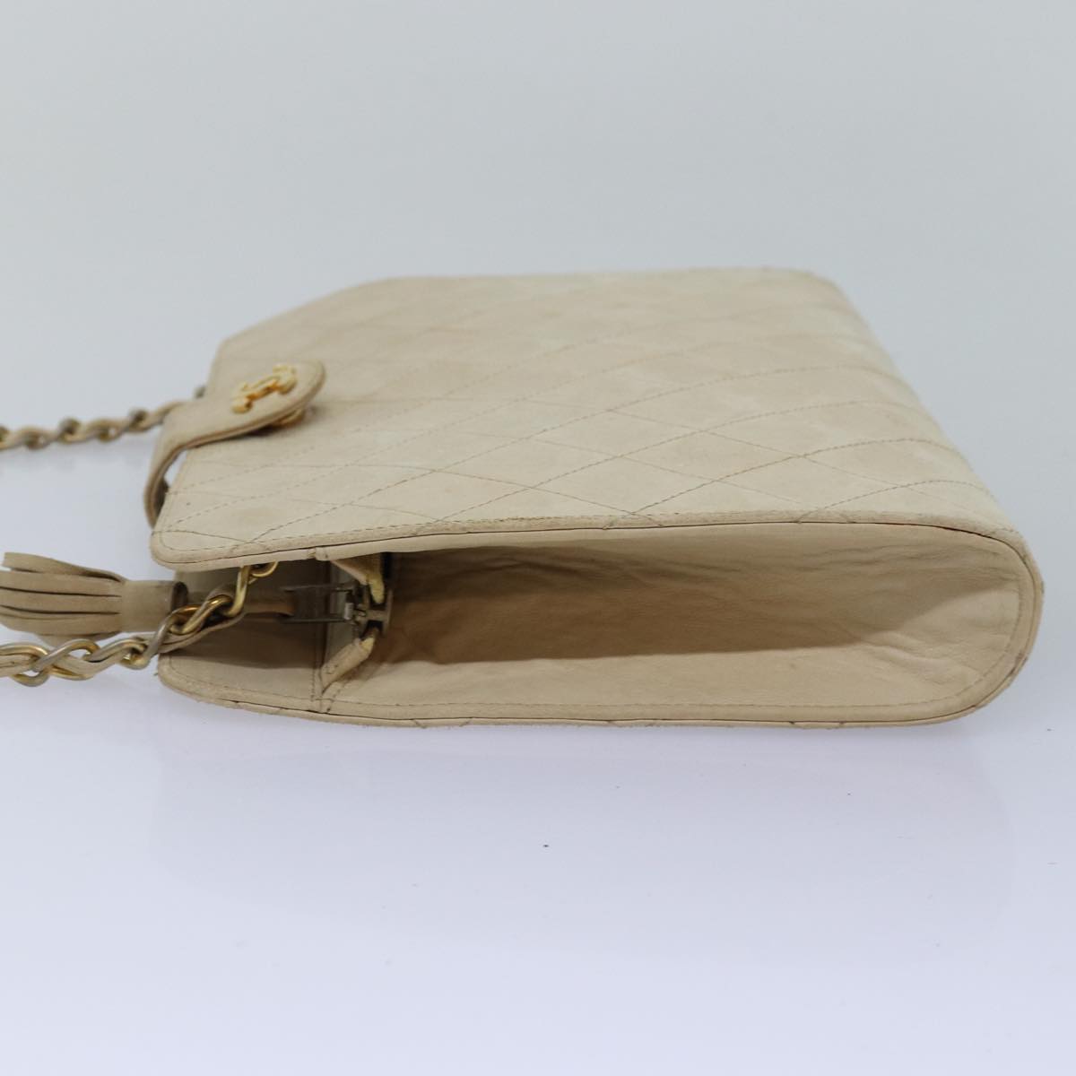 CHANEL Matelasse Chain Shoulder Bag Lamb Skin Beige CC Auth bs14983