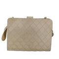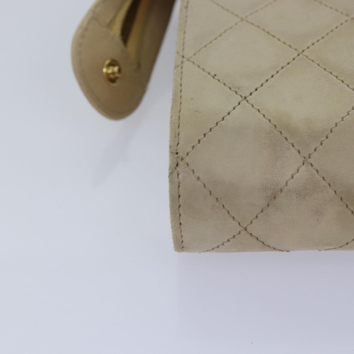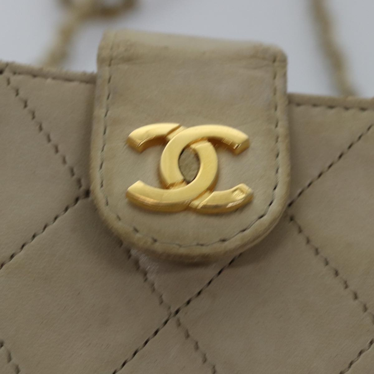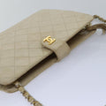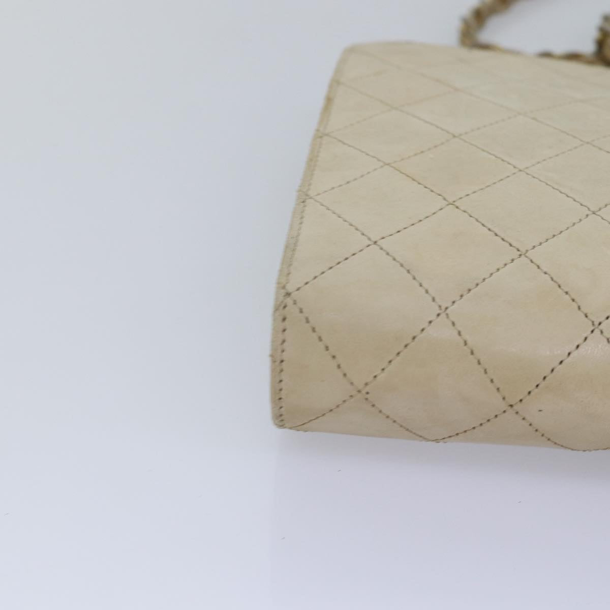 CHANEL Matelasse Chain Shoulder Bag Lamb Skin Beige CC Auth bs14983