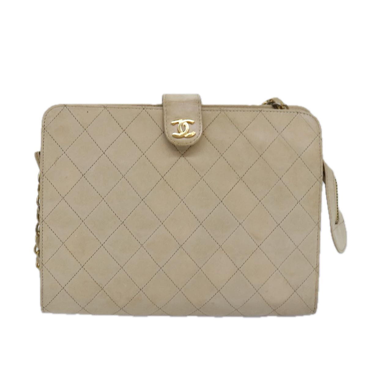 Top Quality Chanel Matelasse Chain Shoulder Bag Lamb Skin Beige CC Auth bs14983