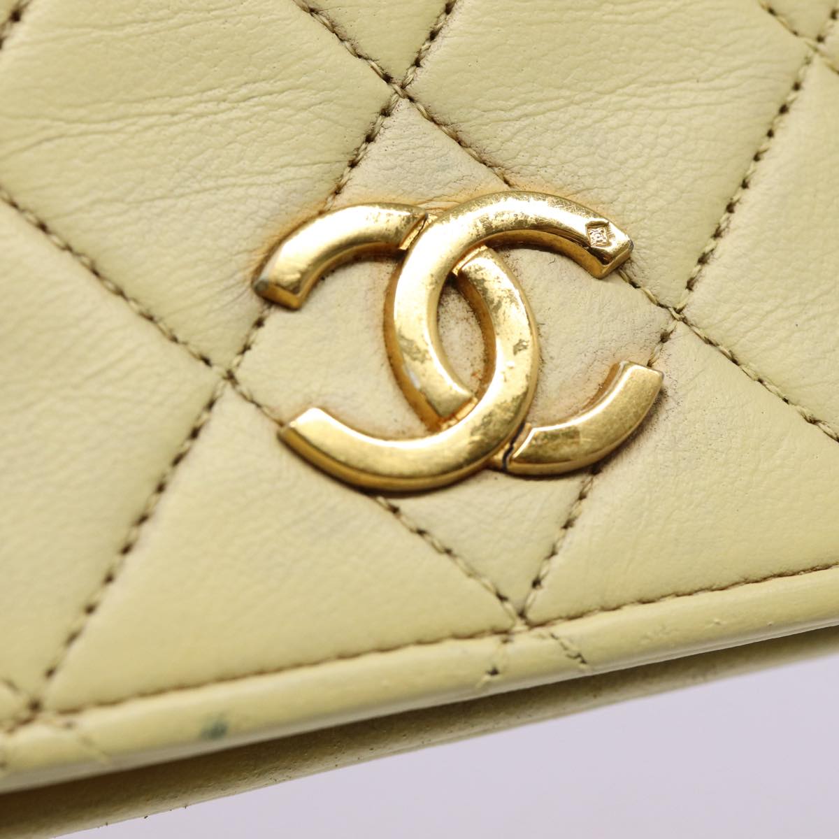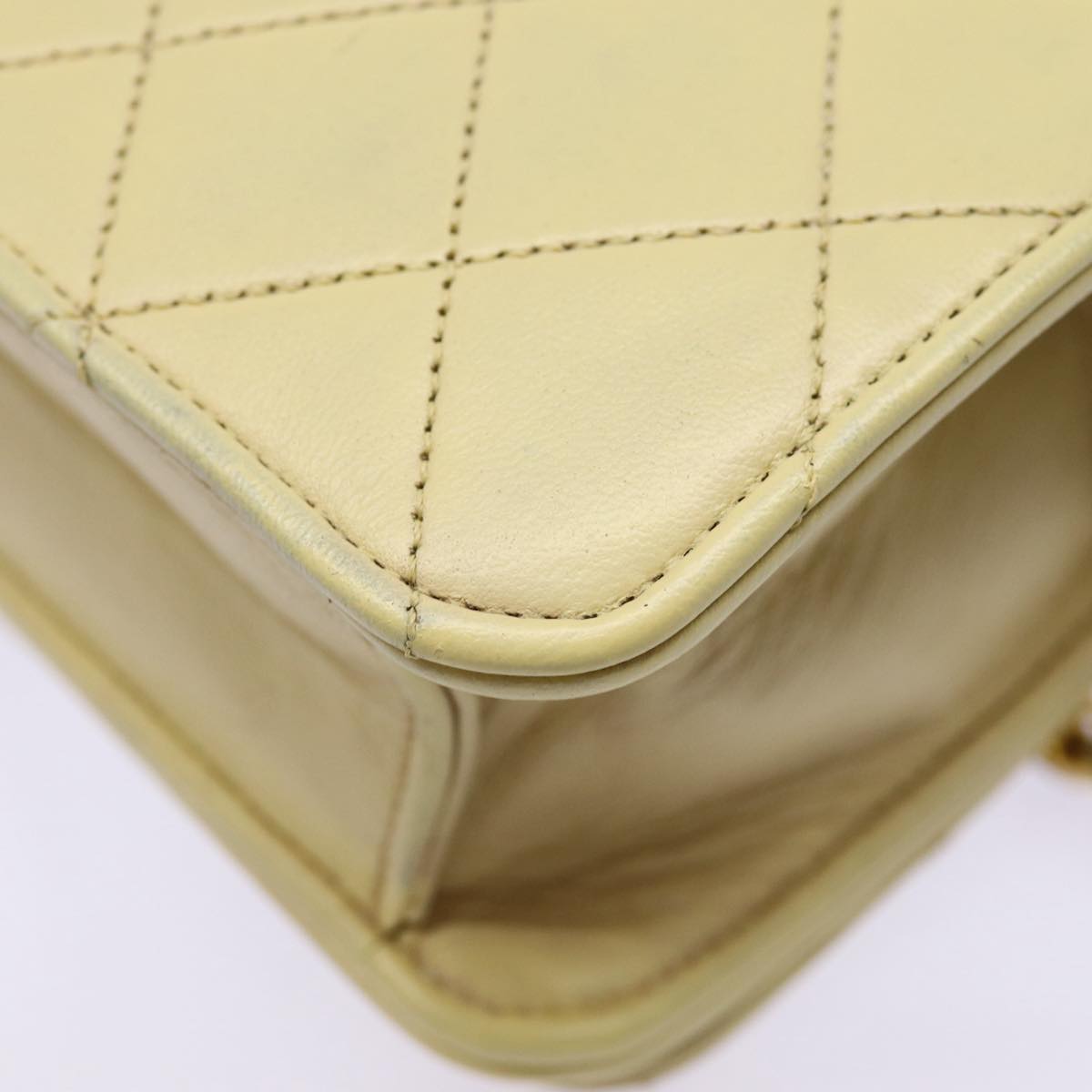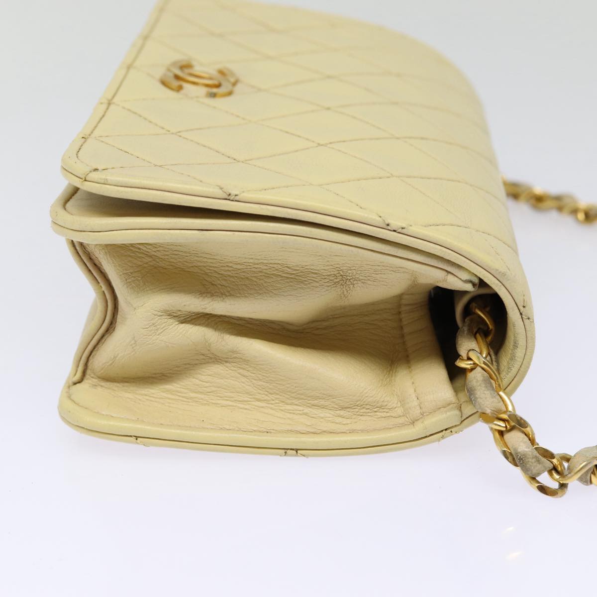 CHANEL Matelasse Chain Shoulder Bag Lamb Skin Beige Gold CC Auth bs17432
