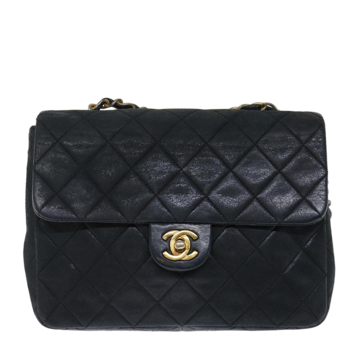 CHANEL Matelasse Chain Shoulder Bag Lamb Skin Black CC Auth 71178A