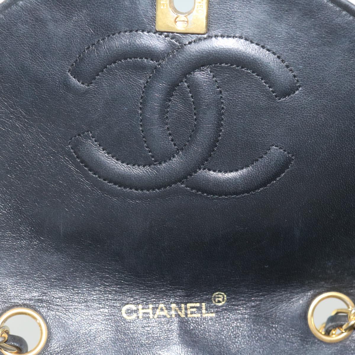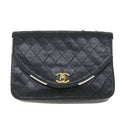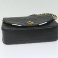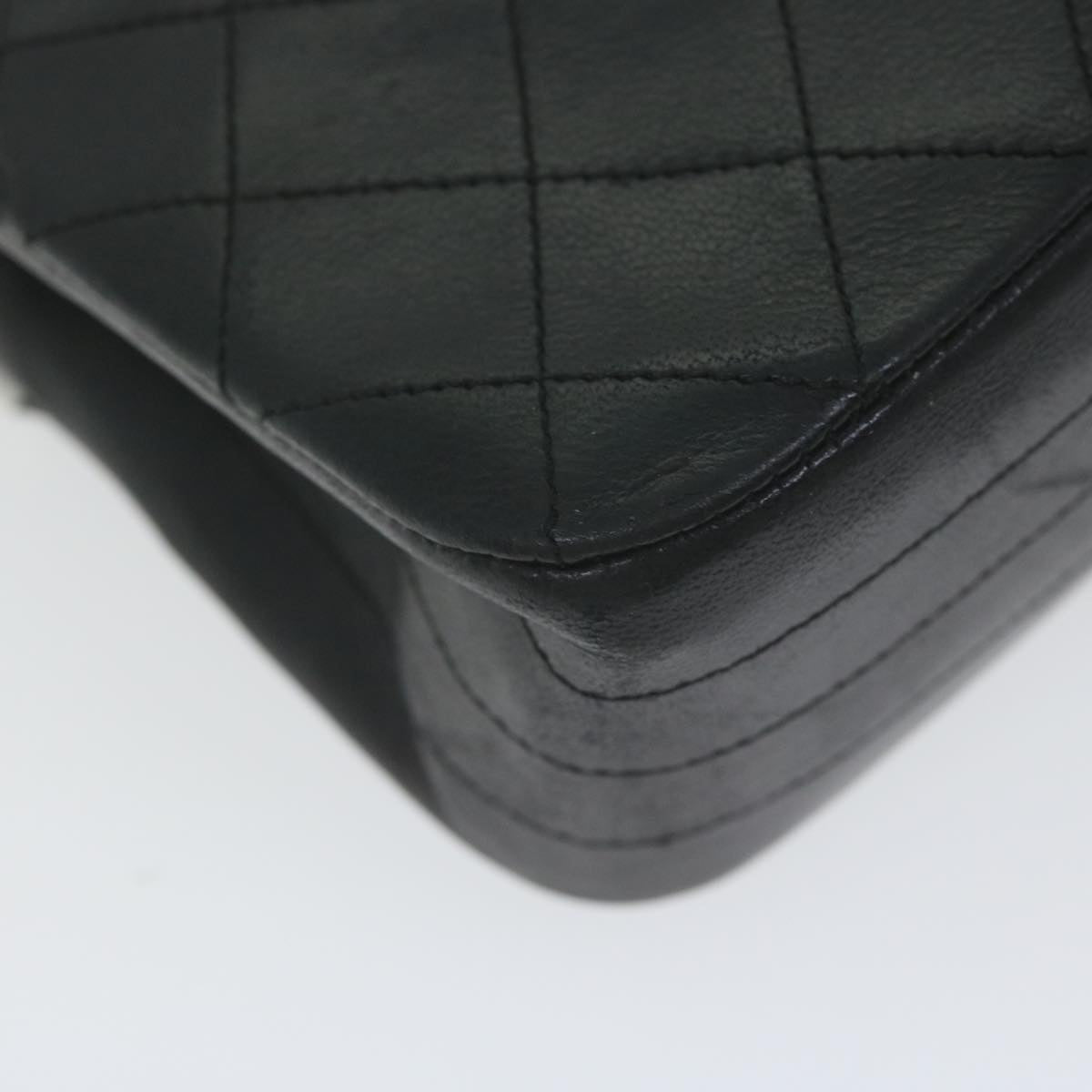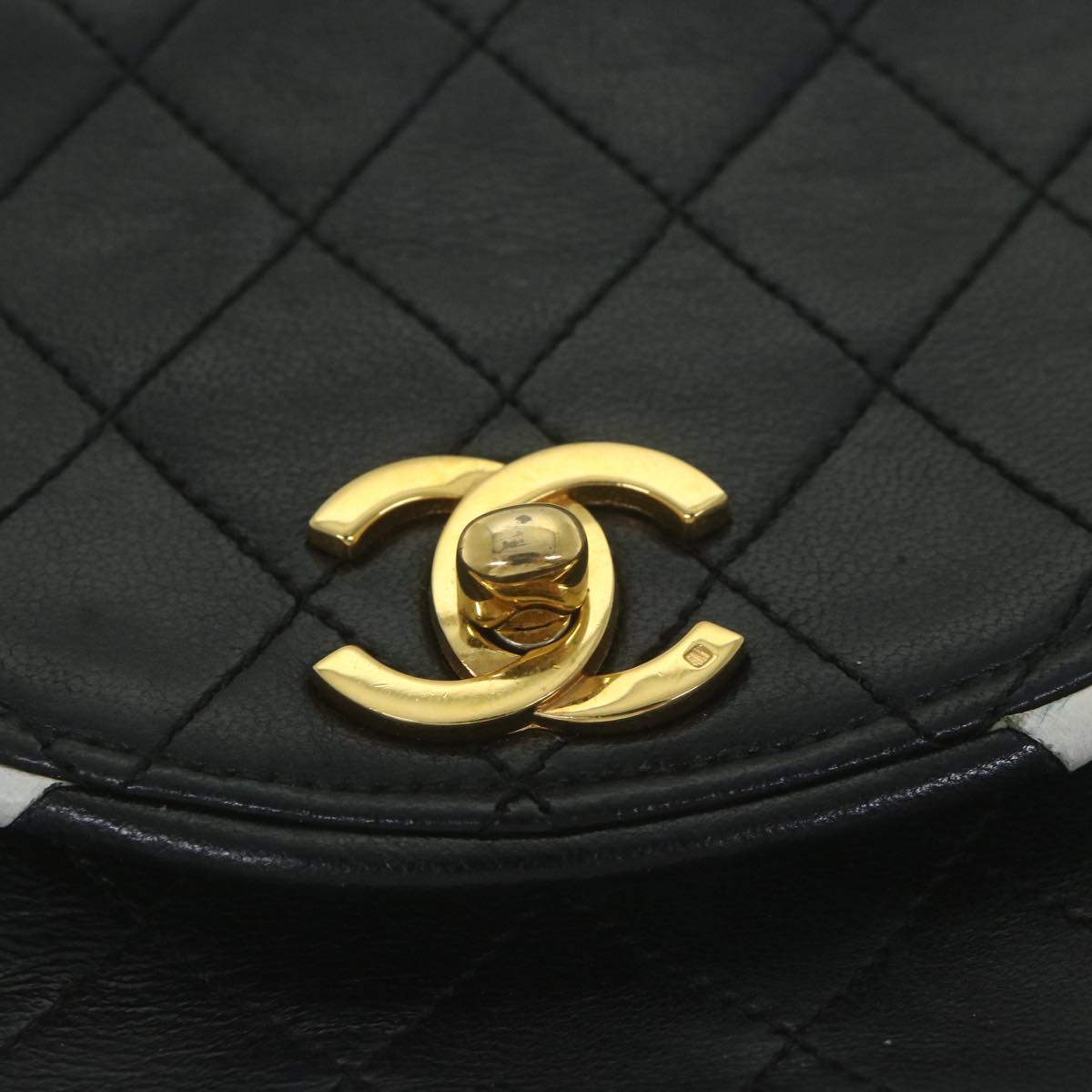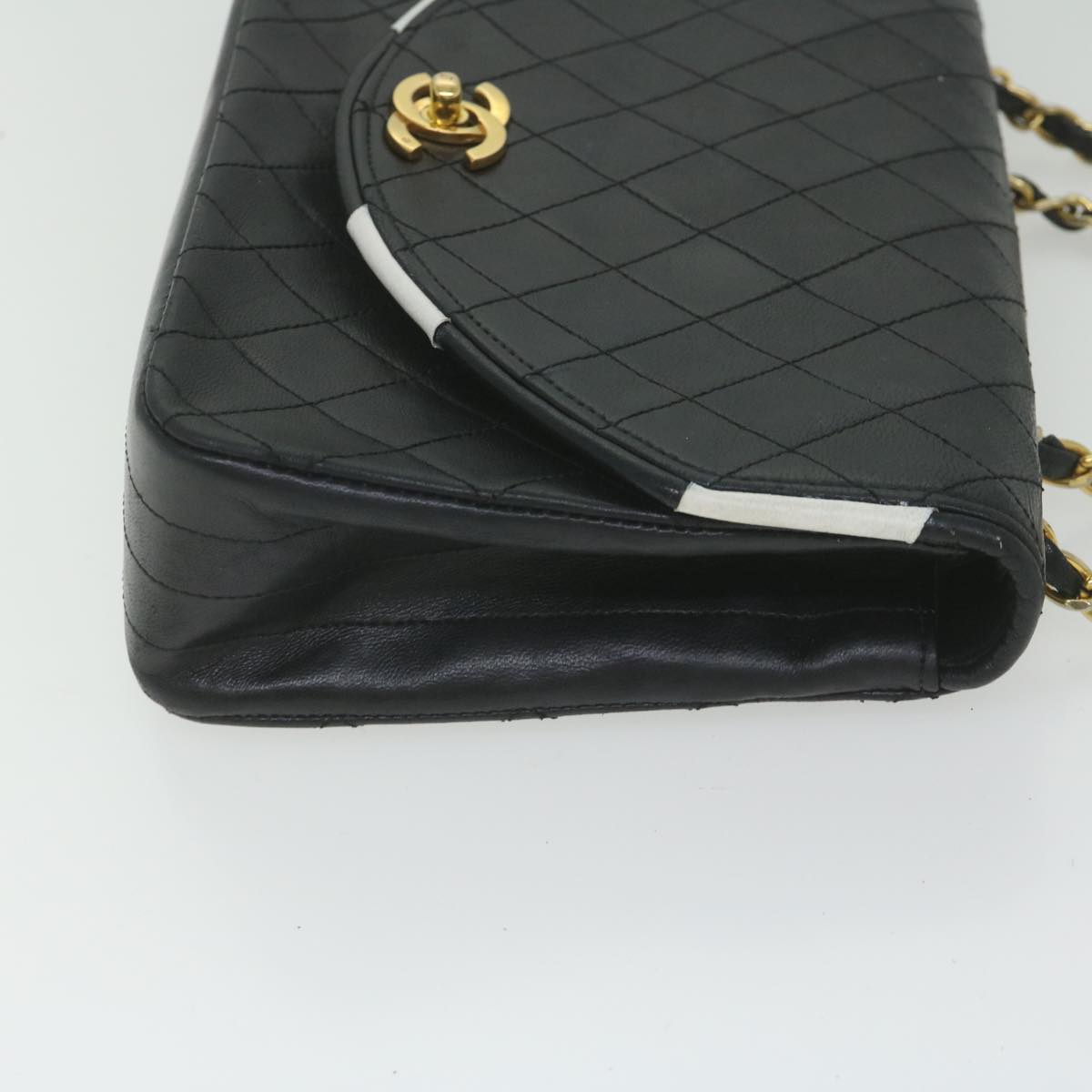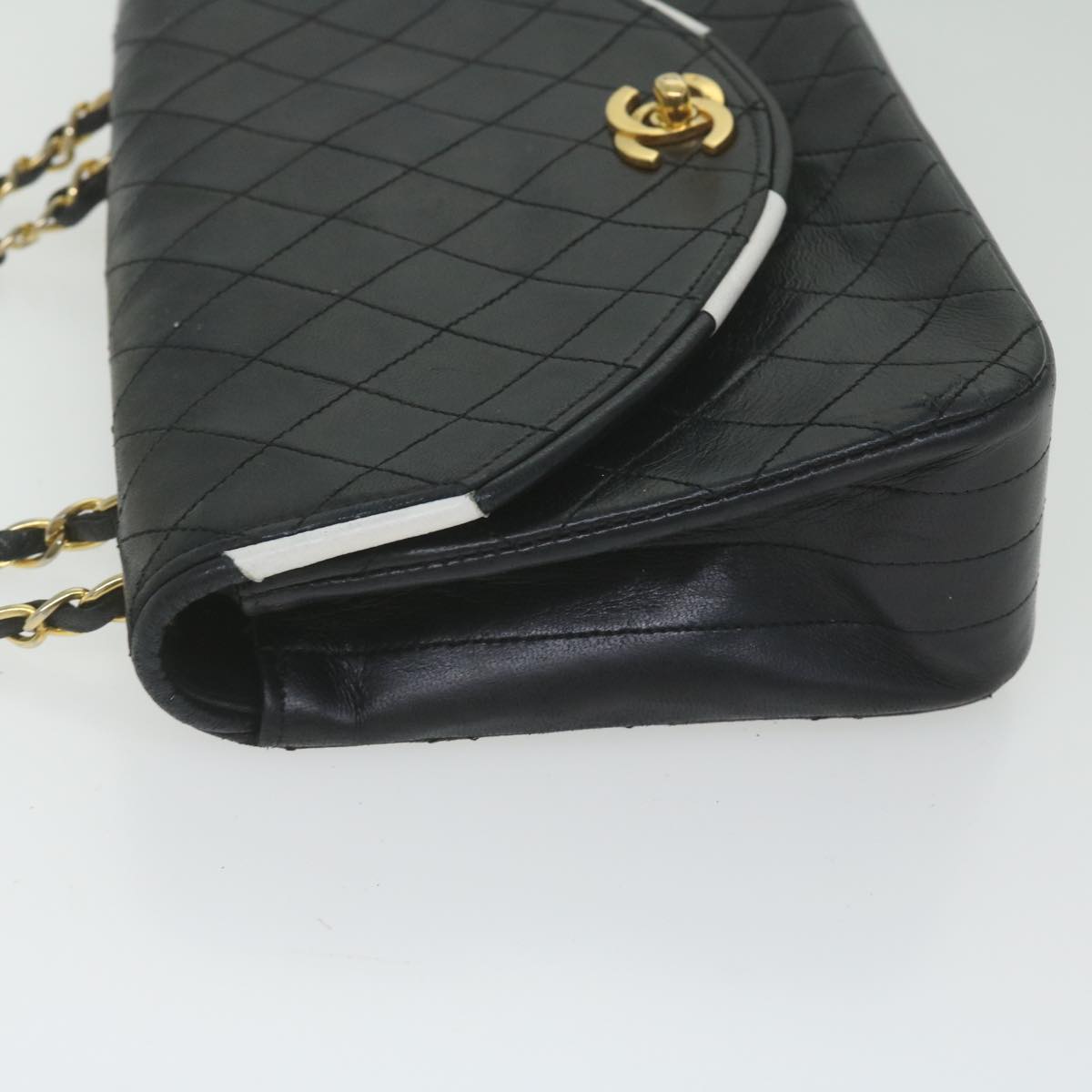 CHANEL Matelasse Chain Shoulder Bag Lamb Skin Black White CC Auth bs10325