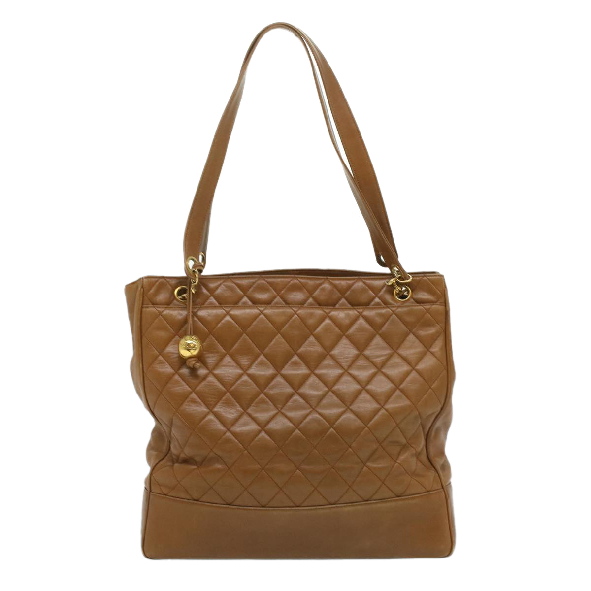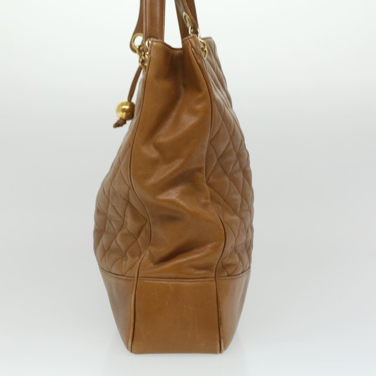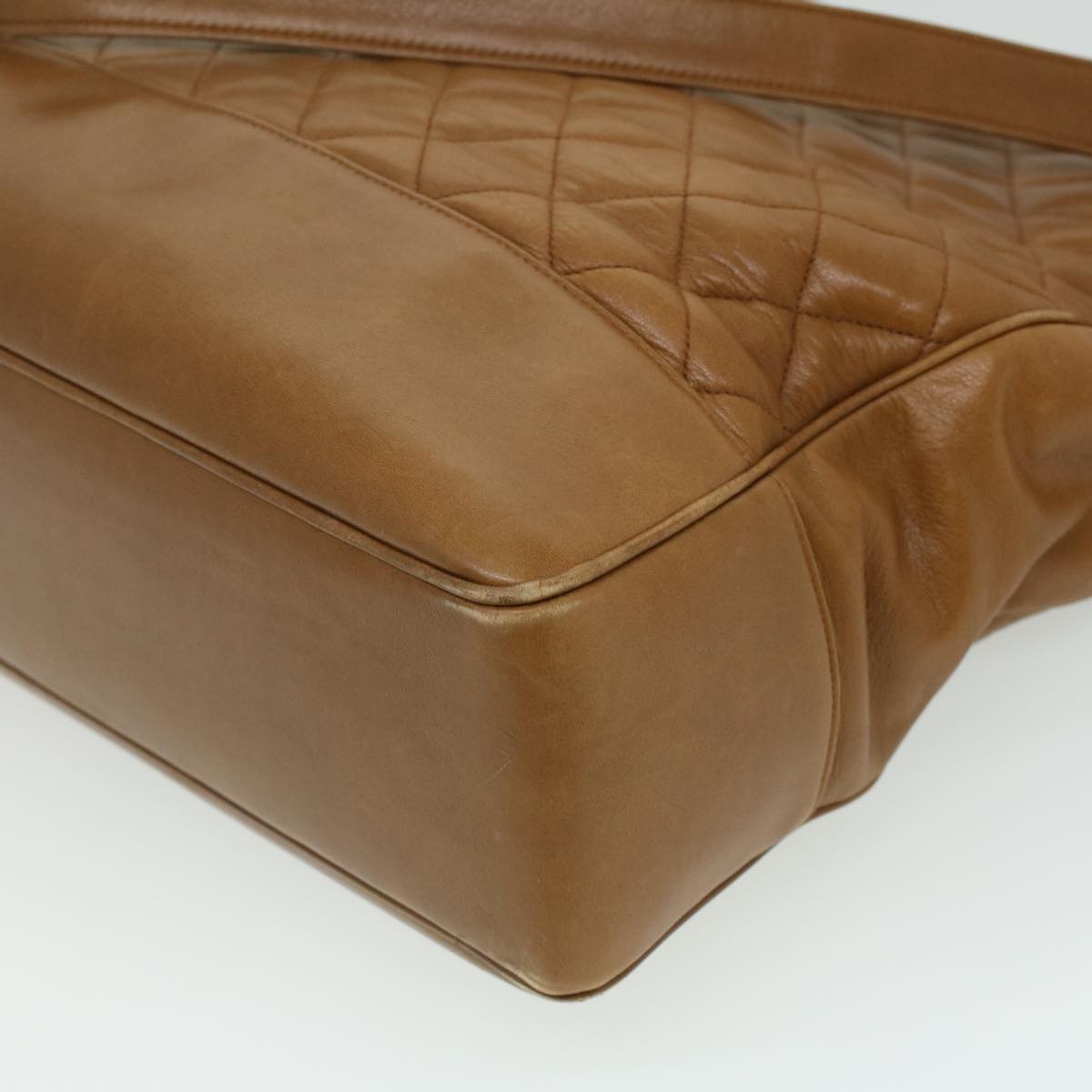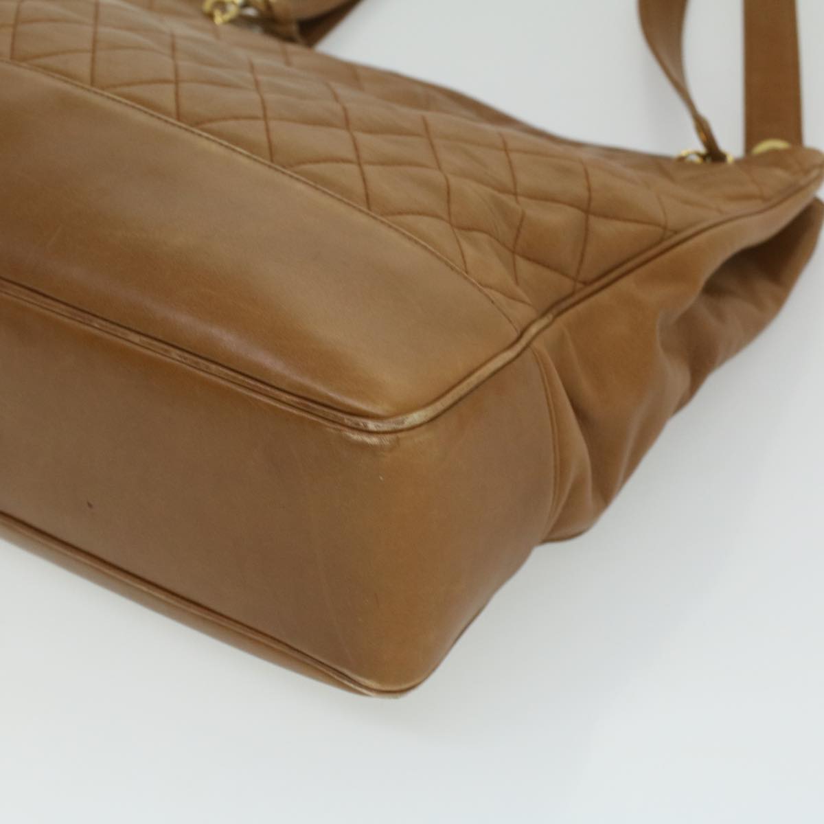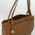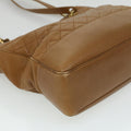 CHANEL Matelasse Chain Shoulder Bag Lamb Skin Brown CC Auth ar8527