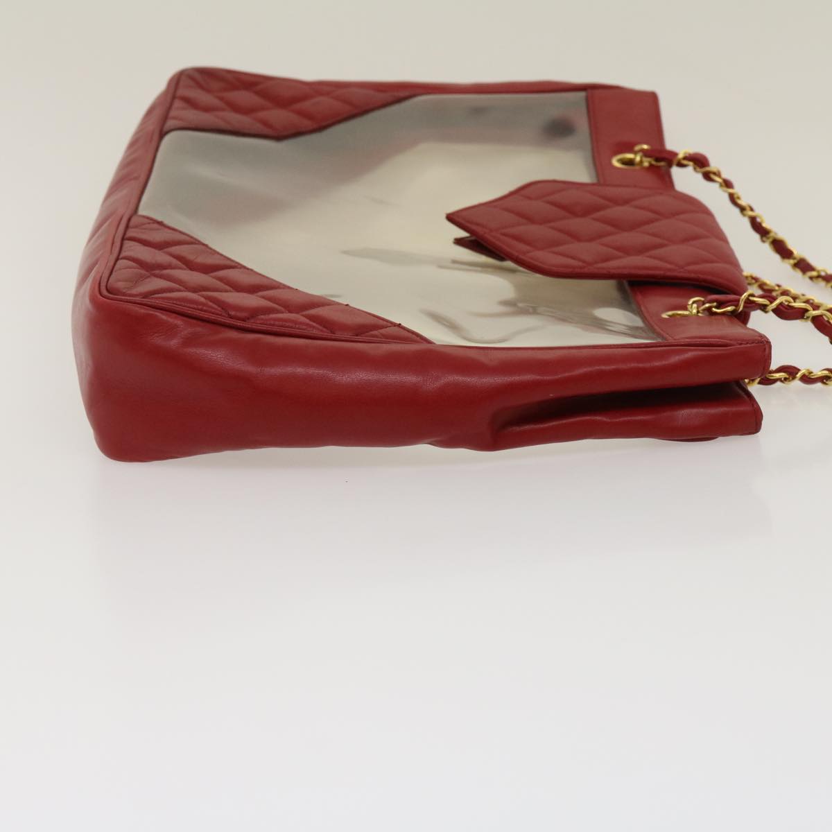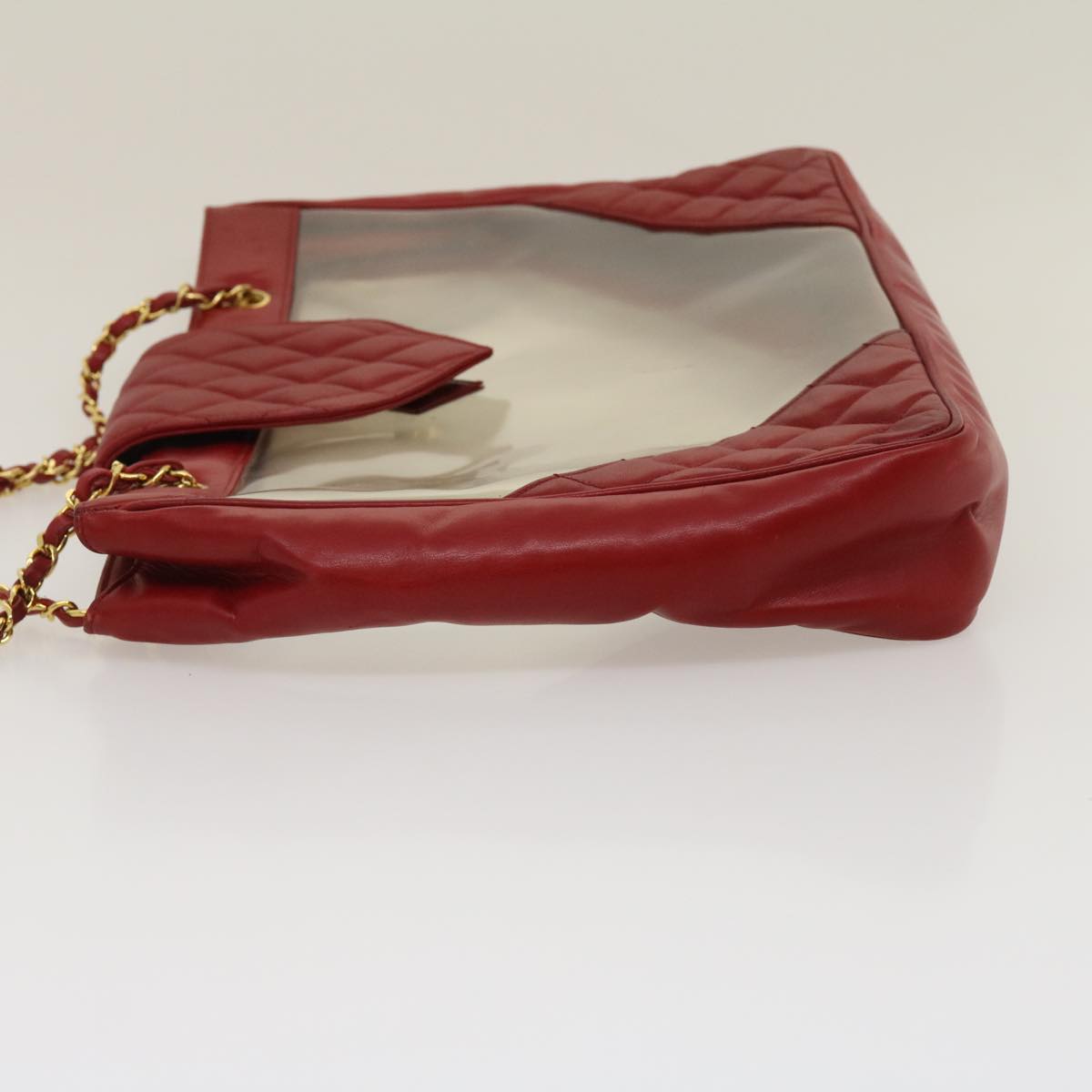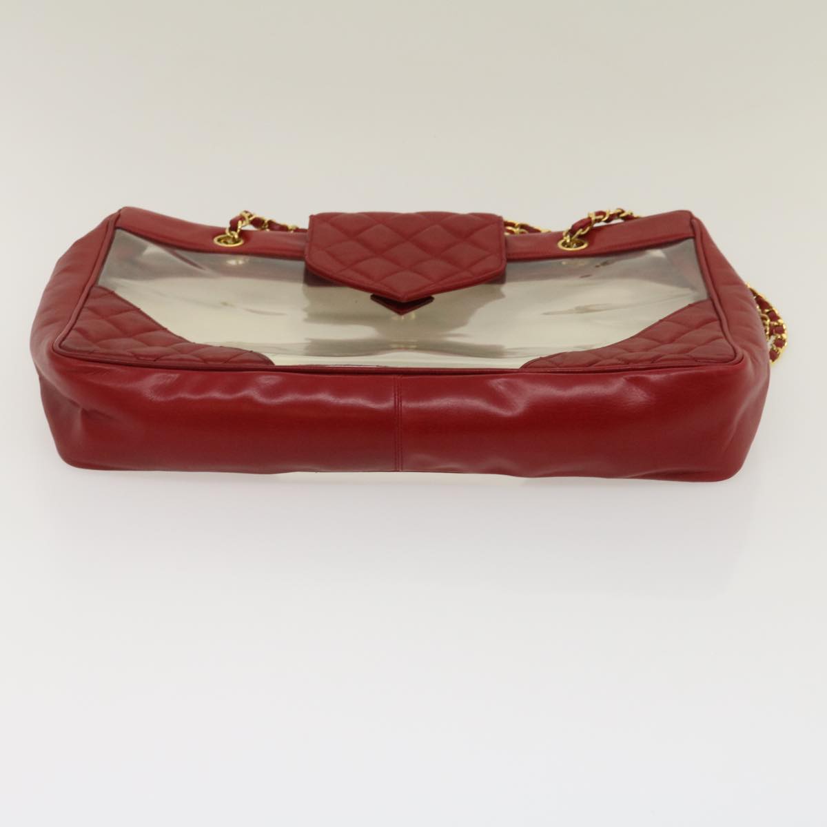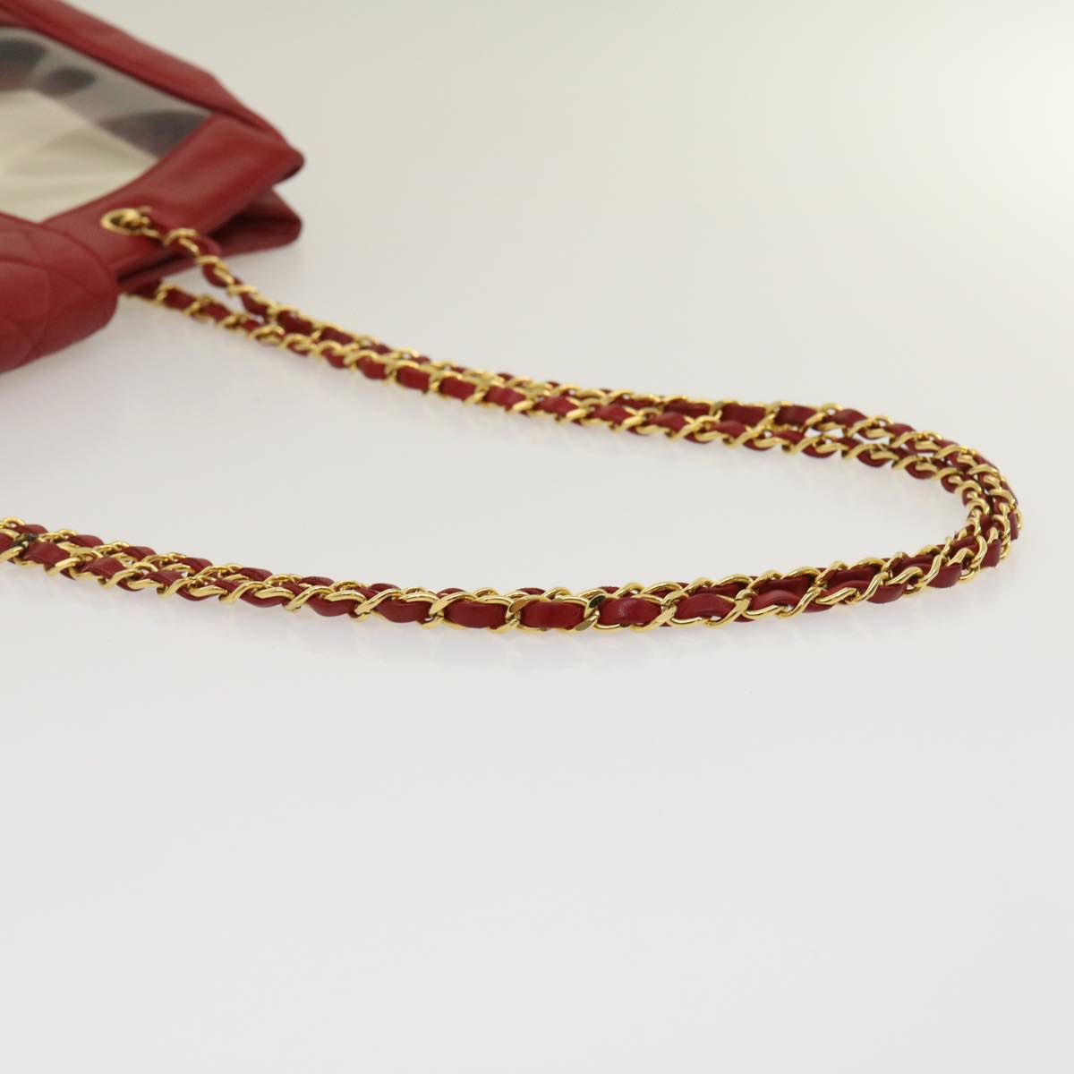 CHANEL Matelasse Chain Shoulder Bag Lamb Skin Enamel Red Clear CC Auth 29894A