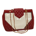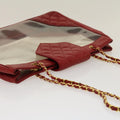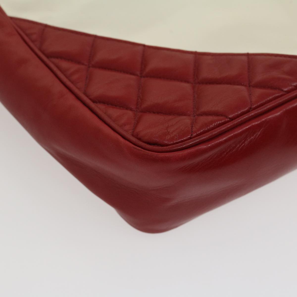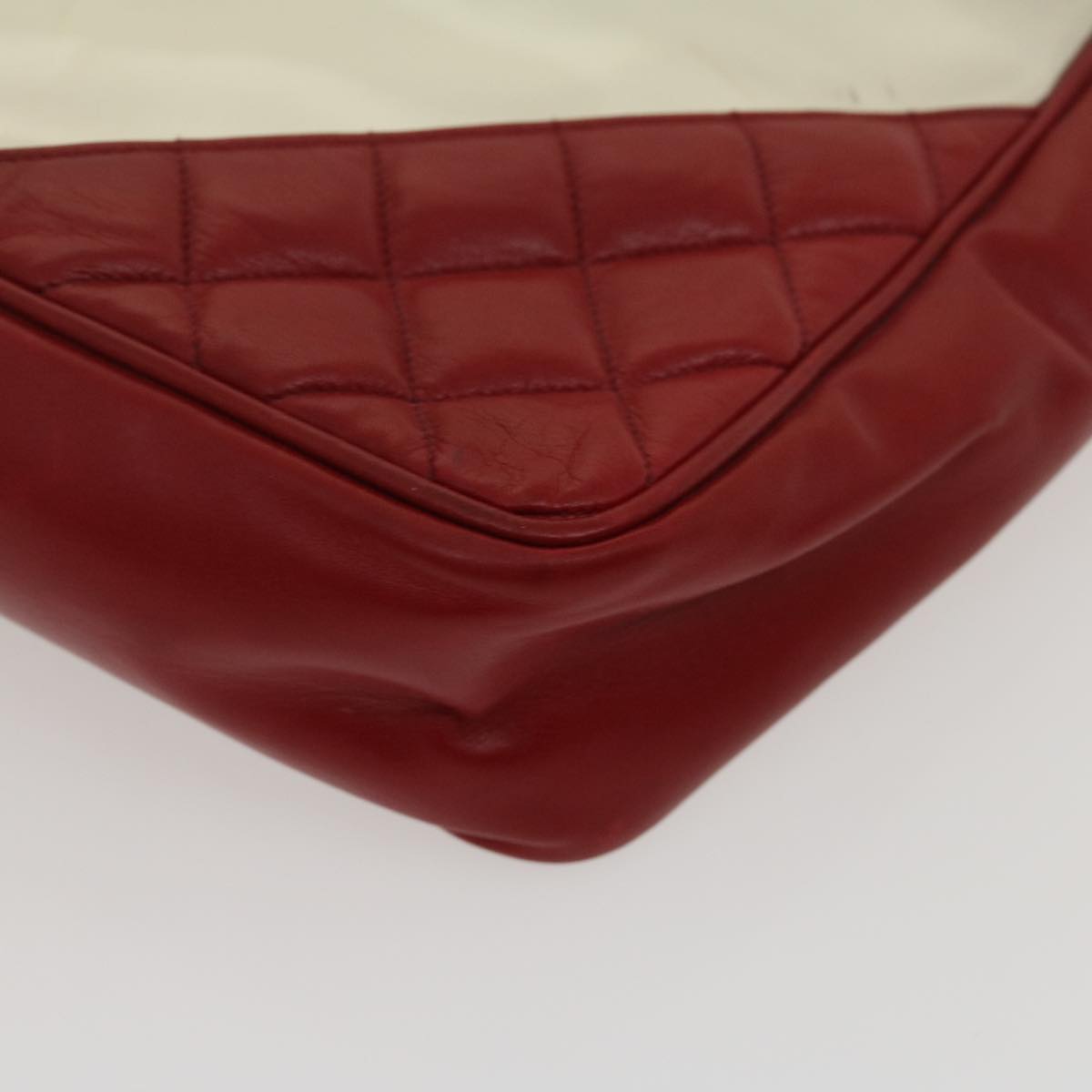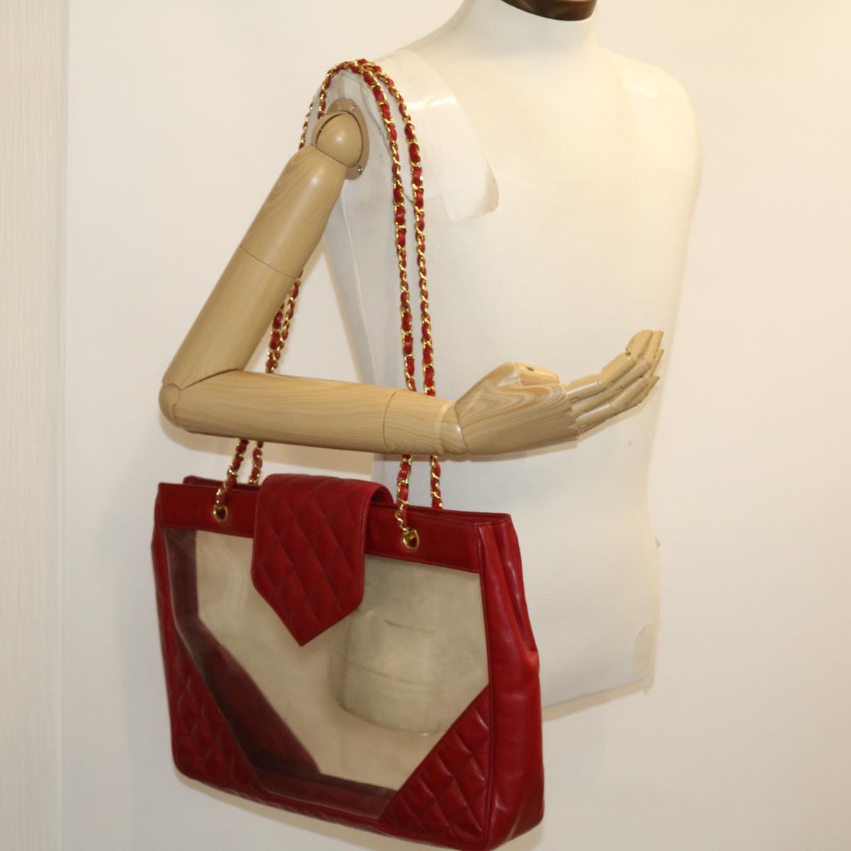 CHANEL Matelasse Chain Shoulder Bag Lamb Skin Enamel Red Clear CC Auth 29894A