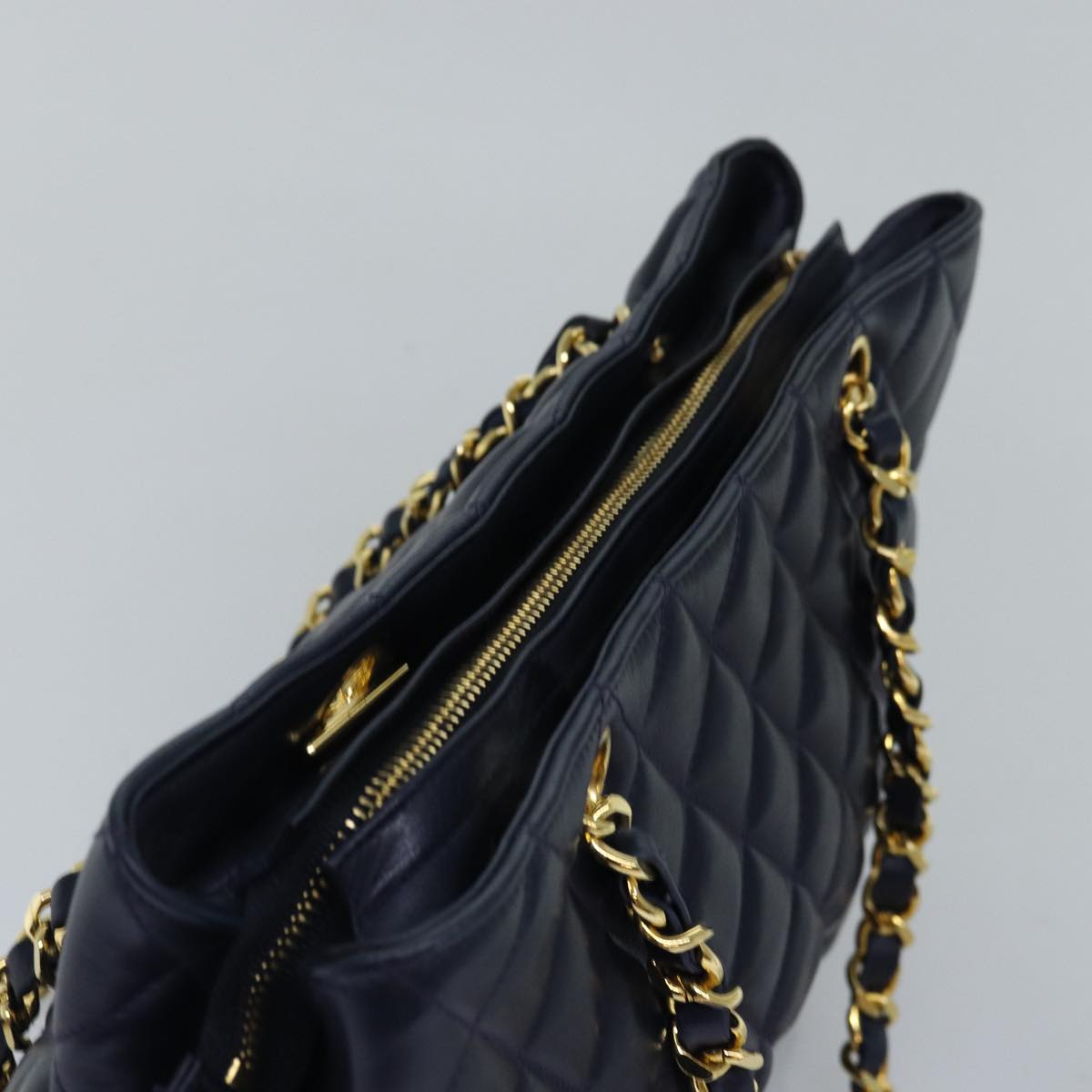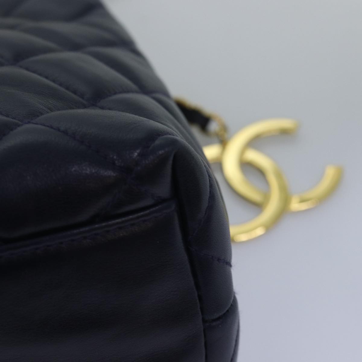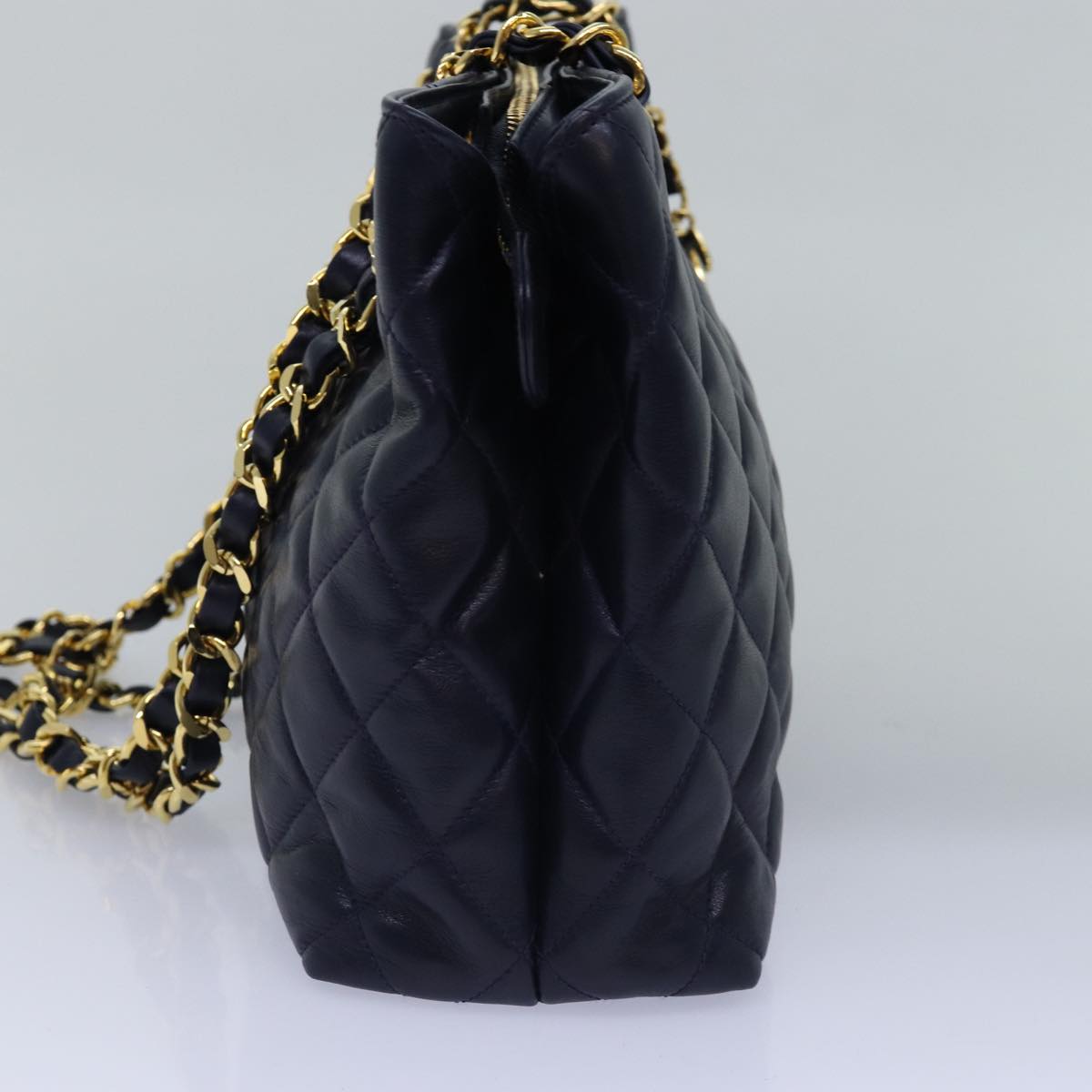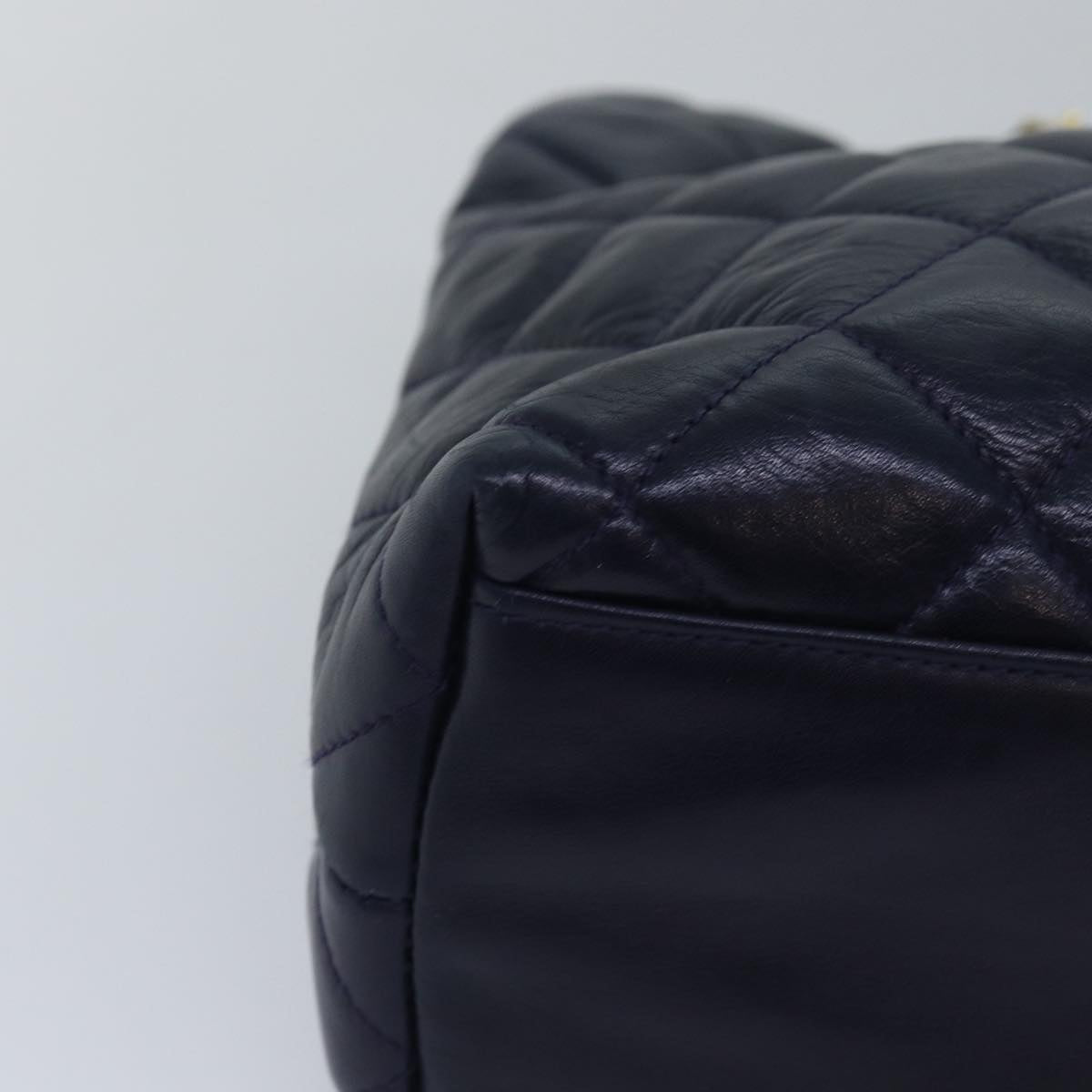 CHANEL Matelasse Chain Shoulder Bag Lamb Skin Navy CC Auth yk12992