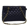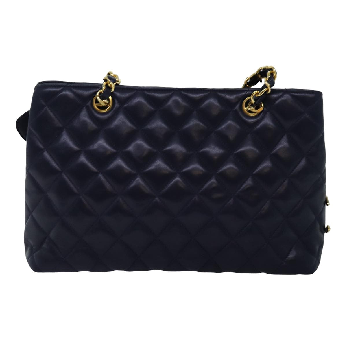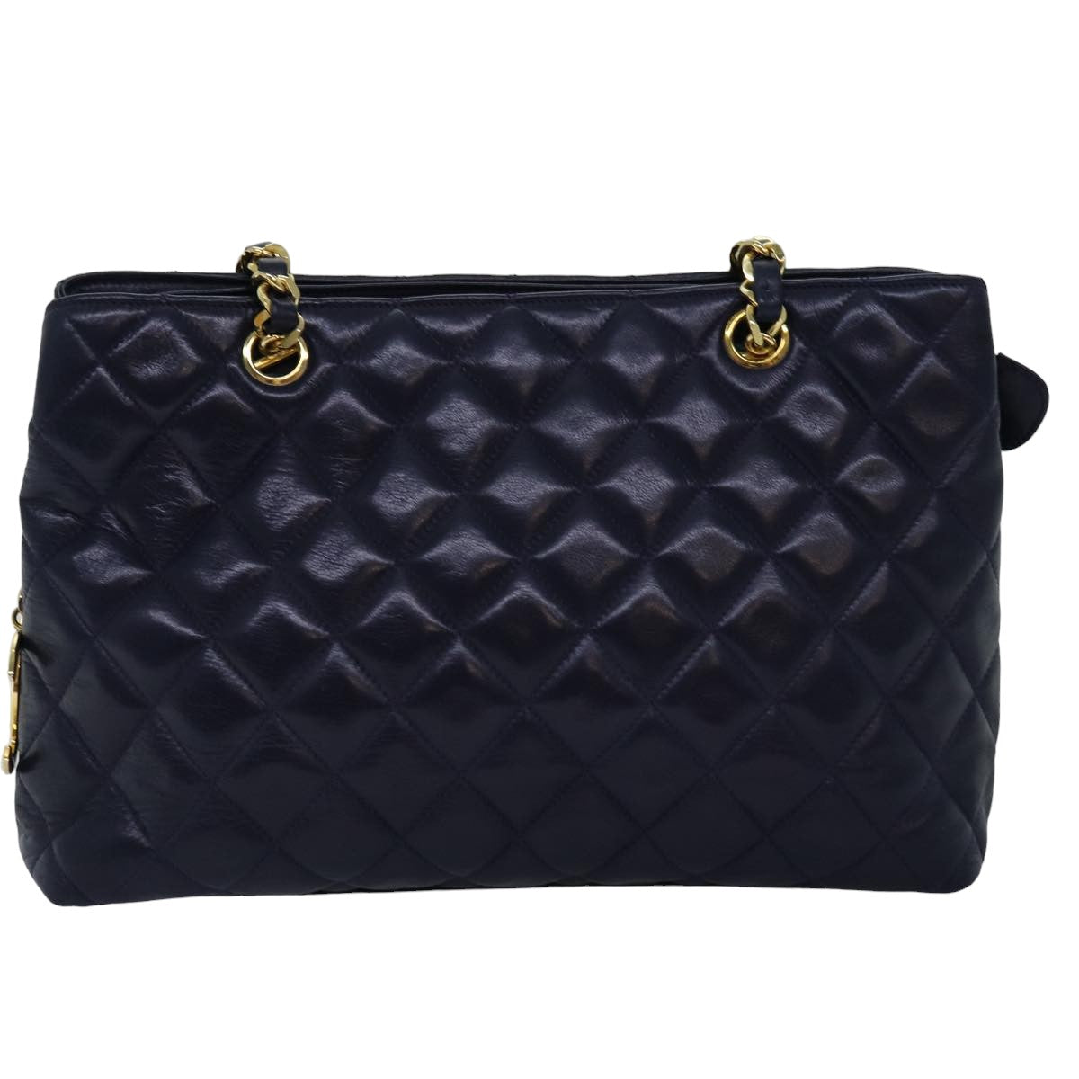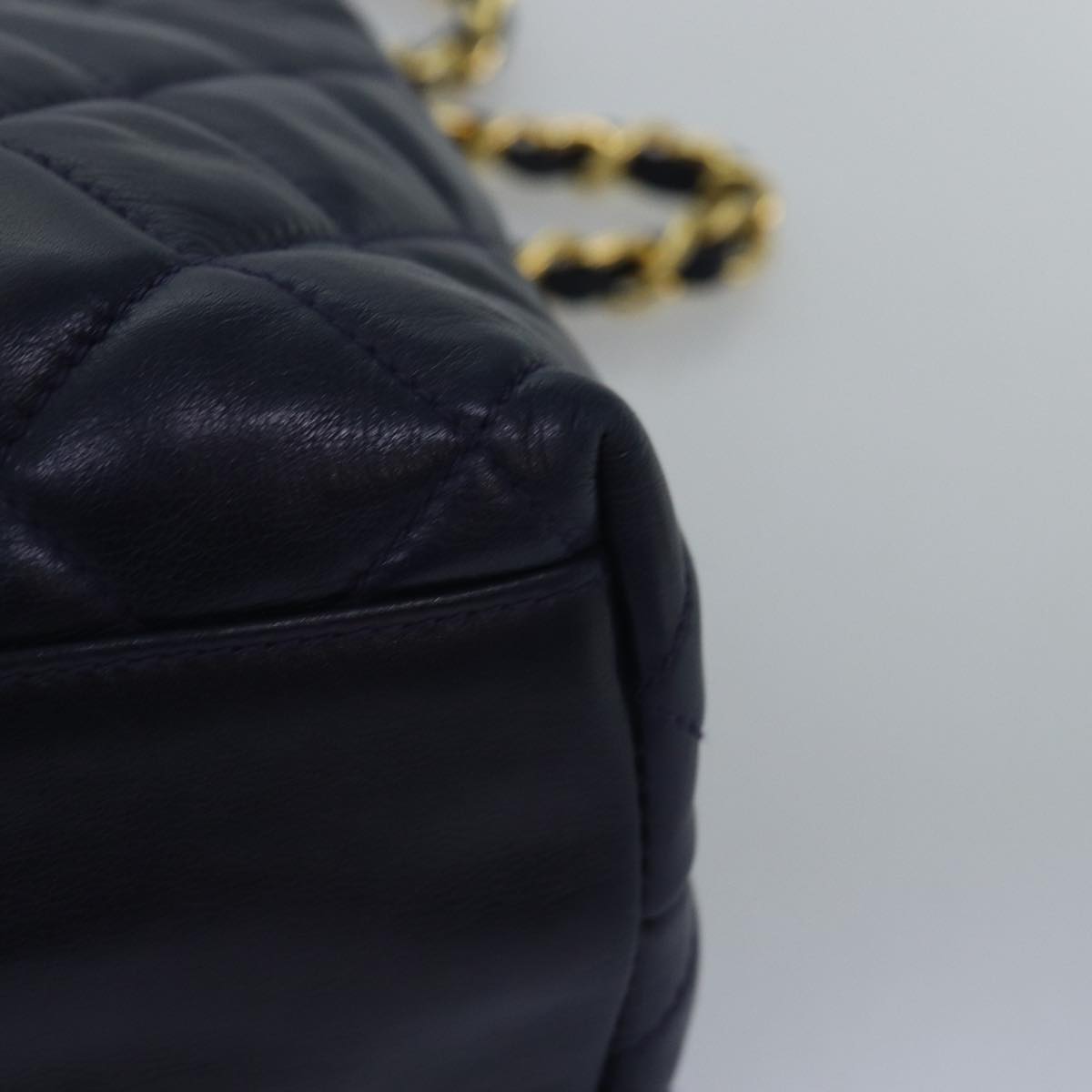 CHANEL Matelasse Chain Shoulder Bag Lamb Skin Navy CC Auth yk12992